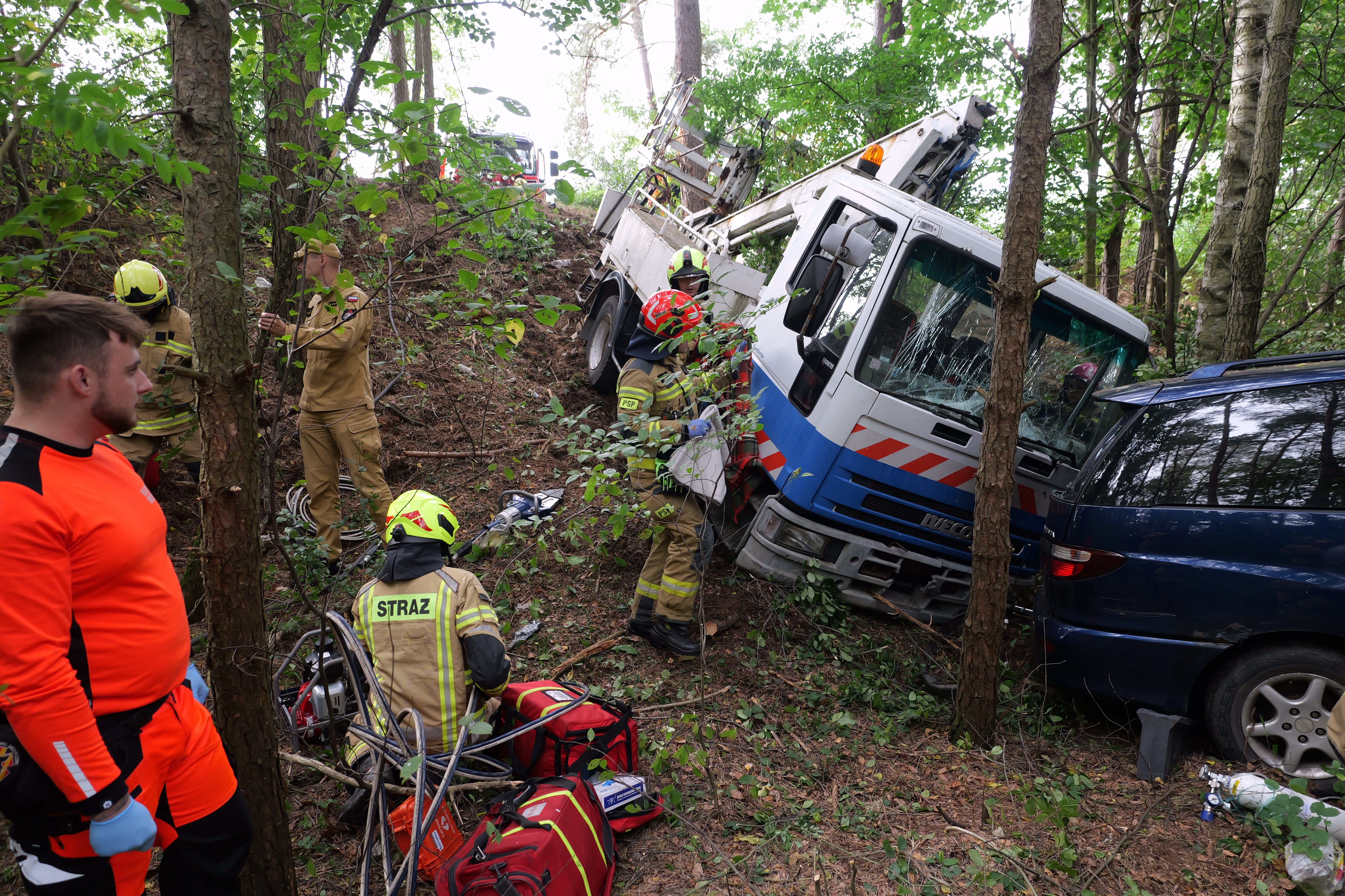 728 doszło do symulowanego wypadku samochodu ciężarowego z pojazdem osobowym. Oba pojazdy znalazły się na skarpie koryta rzeki Czarna. Poszkodowani byli kierowcy i pasażer samochodu osobowego. Działania odbywały się w trudnych warunkach terenowych i wymagały od ratowników kreatywności by wydobyć i ewakuować wszystkich poszkodowanych w bezpieczne miejsce. W wydobyciu wraku ciężarówki pomagał ciężki samochód ratownictwa drogowego z Ostrowca Świętokrzyskiego.