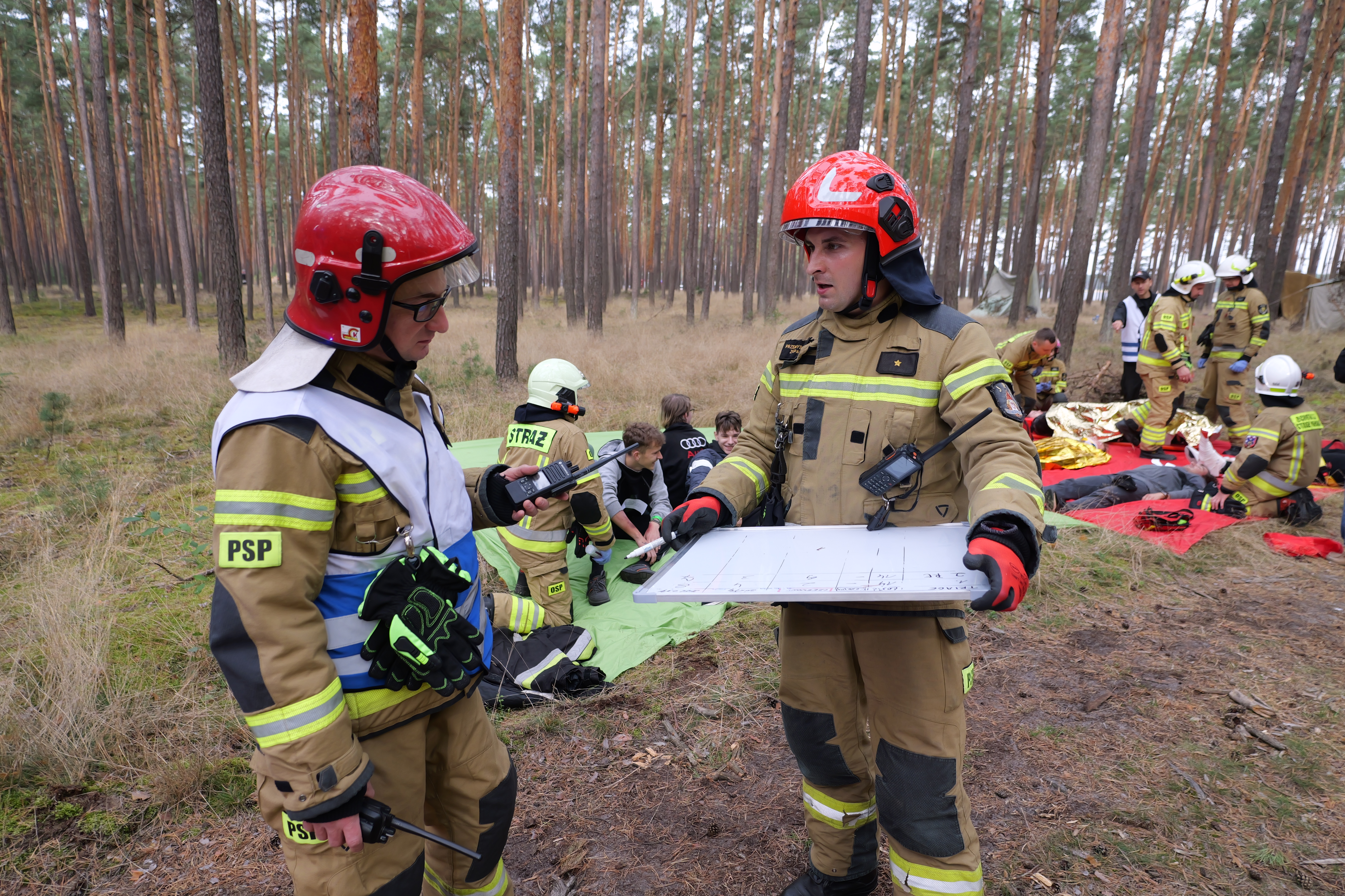 Manewry wymagały współpracy z przedstawicielami innych służb i instytucji. Swoje role i zadania otrzymała Policja, Nadleśnictwo Stąporków i Radoszyce a także gminny i powiatowy zespół reagowania kryzysowego. Aktywnie ćwiczyli też ratownicy medyczni Państwowego Ratownictwa Medycznego. Głównymi obserwatorami ćwiczeń byli z-ca świętokrzyskiego komendanta wojewódzkiego st. bryg. Marcin Machowski oraz kierownik sekcji planowania operacyjnego st. kpt. Kamil Ciepielewski z Komendy Wojewódzkiej PSP w Kielcach. Ćwiczenia obserwowało także 4 rozjemców, którzy swoje ewentualne uwagi i spostrzeżenia przedstawią w specjalnym raporcie na podsumowaniu tych manewrów, które odbędzie się w ciągu miesiąca.