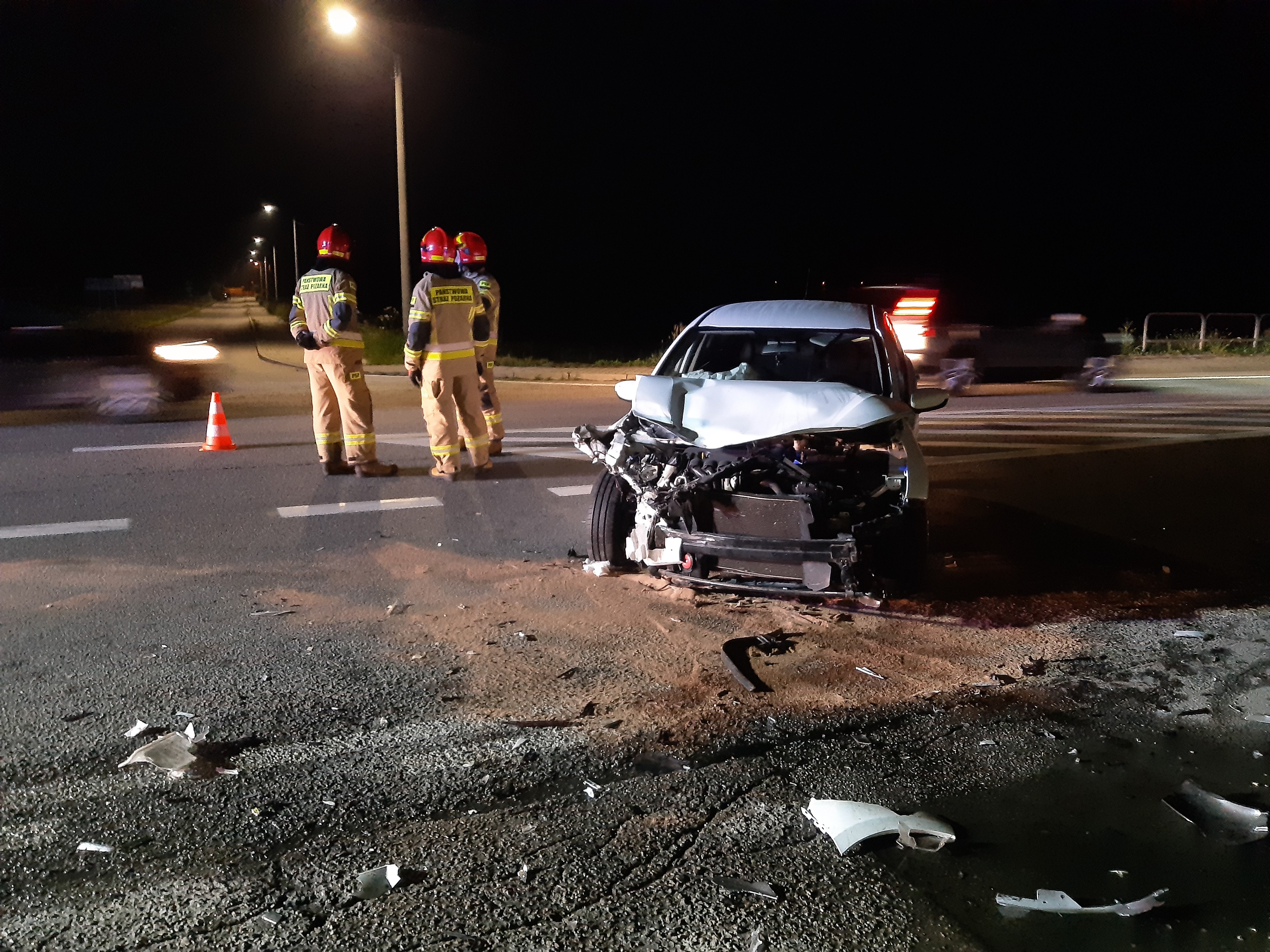 Kilkadziesiąt minut później w Gatnikach na drodze wojewódzkiej 728 zderzyły się dwa samochody osobowe, którymi podróżowało łącznie 7 osób. Pojazdy znajdowały w odległości około 200 metrów od siebie, blokując dwa pasy jezdni w przeciwnych kierunkach. Wszystkie osoby podróżujące samochodami w chwili przybycia służb znajdowały się poza pojazdami, nie uskarżały się na żadne dolegliwości oraz oświadczyły, że nie potrzebują pomocy medycznej. Działania ratowników polegały na posypaniu powstałej plamy substancji ropopochodnej sorbentem oraz odłączeniu akumulatorów w obu pojazdach.