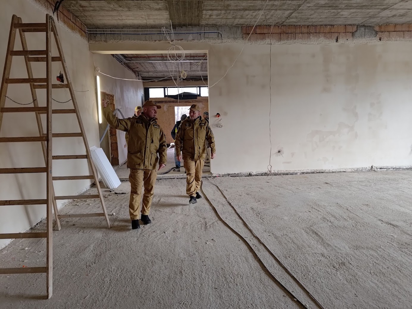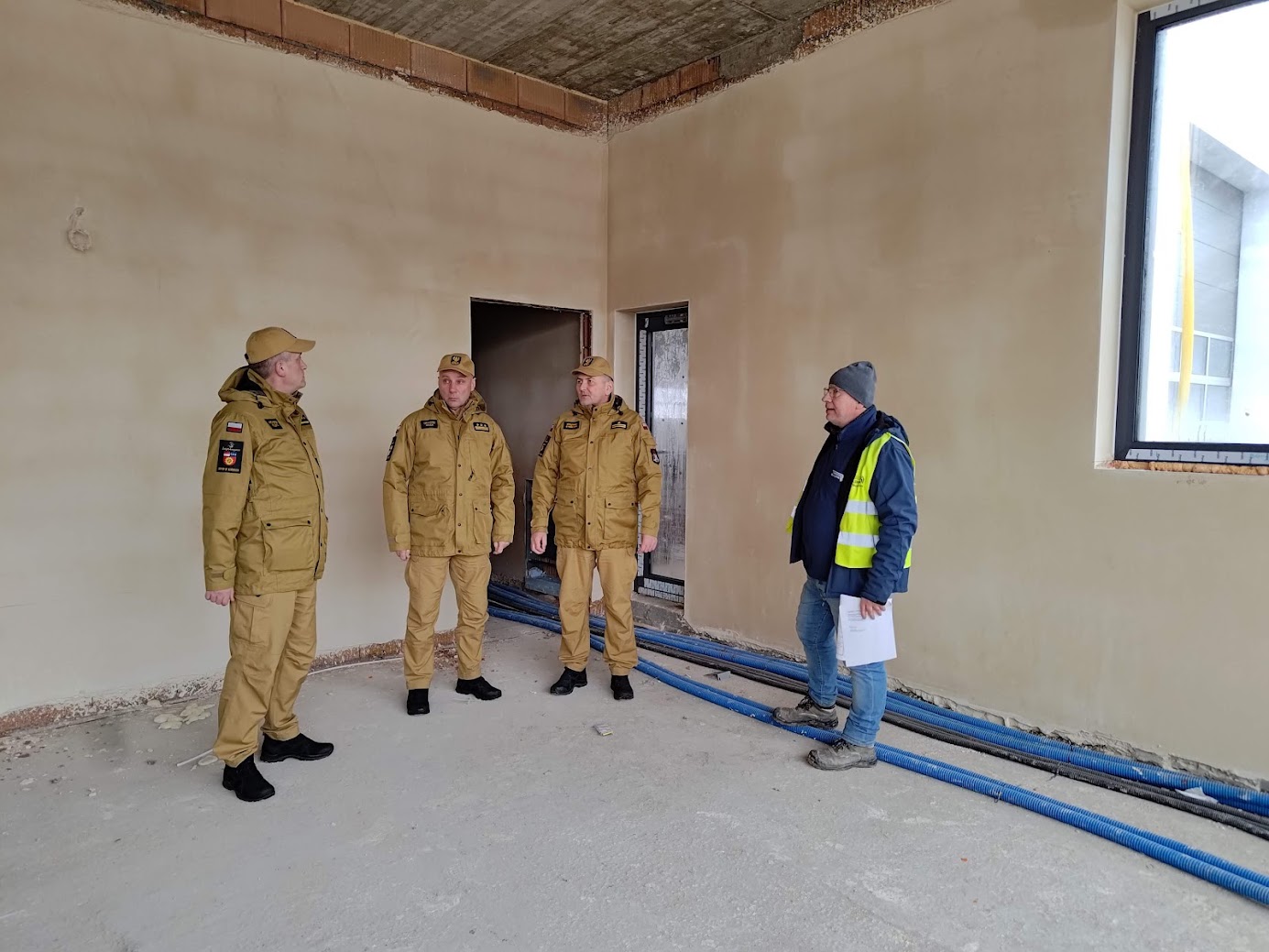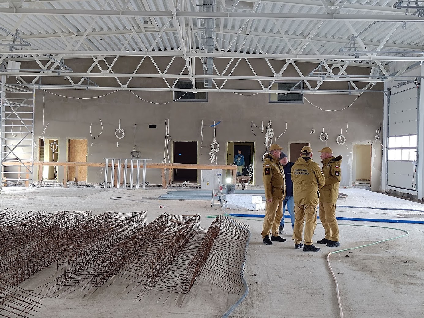 24 stycznia br. zastępca świętokrzyskiego komendanta wojewódzkiego PSP w Kielcach st. bryg. Grzegorz Rajca wizytował budowę nowej strażnicy w Końskich. Komendant powiatowy PSP w Końskich mł. bryg. Ryszard Stańczak wraz ze swoim zastępcą kpt. Krzysztofem Kolektą oprowadzili komendanta Rajcę po placu budowy oraz wszystkich istotnych pomieszczeniach omawiając ich przeznaczenie. Stan prac biorąc pod uwagę, że jest początek 2024 roku jest zaawansowany. We wszystkich pomieszczeniach są położone tynki i trwa montaż instalacji.