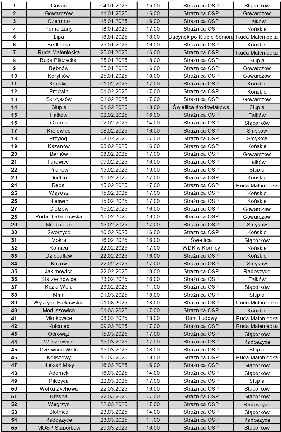 Początek roku w ochronie przeciwpożarowej to okres podsumowań, analiz i sprawozdań z realizacji zadań w poprzednim roku. Nie inaczej jest w jednostkach Ochotniczych Straży Pożarnych. Odbyły się już pierwsze zebrania sprawozdawcze w Ochotniczych Strażach Pożarnych z terenu powiatu koneckiego. W zebraniach tych udział biorą komendanci - bryg. Ryszard Stańczak oraz kpt. Krzysztof Kolekta a także funkcjonariusze z Komendy Powiatowej PSP w Końskich. Pierwsze z nich odbyły się w Gowarczowie, Czermnie i Rudzie Malenieckiej. Komendanci lub ich przedstawiciele przedstawiają na nich statystykę związaną z interwencjami jednostek ochrony przeciwpożarowej w minionym roku a także inne istotne tematy dotyczące spraw bieżących.