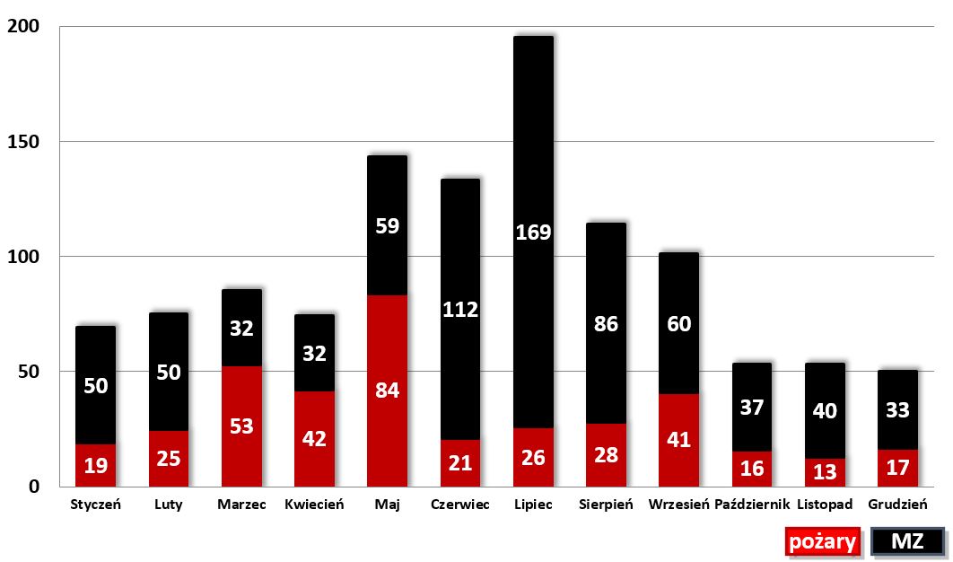 W ubiegłym roku strażacy 87 razy udzielali pomocy Policji i Państwowemu Ratownictwu Medycznemu. Pomoc Policji polegała między innymi na poszukiwaniach osób zaginionych, otwarciu drzwi do domów i mieszkań a PRM pomocy w znoszeniu pacjentów. W 46 przypadkach jednostki straży pożarnej były wzywane do zdarzeń medycznych z uwagi na brak wolnej karetki (tzw. IZRM).