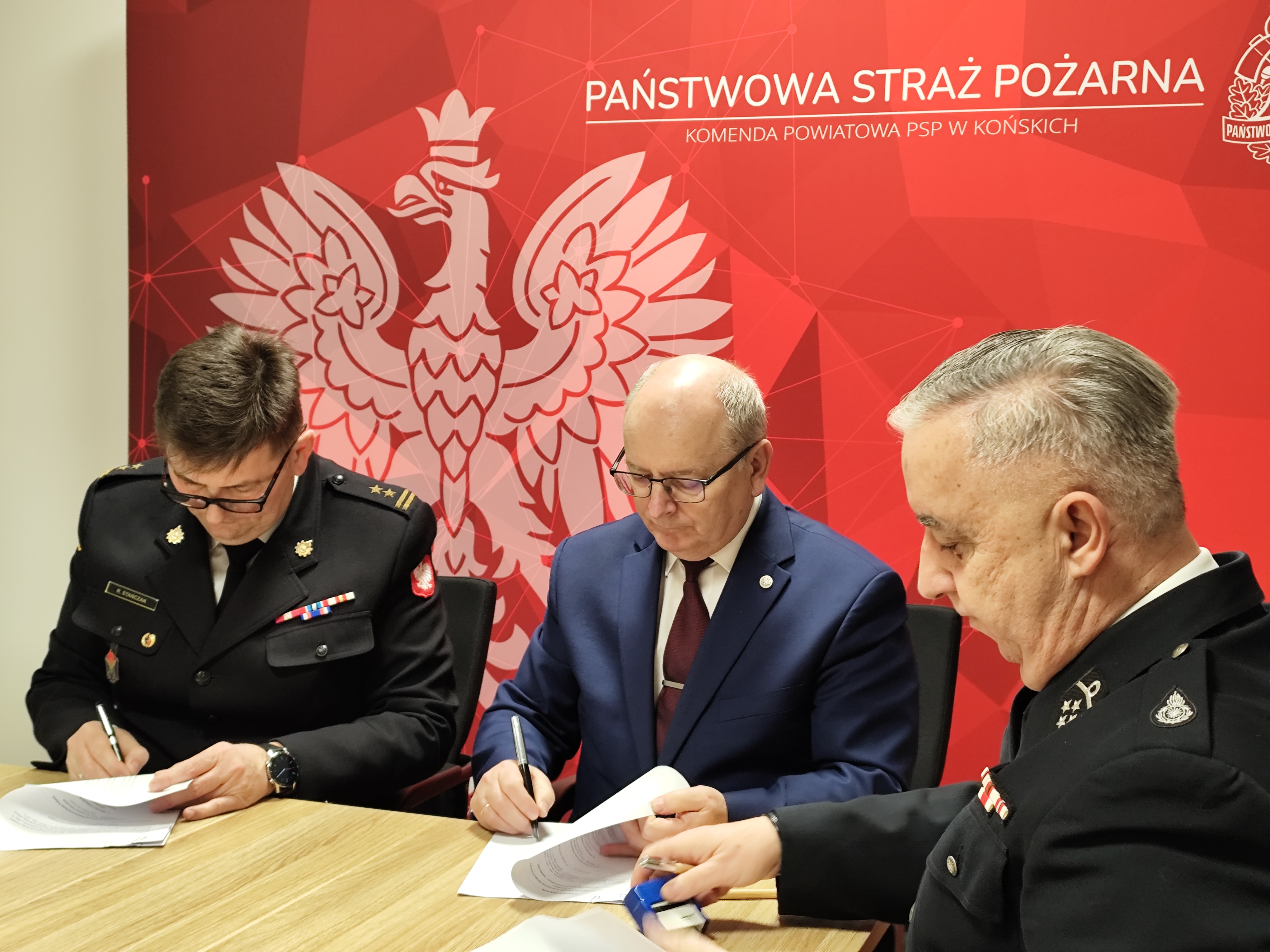 Dzień później porozumienie z OSP Końskie podpisali Komendant Powiatowy bryg. Ryszard Stańczak, Burmistrz Krzysztof Obratański oraz Prezes OSP Końskie Jarosław Kowalczyk, potwierdzając utrzymanie jednostki w KSRG do 2031 r.