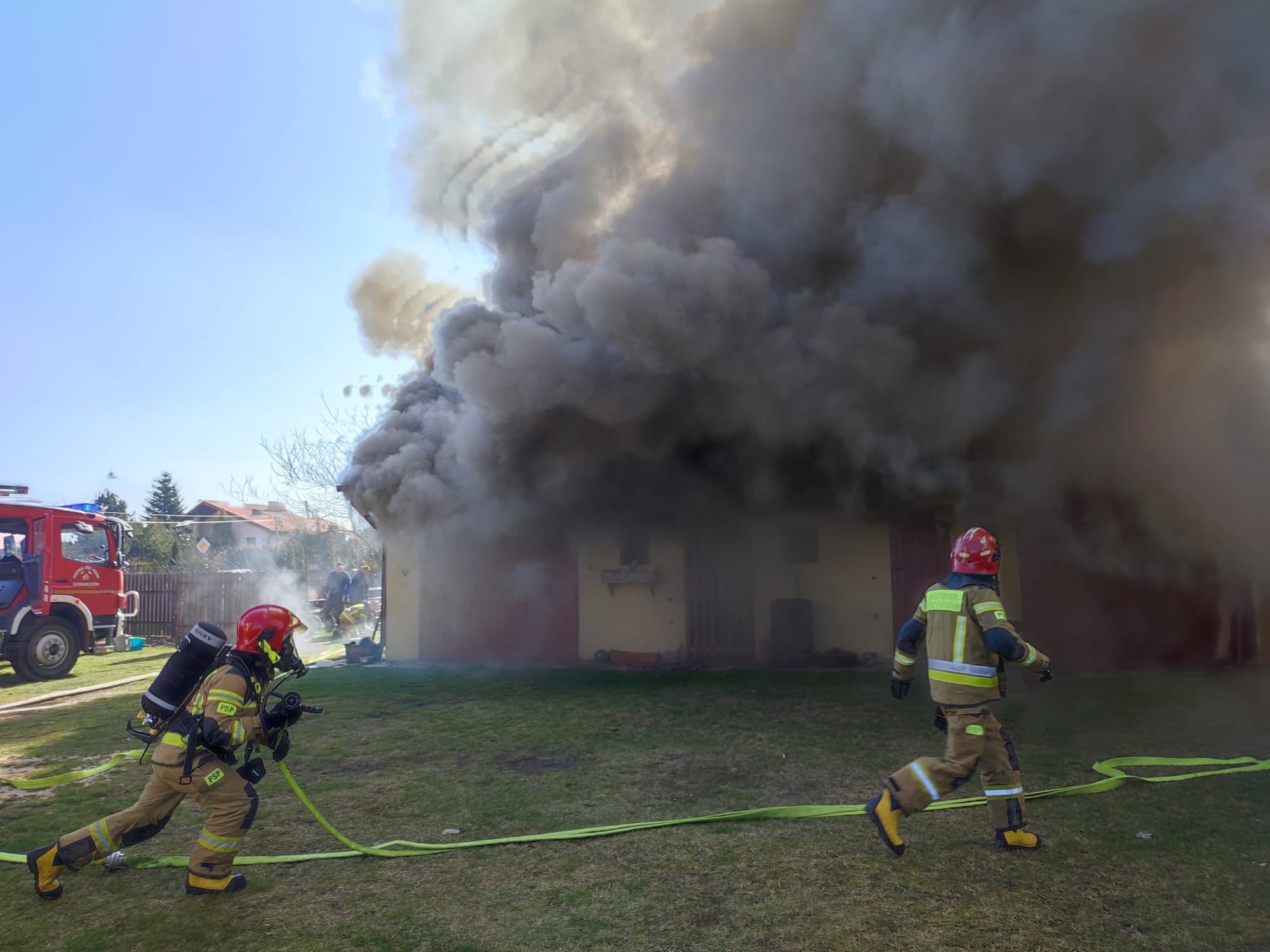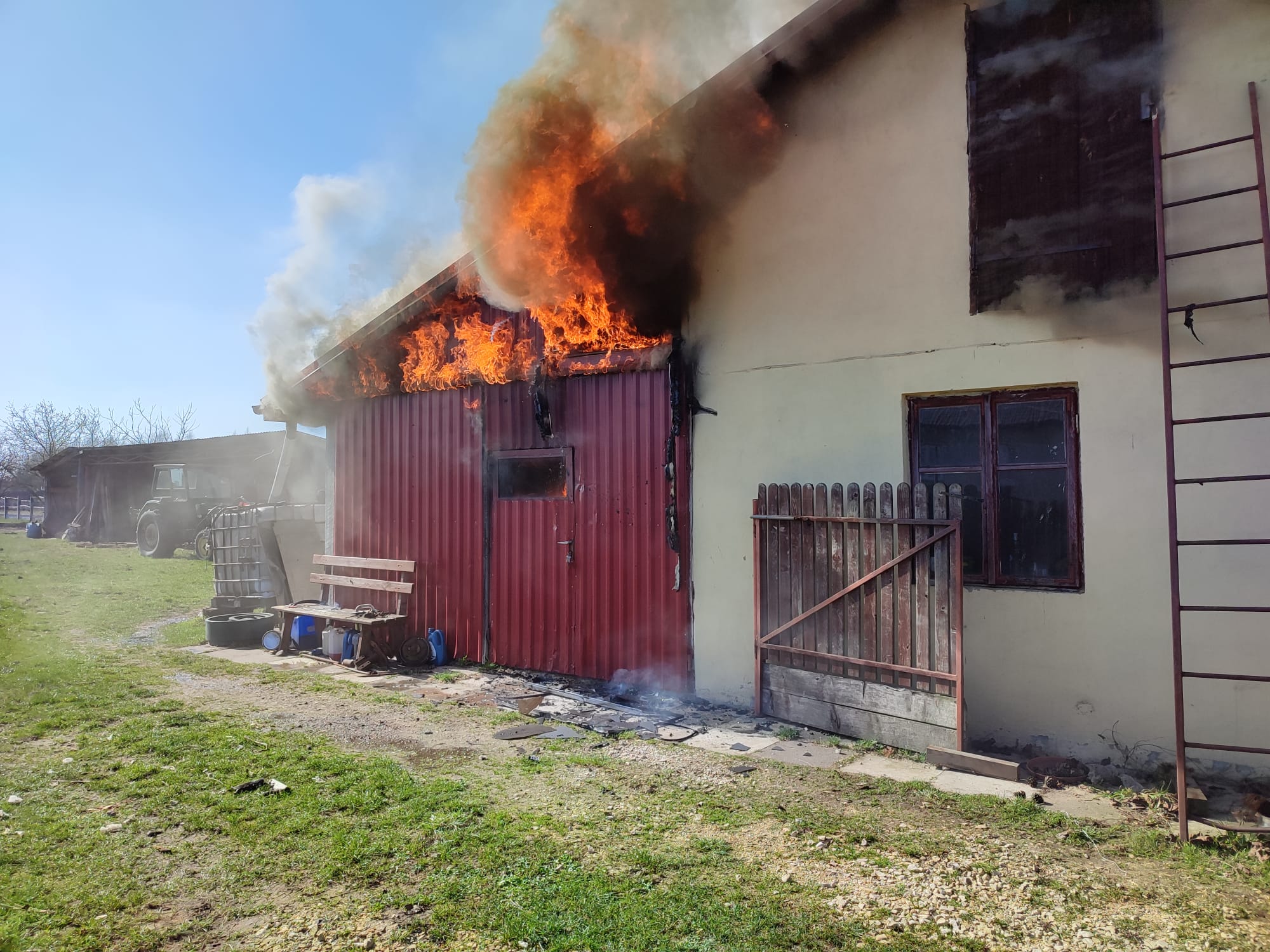 9 marca br. o godz. 11:28 dyżurny stanowiska kierowania straży pożarnej w Końskich otrzymał zgłoszenie o pożarze stolarni w Gowarczowie przy ul. Szkolnej. Po przybyciu na miejsce zdarzenia zastępów OSP Gowarczów oraz JRG Końskie teren działań został zabezpieczony a strażacy przeprowadzili rozpoznanie. Ustalili, że doszło do pożaru zabudowań gospodarczego umiejscowionego w głębi posesji. W budynku objętym pożarem wydzielone były różnego typu pomieszczenia z czego około połowa przeznaczona była do obróbki drewna (stolarnia). W tej części obiektu pożar był w fazie rozwiniętej a płomienie wychodziły na zewnątrz. Od właściciela posesji uzyskano informacje, że w zdarzeniu nikt nie ucierpiał i nikt nie potrzebuje pomocy medycznej. Działania strażaków państwowej i ochotniczych straży pożarnych polegały na podaniu dwóch prądów wody w natarciu oraz jednego w obronie budynków umiejscowionych w bezpośrednim sąsiedztwie. Udało się uratować sąsiednie pomieszczenia i przylegające budynki. Akcja gaśnicza trwała ponad 2h i prowadziło ją 5 zastępów JOP: 2xJRG Końskie, OSP Gowarczów, Korytków, Bębnów.