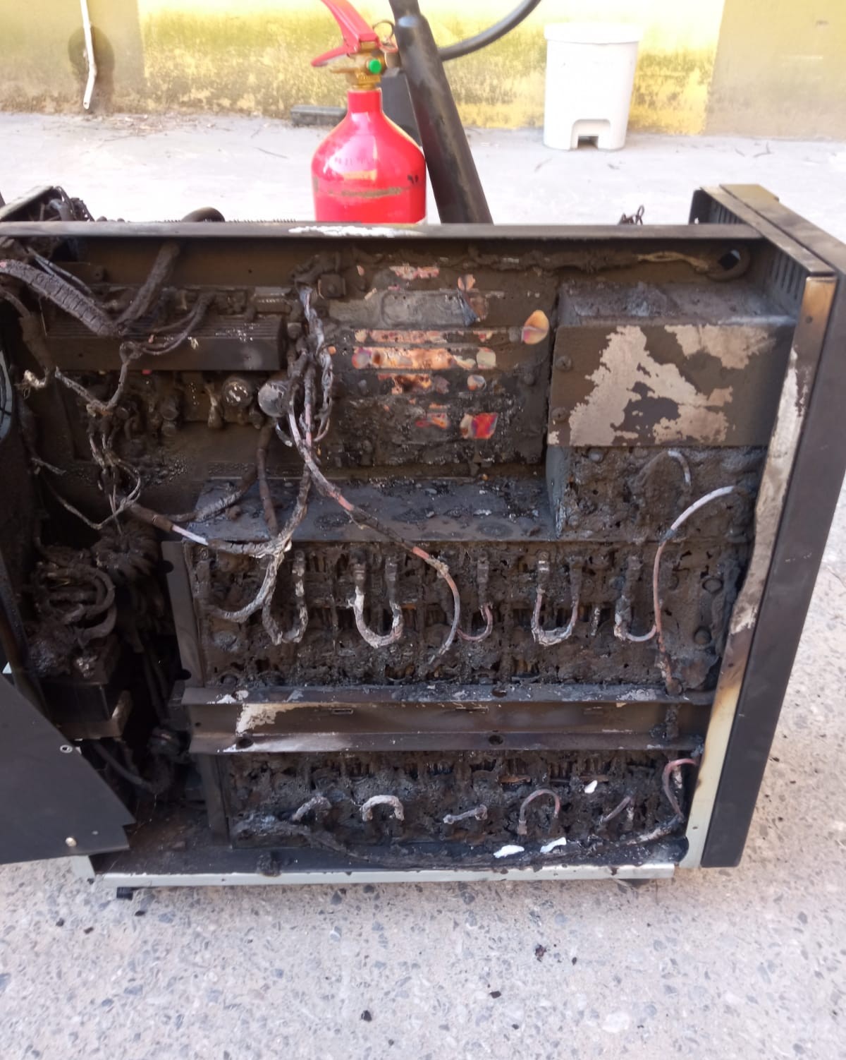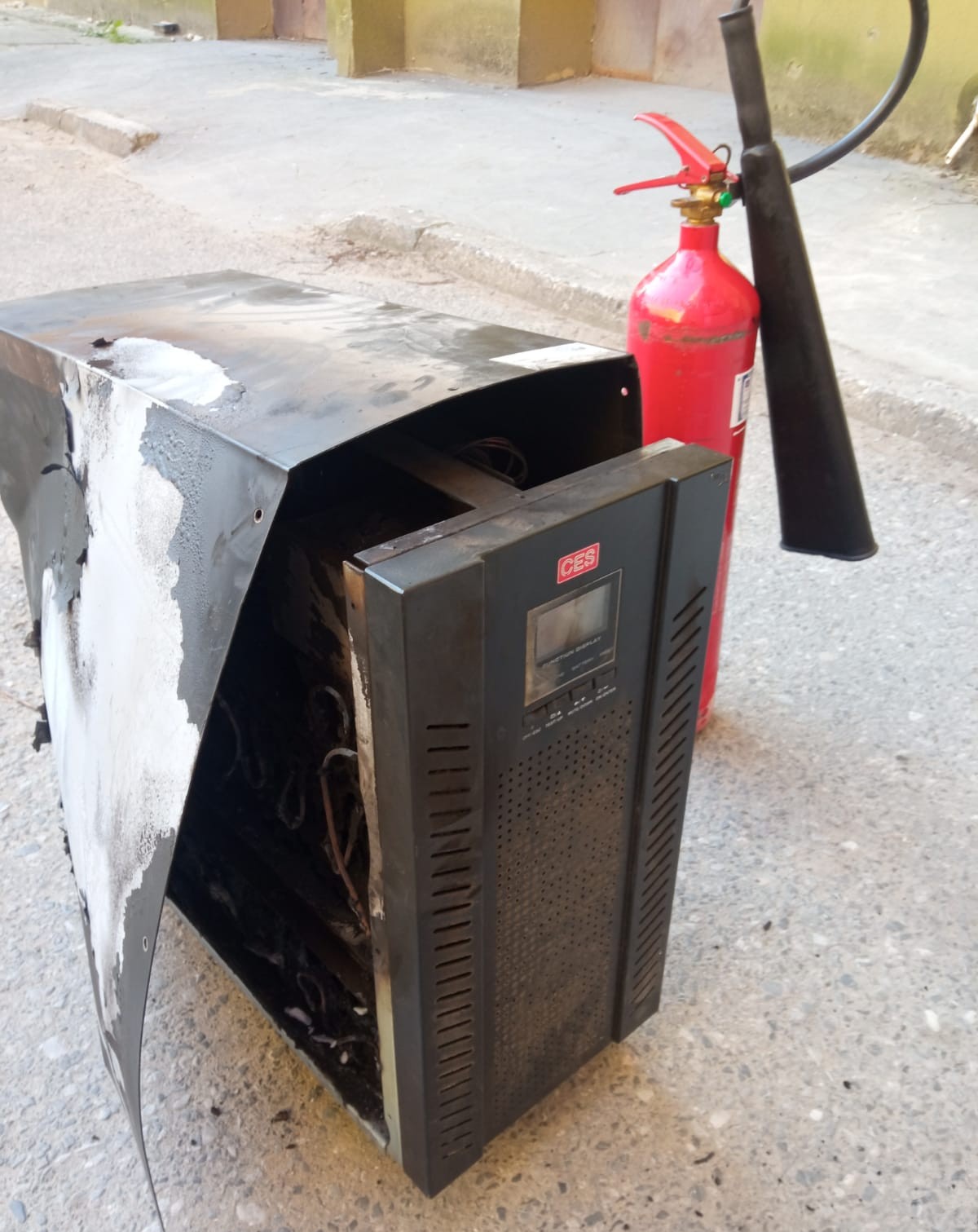 Po dotarciu na miejsce zdarzenia strażąków, wyniku rozpoznania stwierdzono, że z szybu windowego na korytarz wydobywa się dym. Zgodnie z informacją otrzymaną od serwisanta, pochodzi on siódmego piętra, z pomieszczeń technicznych szybu wind. Strażacy zabezpieczeni w aparaty ochrony dróg oddechowych udali się we wskazane miejsce. Na miejscu natrafili na pożar zasilacza UPS, który miał podtrzymywać zasilanie windy w przypadku zaniku energii. Za pomocą gaśnicy stłumili pożar urządzenia i po demontażu wynieśli je na zewnątrz, a następnie dogasili wodą jednocześnie kontrolując temperaturę akumulatorów za pomocą kamery termowizyjnej.