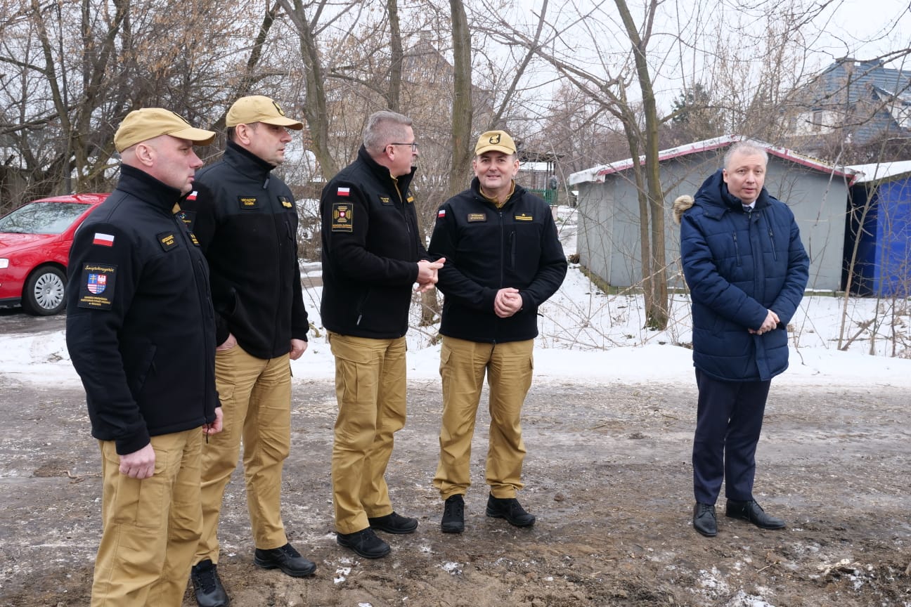 10 lutego br. przed południem w Komendzie Powiatowej PSP w Końskich odbyło się robocze spotkanie z udziałem wiceministra finansów Sebastiana Skuzy, zastępcy komendanta głównego PSP nadbryg. Krzysztofa Hejduka oraz świętokrzyskiego komendanta wojewódzkiego nadbryg. Krzysztofa Cioska wraz ze swoim zastępcą st. bryg. Grzegorzem Rajca. Spotkanie związane było przede wszystkim z rozpoczętą budową nowej siedziby Komendy Powiatowej PSP w Końskich. Komendant Hejduk sprawdził w jakich warunkach służą obecnie koneccy strażacy, a na spotkaniu z załogą i kierownictwem komendy przybliżył najbardziej istotne bieżące sprawy. Potem minister i komendanci udali się na plac budowy, na którym trwają już od jakiegoś czasu prace przygotowawcze.