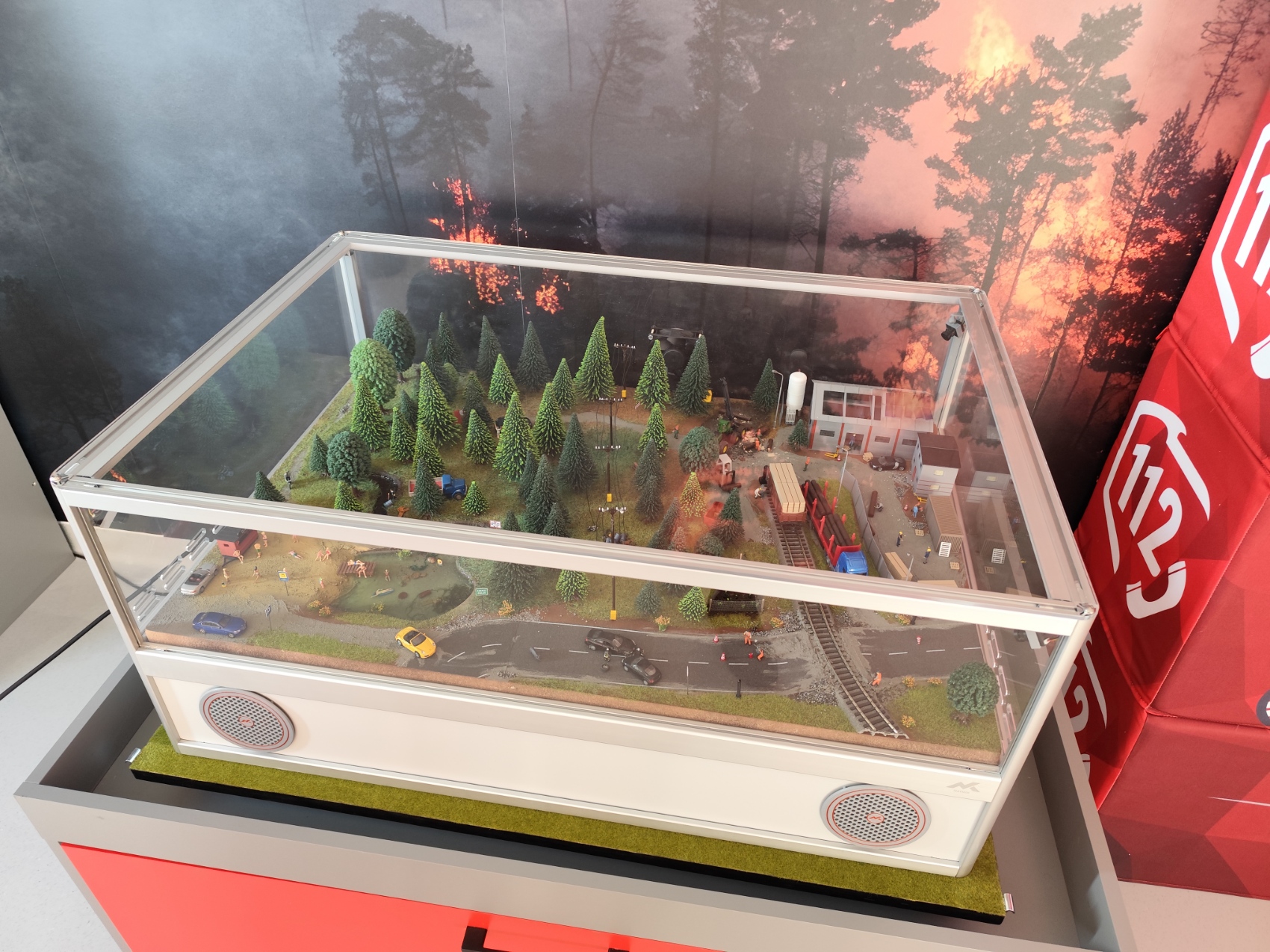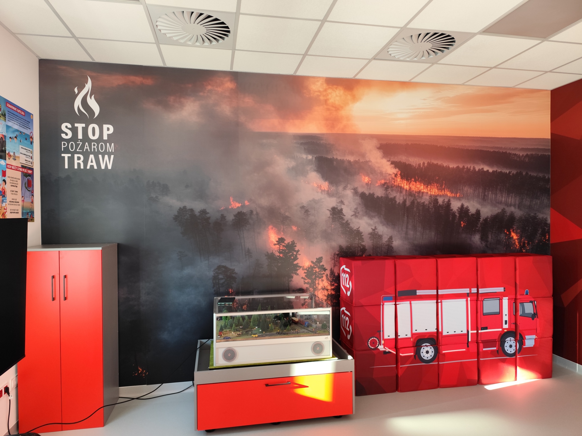 - Interaktywny Symulator Zagrożeń Pożarowych (Dom): Makieta w skali 1:14 sterowana tabletem, wyposażona w system kamer HD i wytwornicę bezpiecznego dymu. Pozwala na prezentację scenariuszy takich jak: