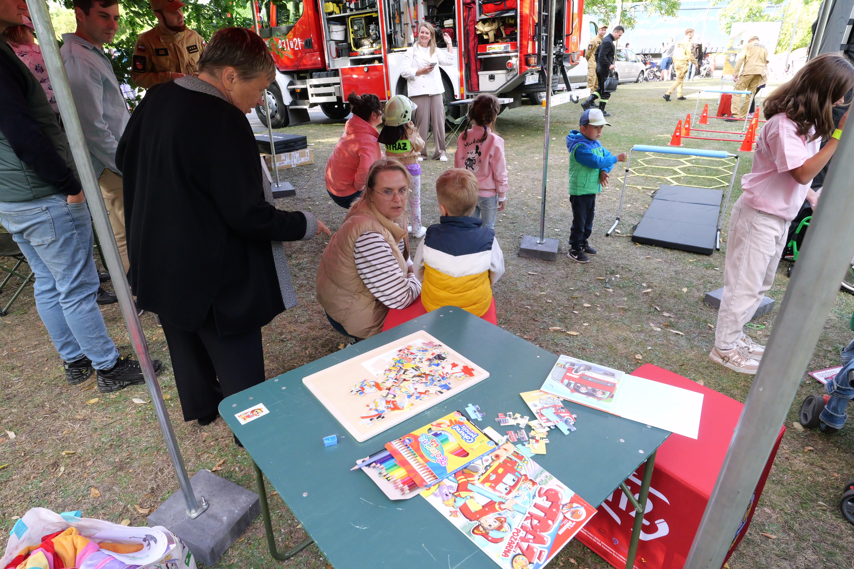 Zainteresowanie było ogromne – stoisko odwiedziło ponad setka osób, a dzieci z dużym zaangażowaniem brały udział w przygotowanych aktywnościach. Wspólna zabawa stała się jednocześnie ważną lekcją odpowiedzialności, znajomości numerów alarmowych oraz właściwych zachowań w sytuacjach zagrożenia.