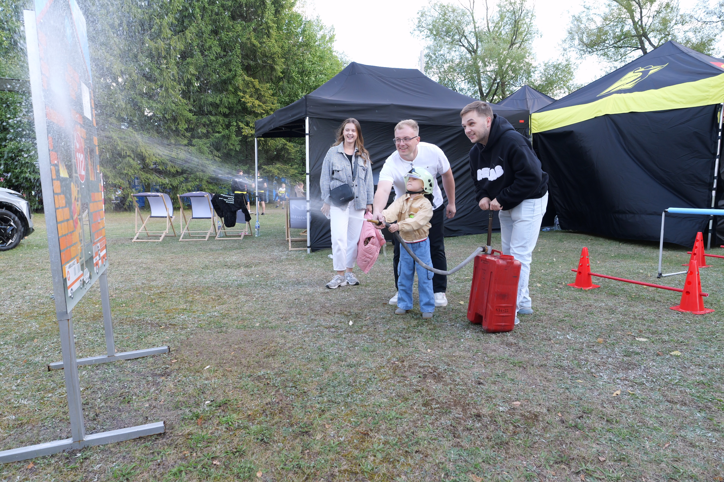 tor przeszkód zakończony gaszeniem makiety płonącego domu,