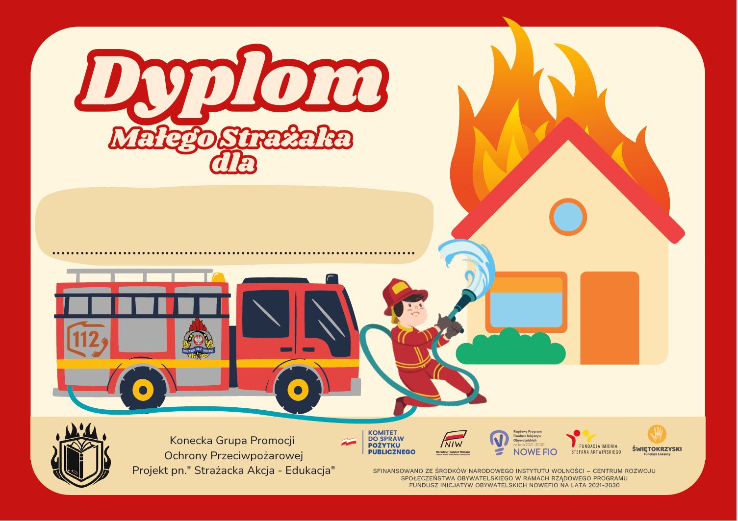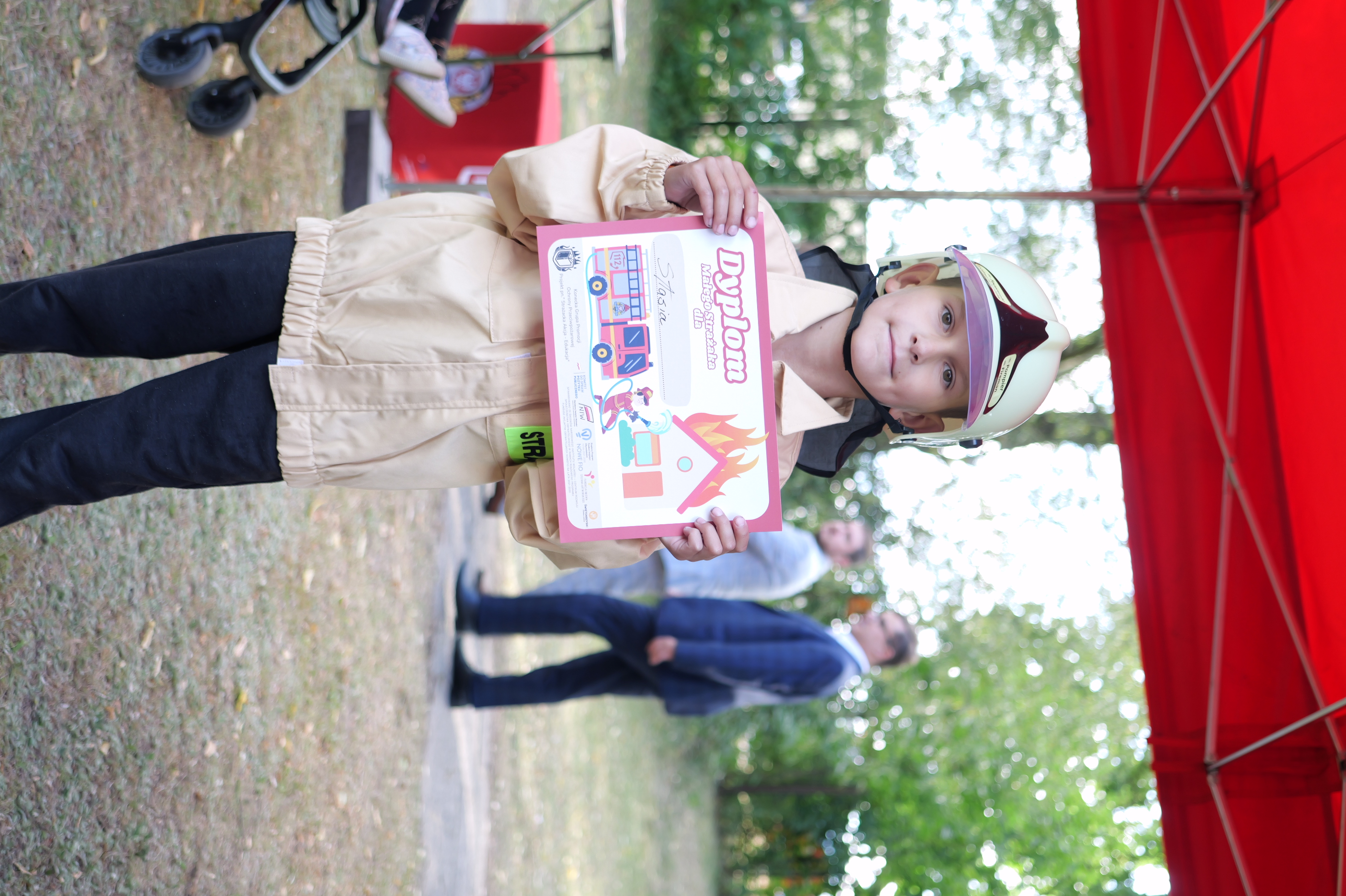 Każde dziecko, które ukończyło strażackie wyzwanie, otrzymało Dyplom Małego Strażaka oraz pamiątkowe gadżety związane z bezpieczeństwem.