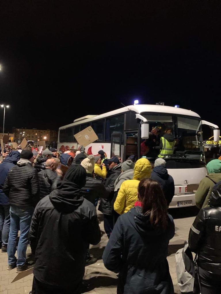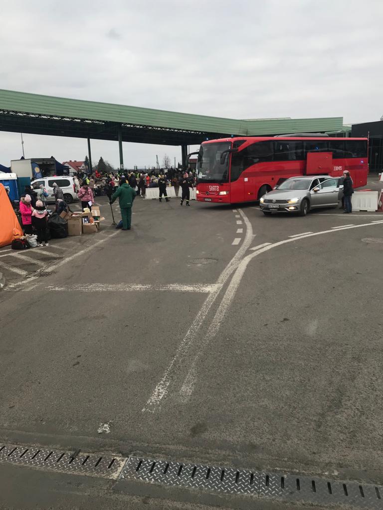 Strażacy z koneckiej Jednostki Ratowniczo-Gaśniczej przewożą ukraińskich uchodźców