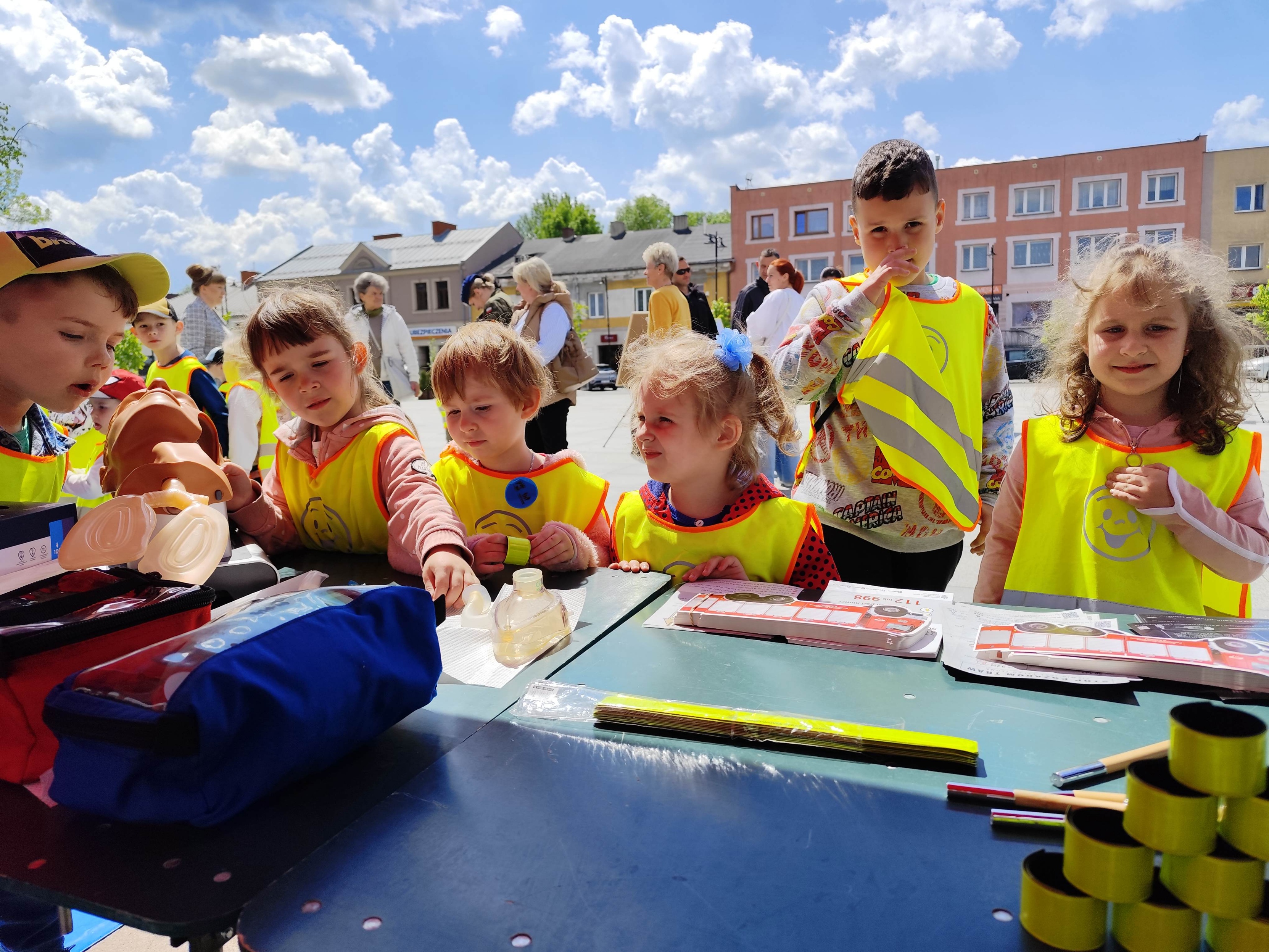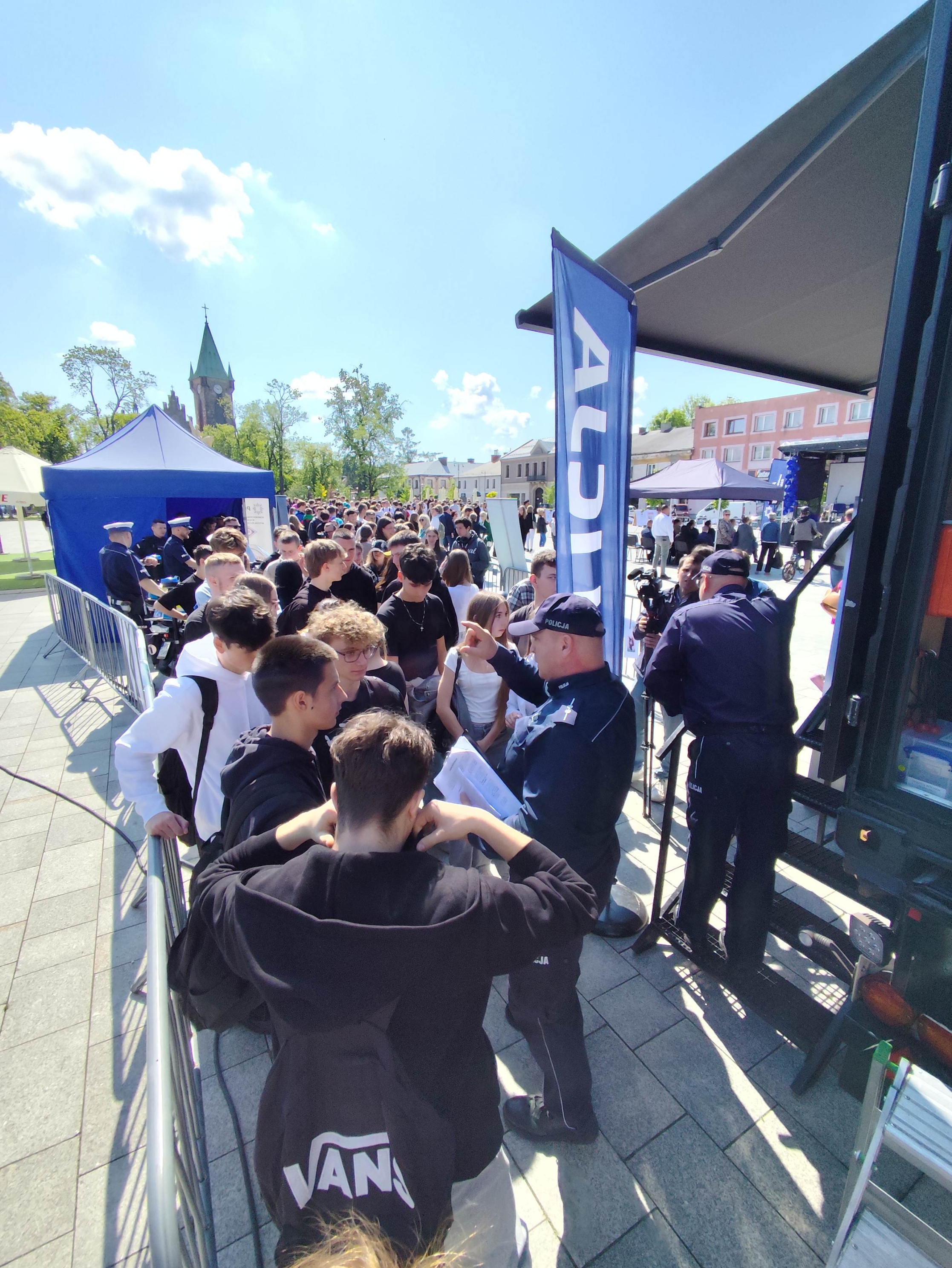 Nasza obecność miała wymiar nie tylko wspierający inicjatywę policji, ale również profilaktyczno-edukacyjny. Przygotowaliśmy stoisko informacyjne, gdzie dla osób oczekujących na wejście do mobilnego pokoju zagadek (Escape Trucka) rozdawaliśmy ulotki, broszury oraz drobne gadżety związane z tematyką bezpieczeństwa pożarowego i działalnością straży pożarnej.