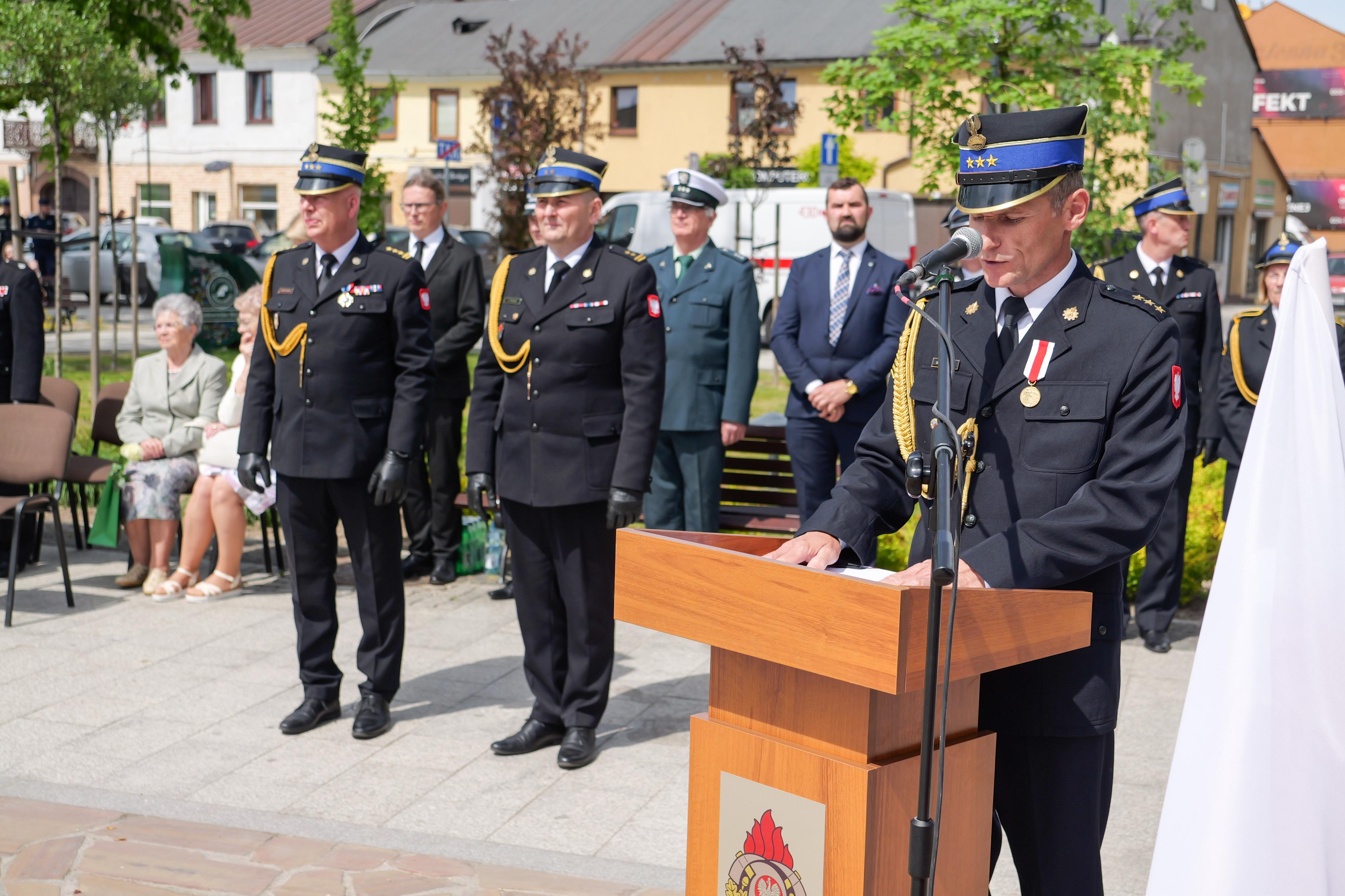 Następnie przyszedł czas na przemówienia zaproszonych gości. Głos zabrali między innymi: sekretarz Zarządu Wojewódzkiego ZOSP RP dh Jerzy Rąbalski, zastępca burmistrza miasta i gminy Końskie Krzysztof Jasiński oraz zastępca świętokrzyskiego komendanta wojewódzkiego PSP st. bryg. Marcin Machowski.