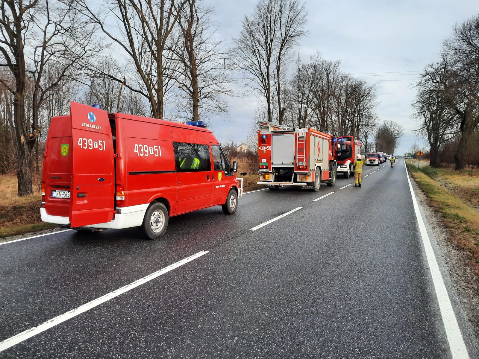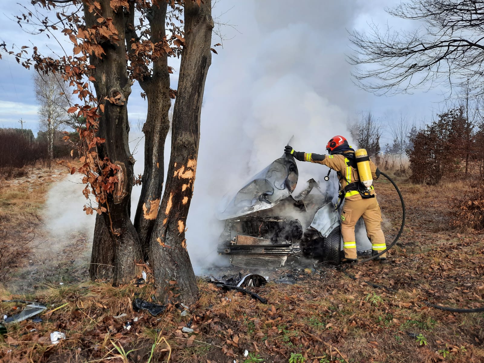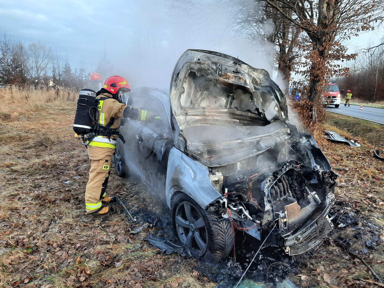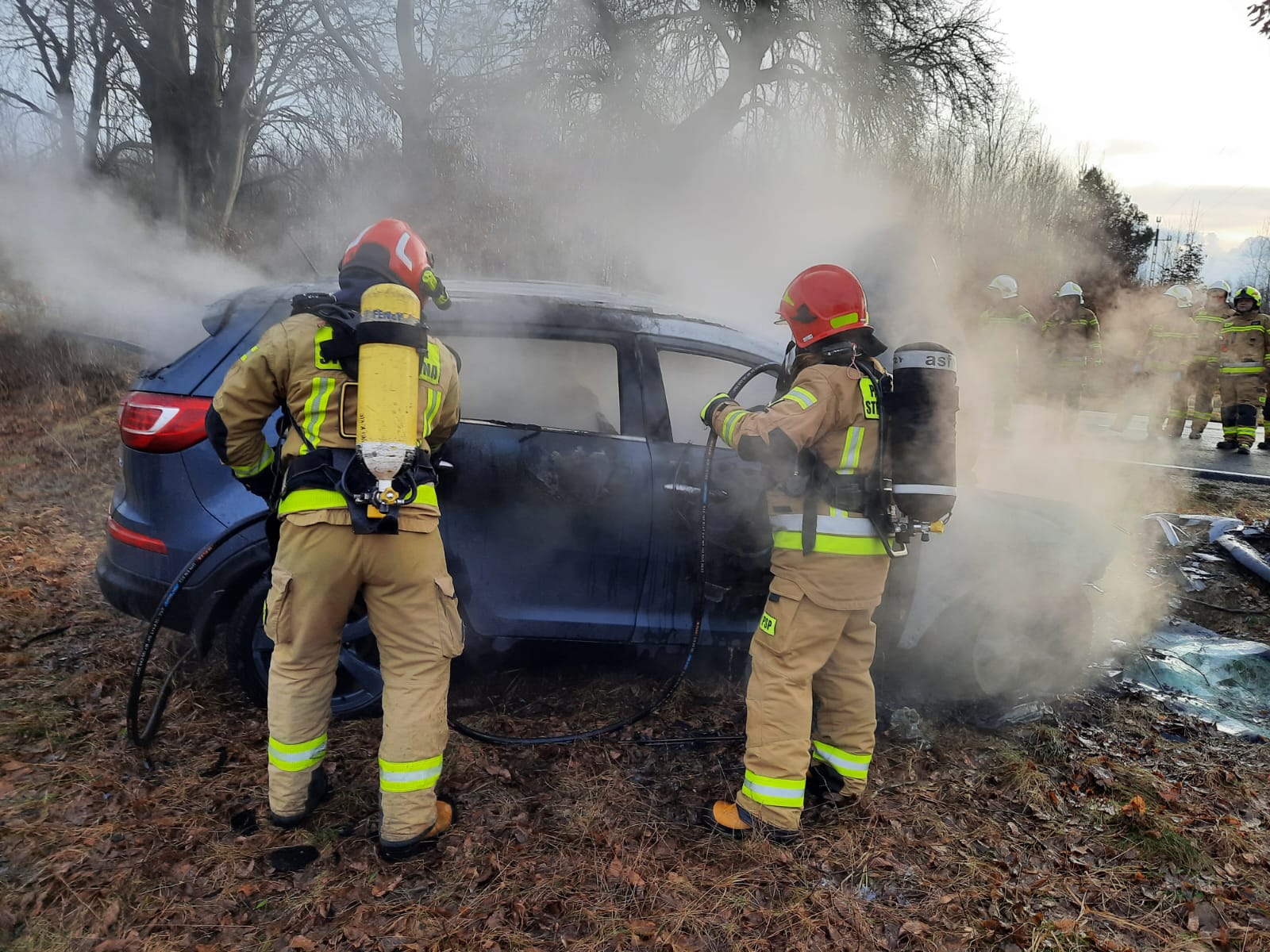 29 grudnia br. o godz. 8:30 doszło do wypadku drogowego na drodze krajowej nr 42 między miejscowościami Ruda Maleniecka i Dęba. Kierująca samochodem KIA zjechała z jezdni i uderzyła w przydrożne drzewo. Kobieta podróżowała sama i opuściła pojazd przed przybyciem służb. Po kilku minutach samochód zaczął się palić. Kiedy jednostki ochrony przeciwpożarowej przybyły na miejsce był już cały w ogniu. Strażacy przystąpili do gaszenia pojazdu i udzielania kwalifikowanej pomocy przedmedycznej 55-letniej kobiecie. Po kilku minutach opiekę nad poszkodowaną przejął zespół ratownictwa medycznego. W działaniach brały udział 2 zastępy JRG Końskie, 2 zastępy OSP Ruda Maleniecka - łącznie 17 strażaków.