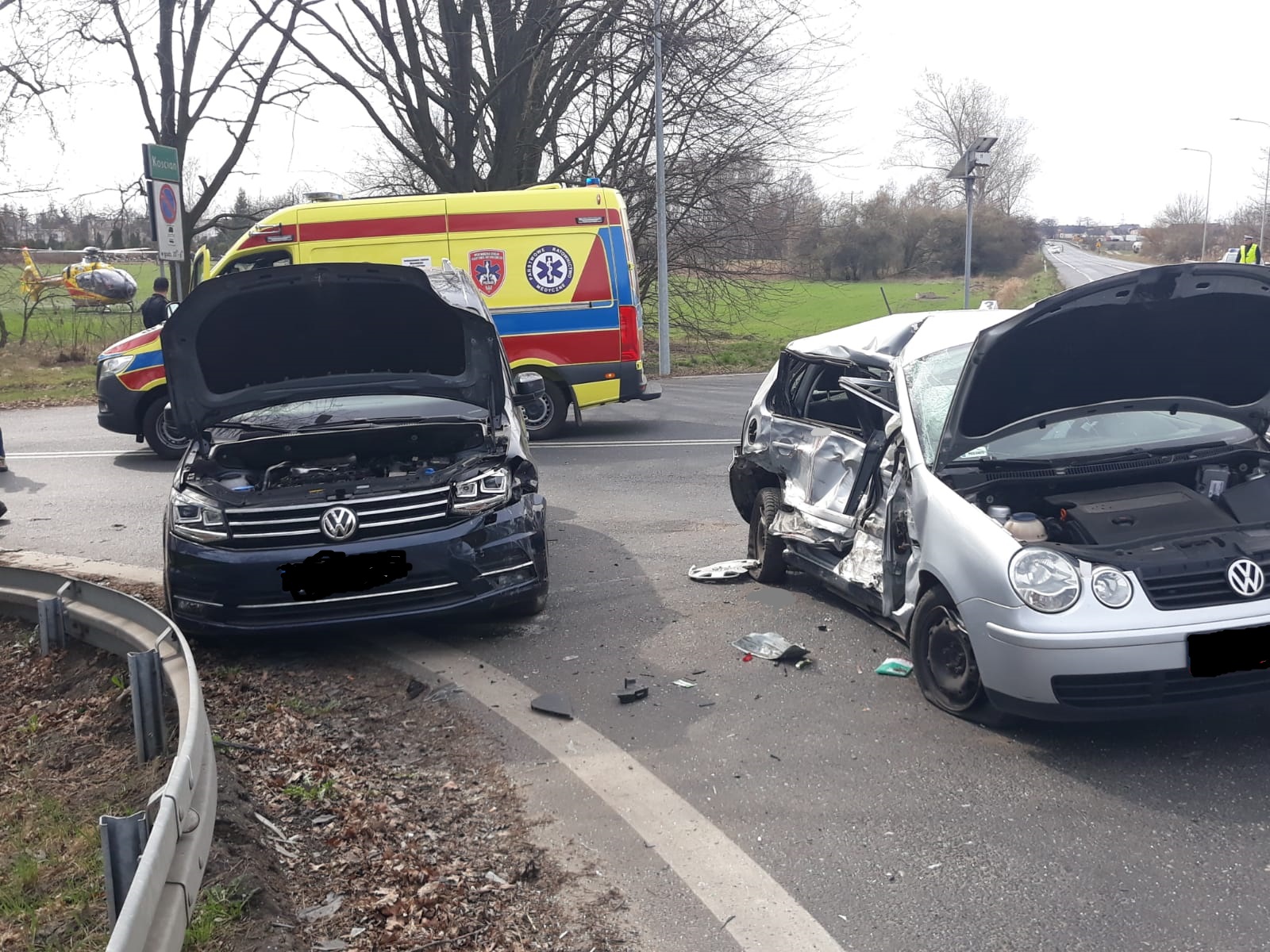 Zgłoszenie o wypadku otrzymaliśmy w środę 30 marca o godz. 12.45. Na miejsce zdarzenia natychmiast zadysponowano trzy zastępy z JRG Kościan oraz OSP Kościan. Po przybyciu na miejsce akcji ustalono, że doszło do zderzenia 3 samochodów osobowych, którymi łącznie podróżowały 4 osoby. Strażacy przystąpili do udzielania pomocy poszkodowanym. Najciężej ranna została 7-letnia pasażerka VW Polo oraz kierująca nim 40-letnia kobieta. Pozostali dwaj kierowcy nie odnieśli obrażeń. Na miejsce zadysponowany został śmigłowiec Lotniczego Pogotowia Ratunkowego. Strażacy wyznaczyli i zabezpieczyli lądowisko, nawiązali łączność i pomogli pilotowi w bezpiecznym lądowaniu. Po kilkudziesięciu minutach, z dziewczynką na pokładzie, śmigłowiec wzbił się w powietrze, przetransportowując Ją do jednego z poznańskich szpitali. Na miejsce przybył także Zespół Ratownictwa Medycznego, który zabrał 40-letnią kobietę do kościańskiego szpitala.