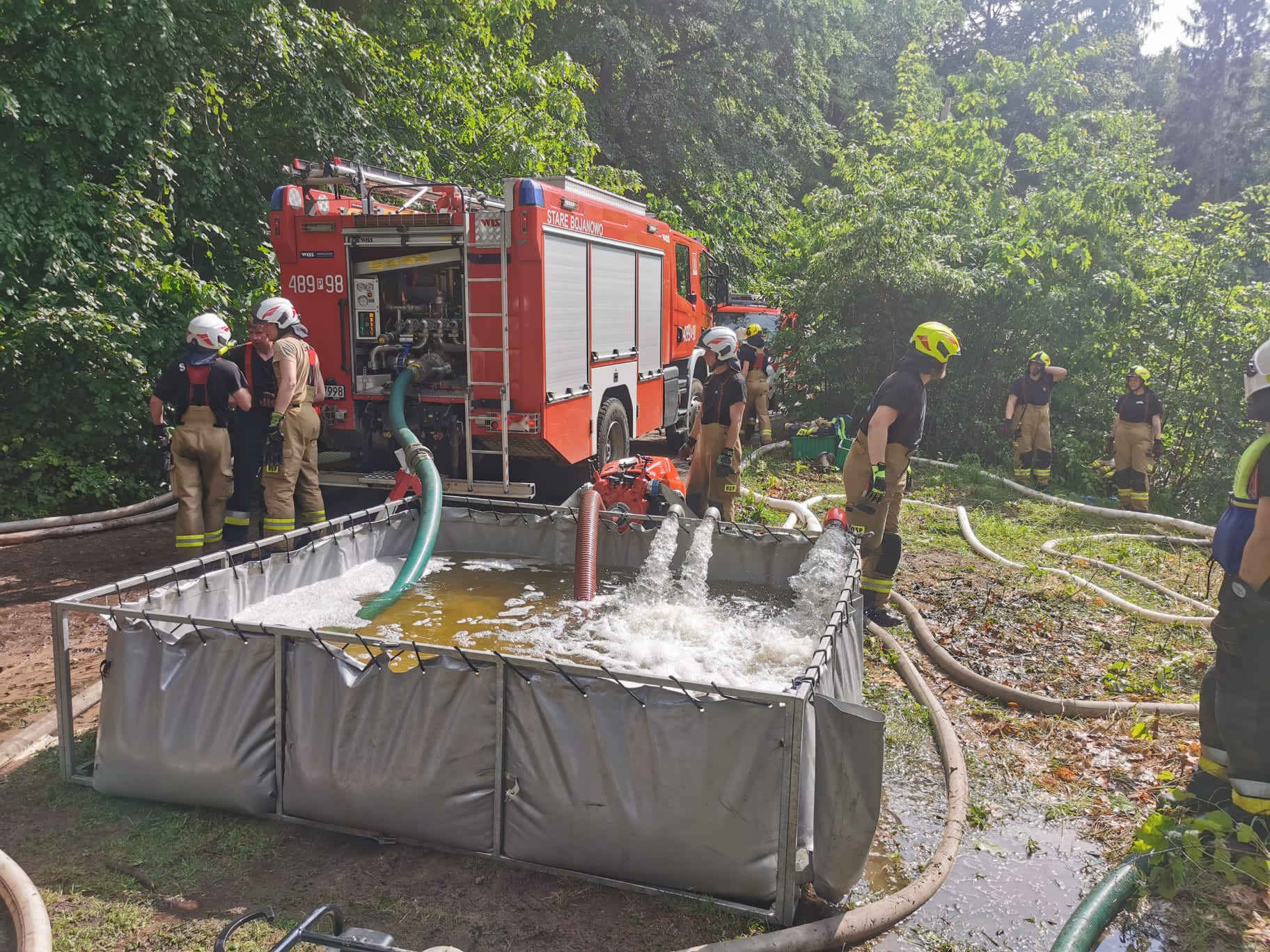 Scenariusz zakładał pożar drzewostanu w jednym z oddziałów. Na miejsce zdarzenia zostały zadysponowane siły i środki z terenu powiatów, których zadaniem było zbudowanie punktów czerpania wody w oparciu o znajdujący się na terenie leśnictwa naturalny zbiornik wodny oraz podanie prądów wody w natarciu na ogniska pożaru. Strażacy w pierwszej części ćwiczyli dowożenie wody do miejsca pożaru, a w miarę przybywania kolejnych sił i środków przystąpiono do budowy magistrali w celu przetłaczania od punktu czerpania wody do miejsca prowadzenia działań gaśniczych. Celem było uzyskanie odpowiedniej wydajności i ilości podanych prądów gaśniczych w miejsce pożaru. W pierwszych minutach ćwiczeń nastąpił ulewy deszcz, który pozwolił sprawdzić możliwości samochodów, jak i umiejętności kierowców pod względem prowadzenia działań w grząskim terenie leśnym. Ćwiczenia były również okazją do sprawdzenia i wykorzystania aplikacji mobilnych oraz organizacji łączności na potrzeby zdarzenia. W ćwiczeniach udział brali także leśnicy, którzy zawsze wspomagają strażaków w działaniach na terenach leśnych i niejednokrotnie są pierwsi na miejscu pożaru, likwidując zagrożenie zanim zdąży się rozprzestrzenić. Całość zakończyło podsumowanie, na którym omówiono wszystkie etapy ćwiczenia, wyciągnięto wnioski i uwagi z działań, podziękowano uczestnikom oraz gospodarzom terenu za możliwość przeprowadzenia ćwiczeń i doskonalenia współpracy z leśniczymi.
