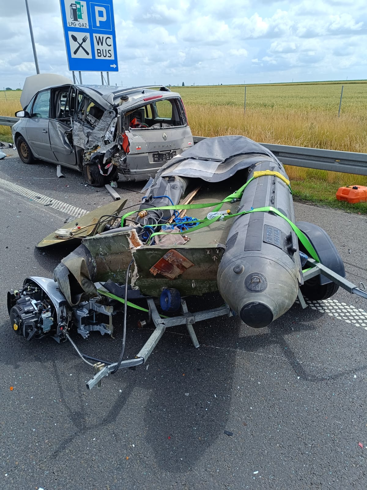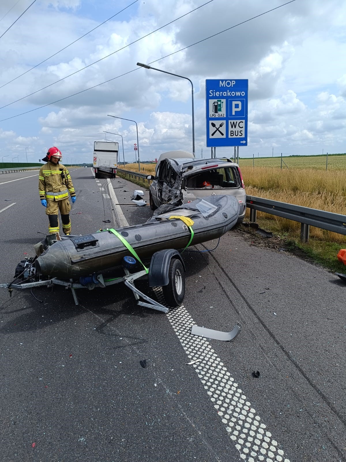 Do pierwszego zdarzenia doszło 1 lipca o godz. 10.58. Na drodze w kierunku Poznania zderzyły się samochód osobowy z przyczepką z pontonem oraz samochód dostawczy. Pojazdami podróżowali tylko kierowcy. Oba pojazdy uległy poważnym zniszczeniom. Strażacy udzielili pomocy poszkodowanym. Przybyły na miejsce Zespół Ratownictwa Medycznego zdecydował o przewiezieniu jednej osoby na dalsze badania do kościańskiego szpitala.