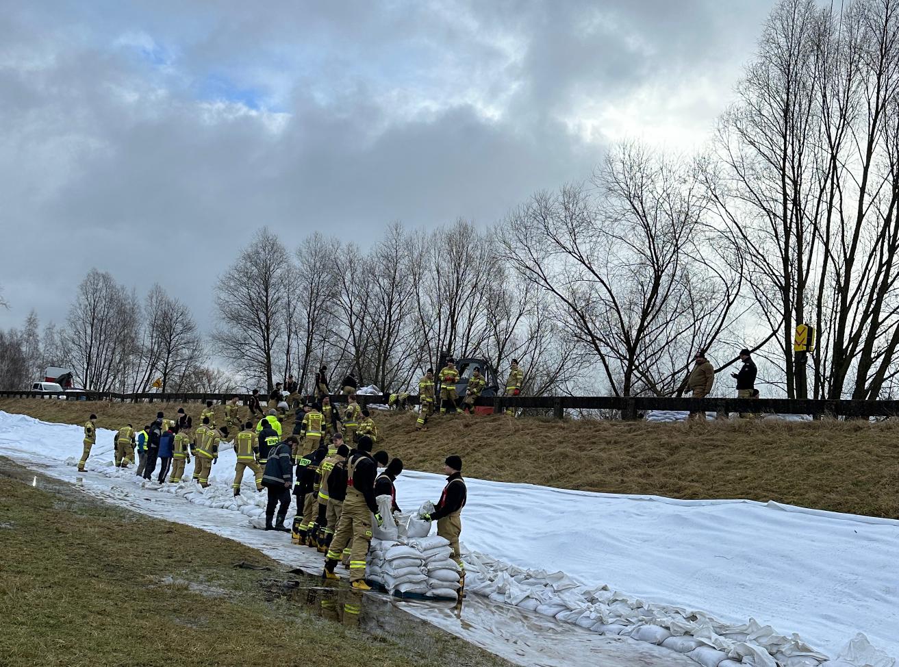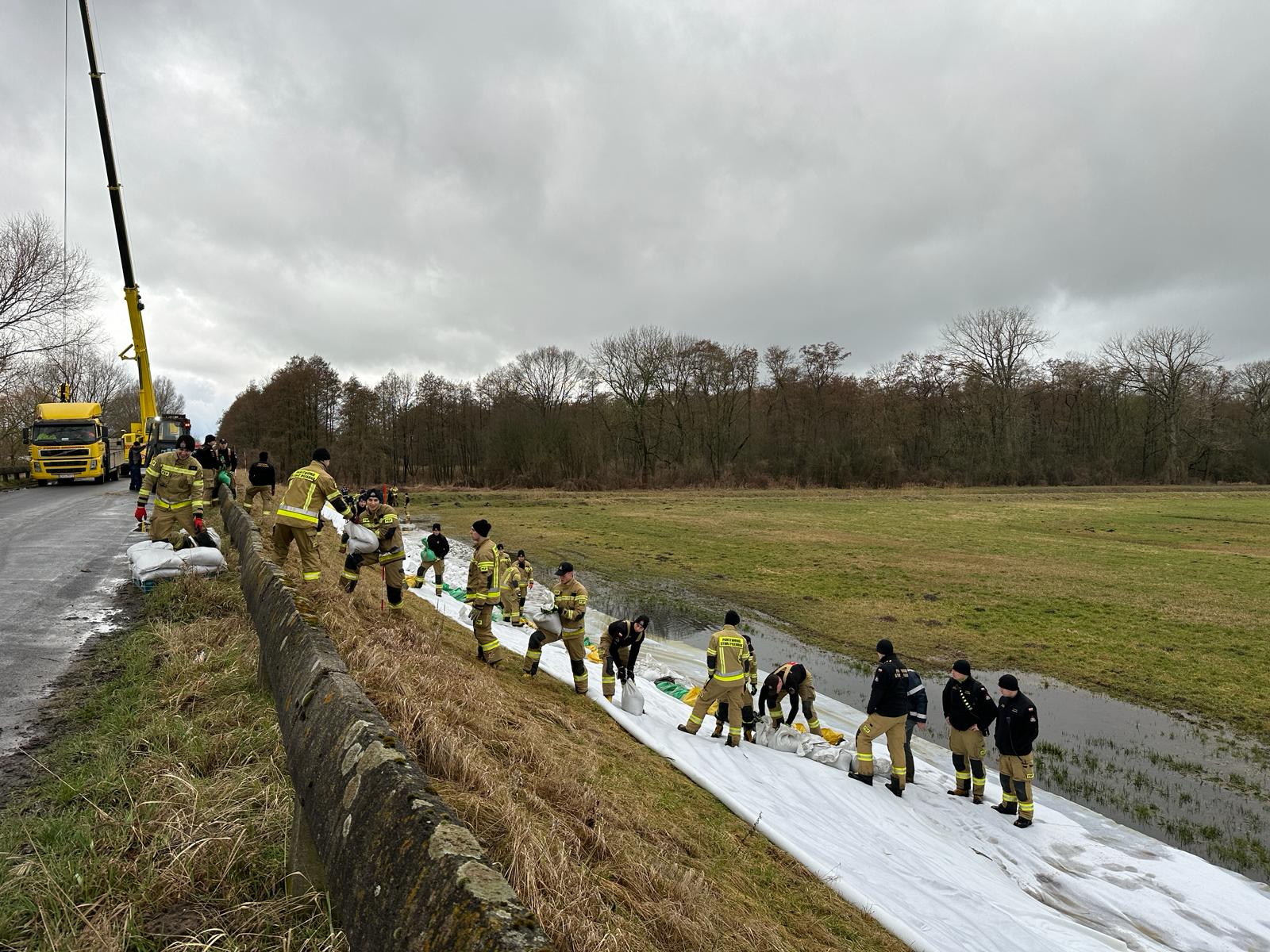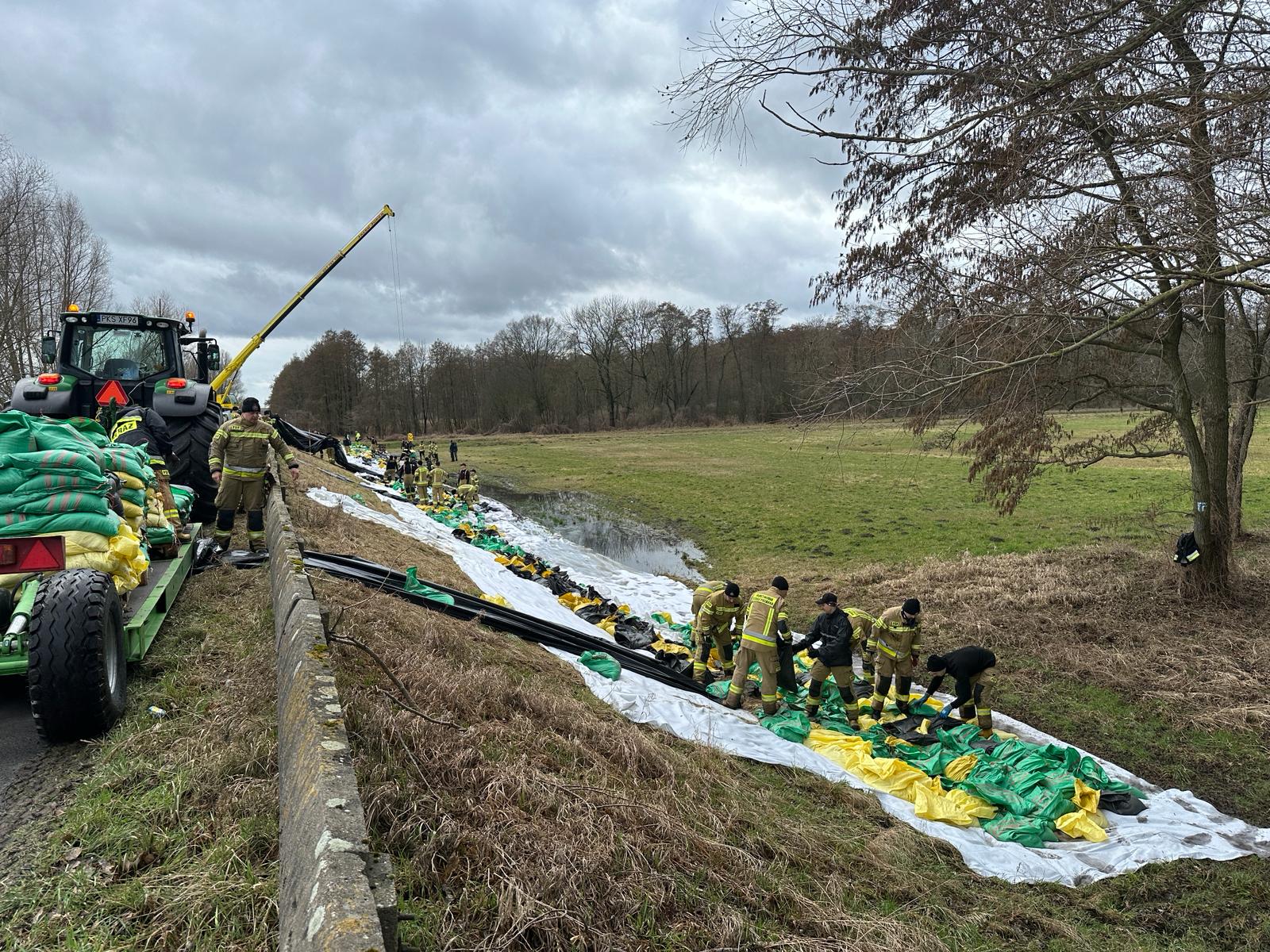 We wtorek, 20 lutego, rozpoczęto dociążenie skarpy za pomocą worków z piaskiem układanych na geowłókninie. Nasze działania wsparli strażacy z Komendy Wojewódzkiej PSP w Poznaniu, Szkoły Aspirantów PSP w Poznaniu, komend miejskich/powiatowych PSP w Gostyniu, Grodzisku Wielkopolskim, Kępnie, Koninie, Ostrzeszowie i Rawiczu.