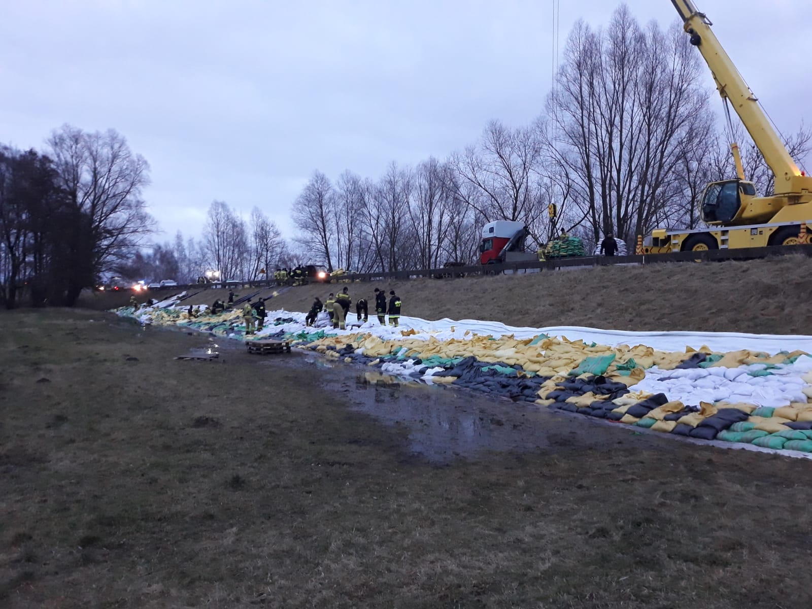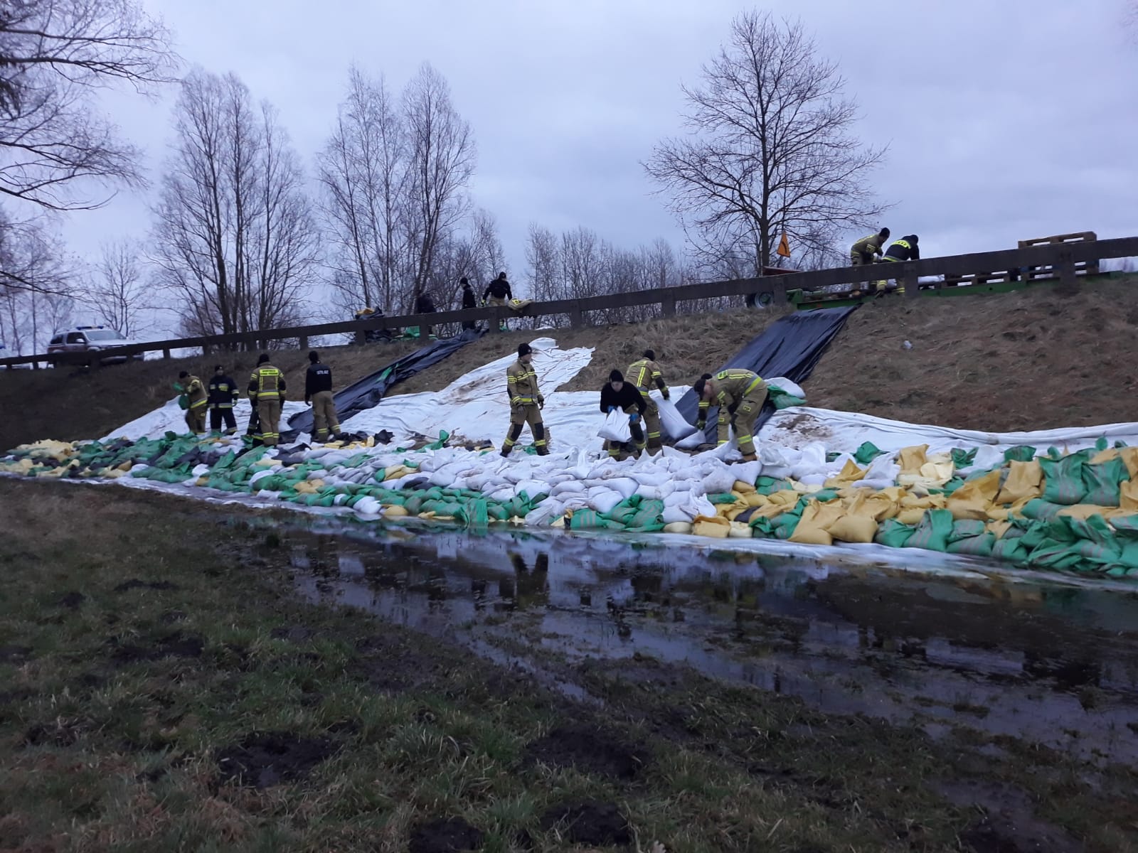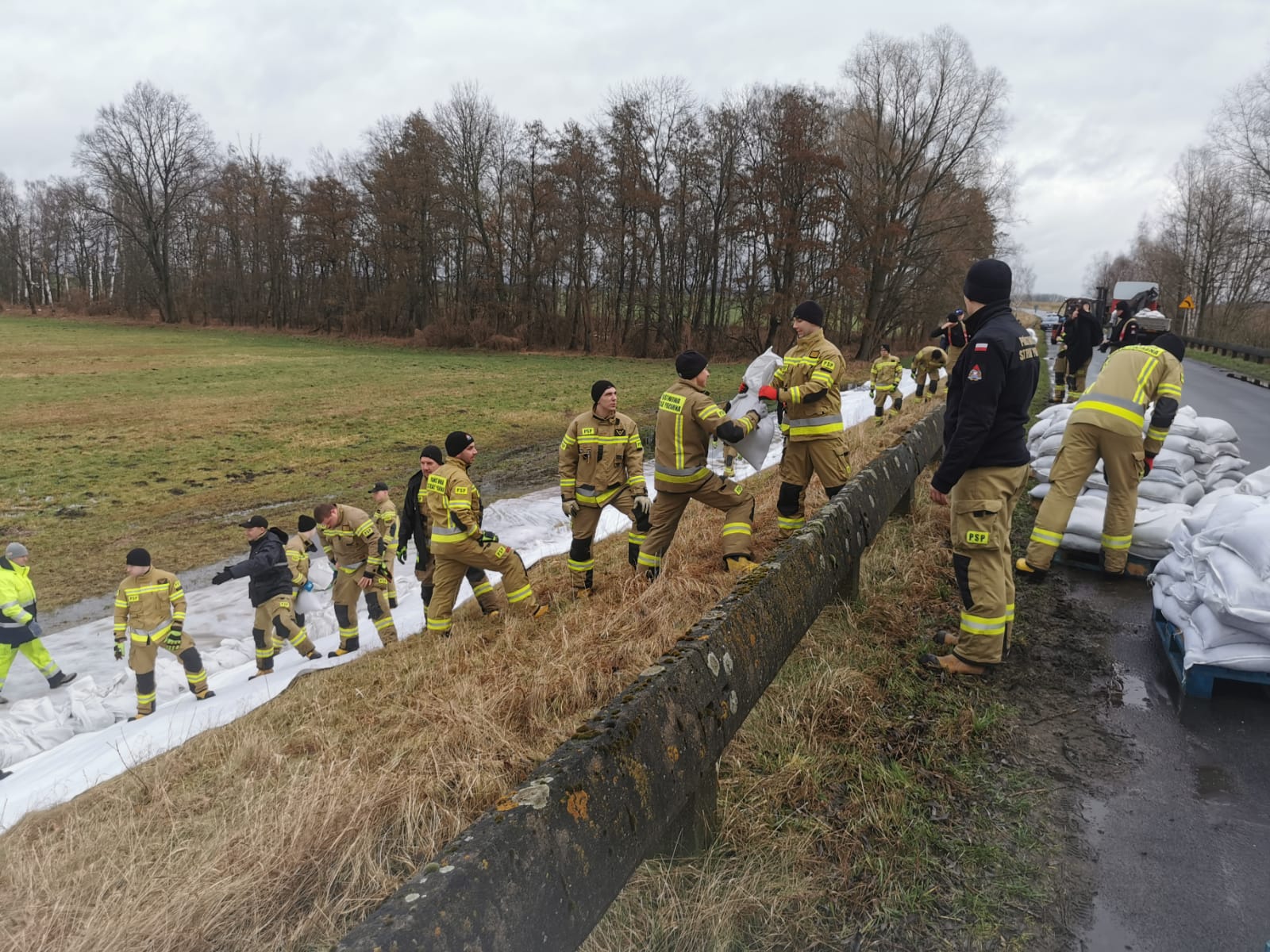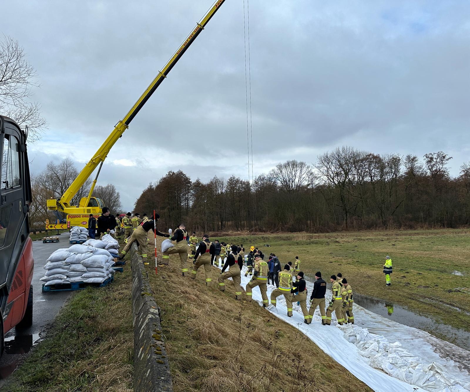 We wtorek, 20 lutego, rozpoczęto dociążenie skarpy za pomocą worków z piaskiem układanych na geowłókninie. Nasze działania wsparli strażacy z Komendy Wojewódzkiej PSP w Poznaniu, Szkoły Aspirantów PSP w Poznaniu, komend miejskich/powiatowych PSP w Gostyniu, Grodzisku Wielkopolskim, Kępnie, Koninie, Ostrzeszowie i Rawiczu.