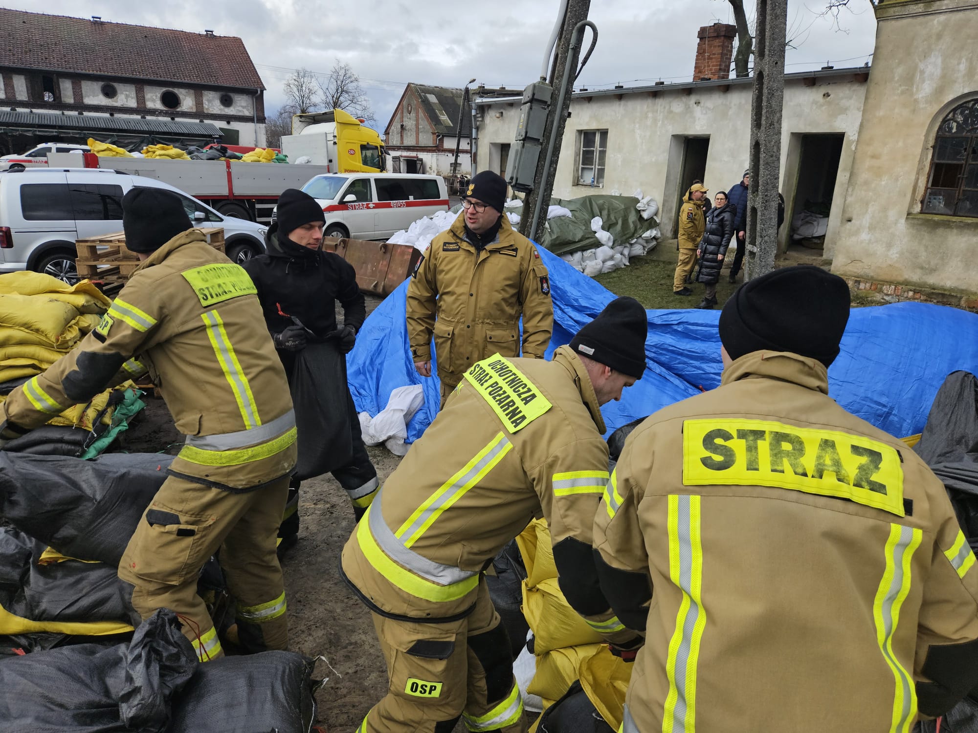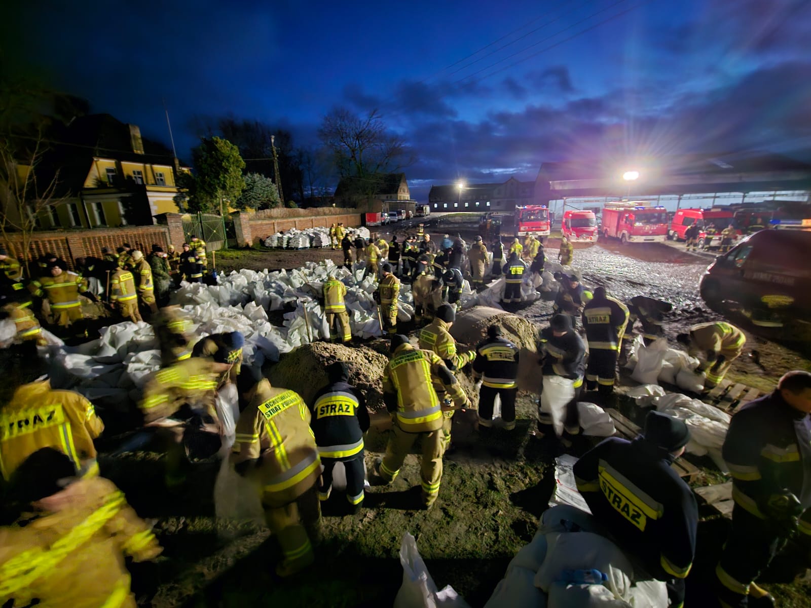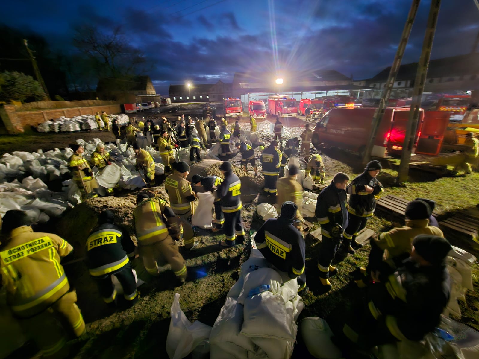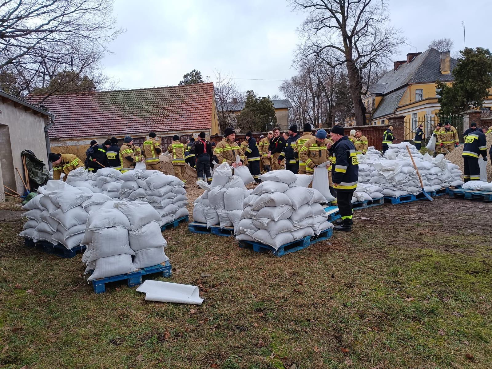 W pracach udział wzięło 163 strażaków. Napełnili Oni piaskiem i ułożyli blisko 20.000 worków.