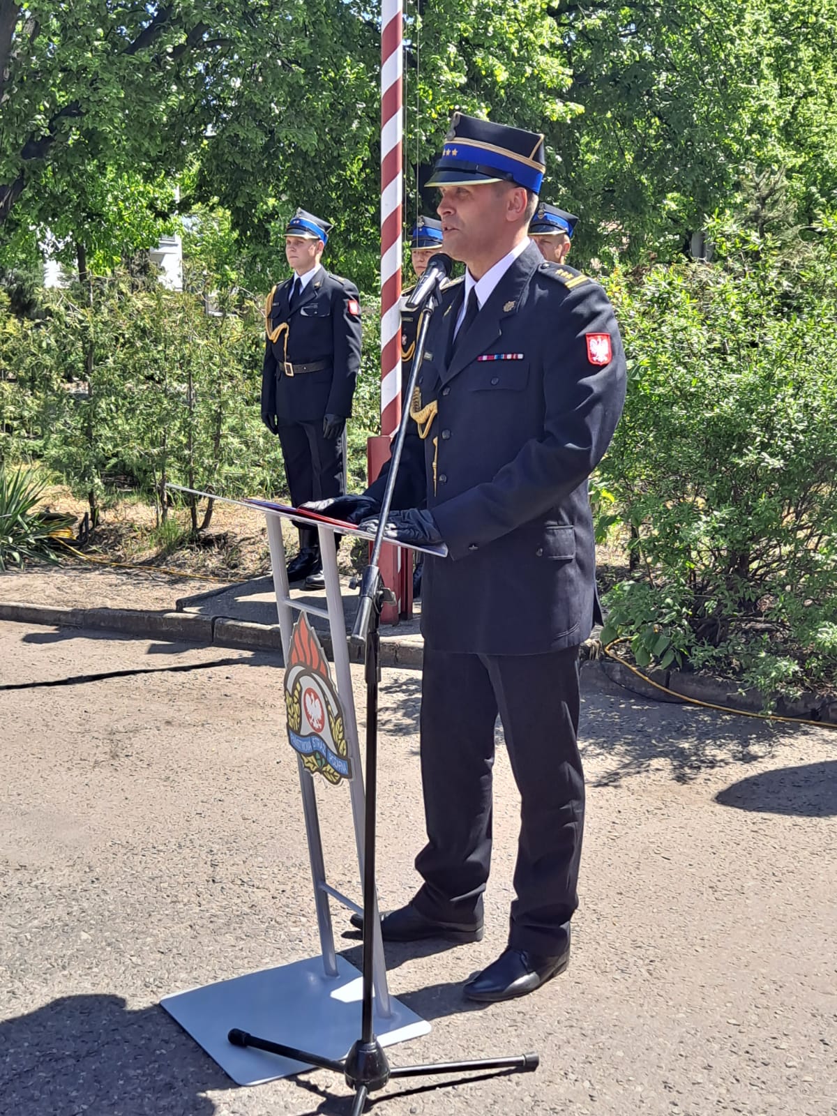 Następnie głos zabrali zaproszeni Goście, składając okolicznościowe życzenia. Nie zabrakło gratulacji dla wyróżnionych i awansowanych. Goście podkreślali rolę strażackiej formacji w budowaniu systemu lokalnego bezpieczeństwa. St. bryg. Adam Topolski - przedstawiciel Wielkopolskiego Komendanta Wojewódzkiego PSP także docenił kościańskich strażaków. Podziękował wszystkim strażakom za ich trud i poświęcenie podczas codziennej służby, działań w czasie pandemii, działania w Grecji, zbiórkę sprzętu i wyposażenia dla strażaków z Ukrainy. Powiedział o nakładach jakie skierowane są na funkcjonowanie systemu na terenie powiatu kościańskiego i całego województwa.