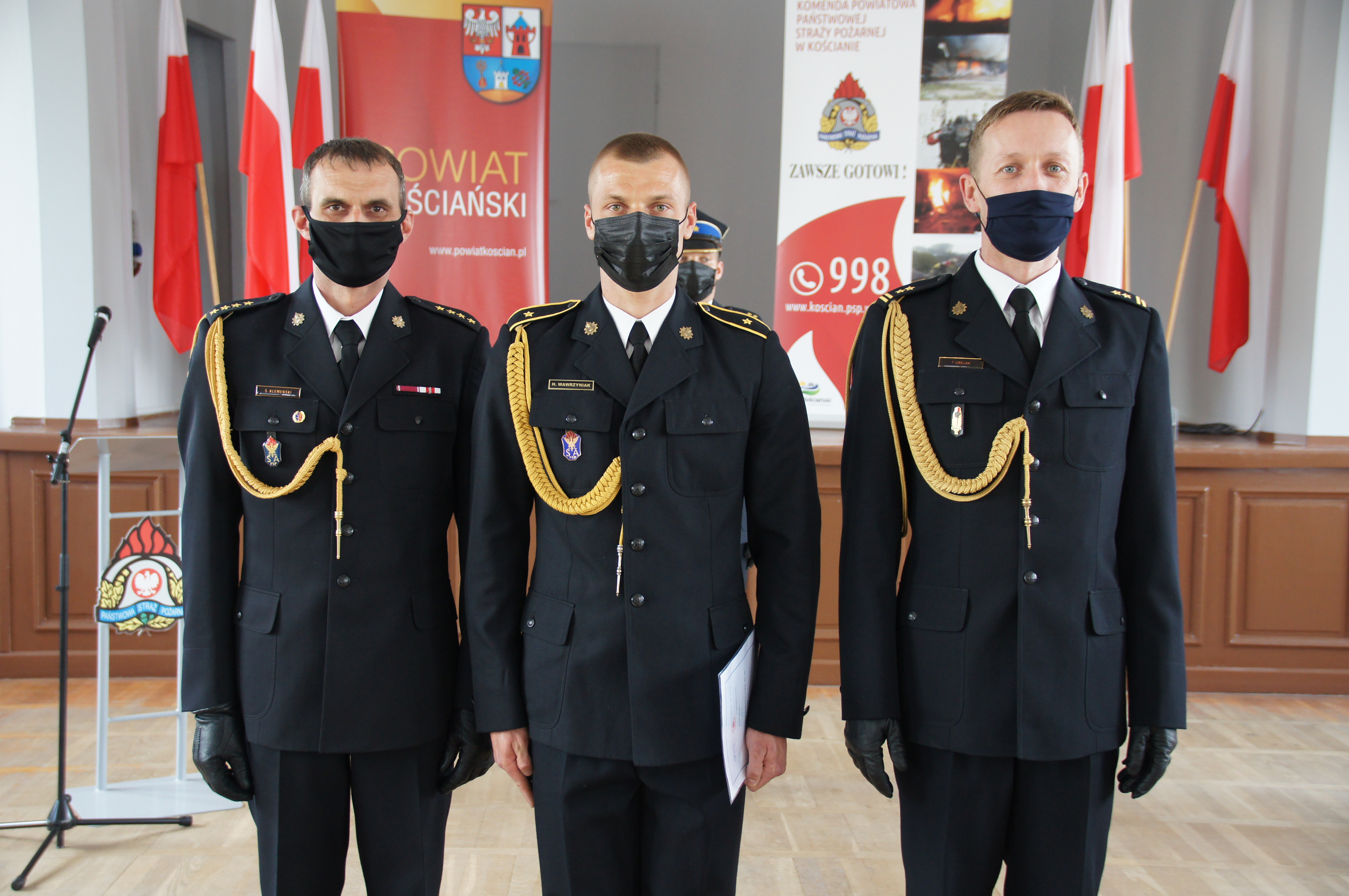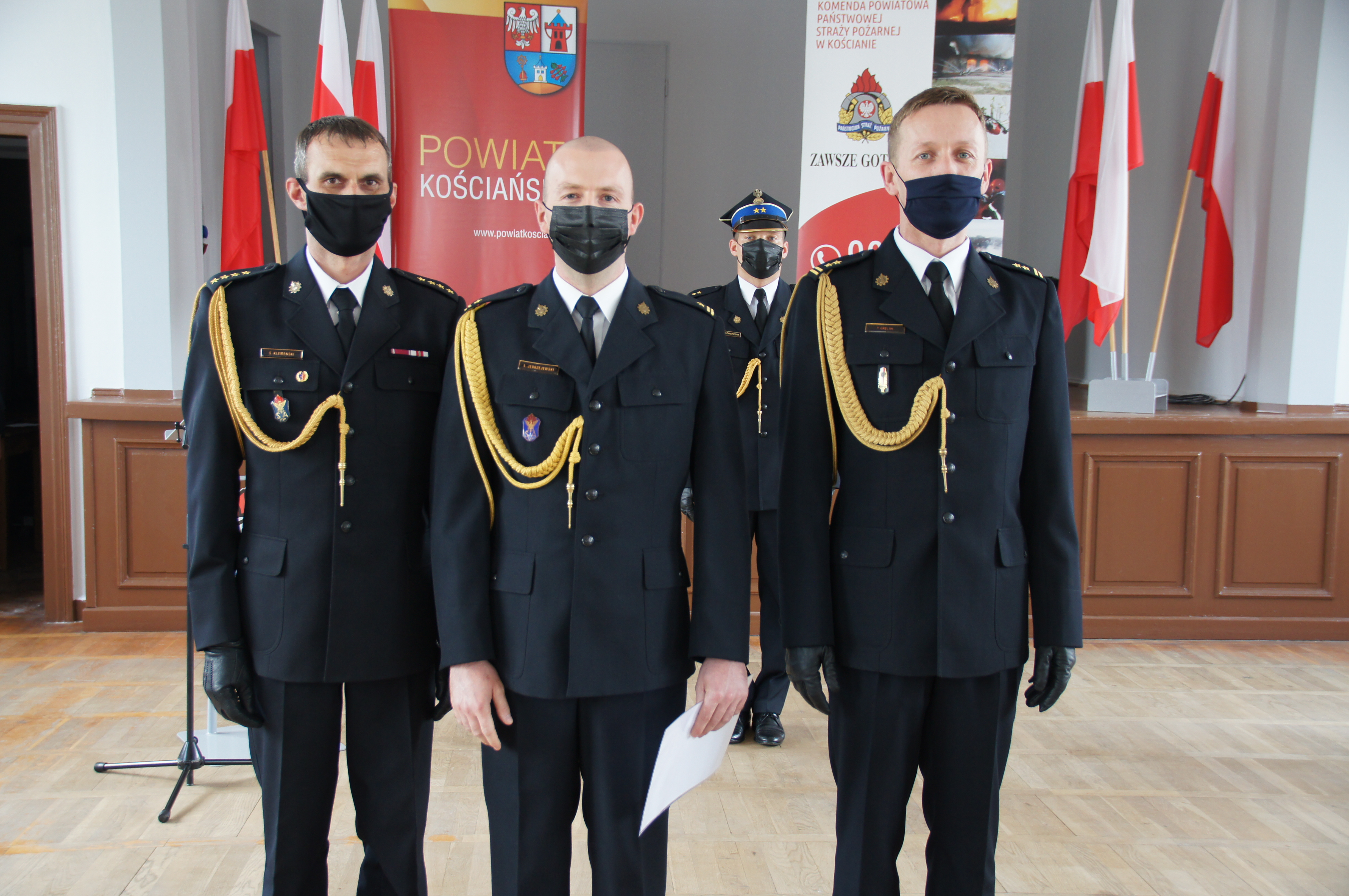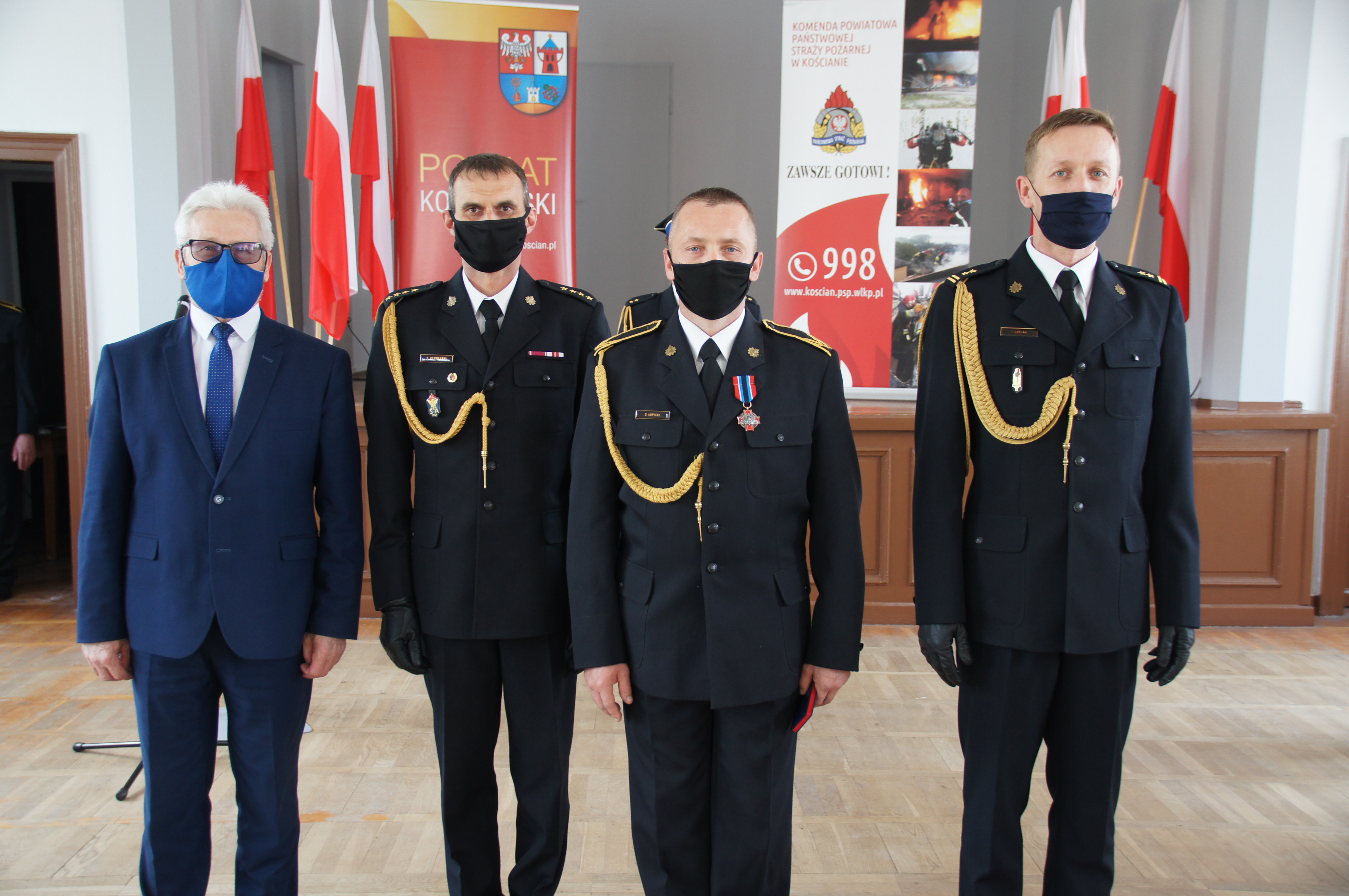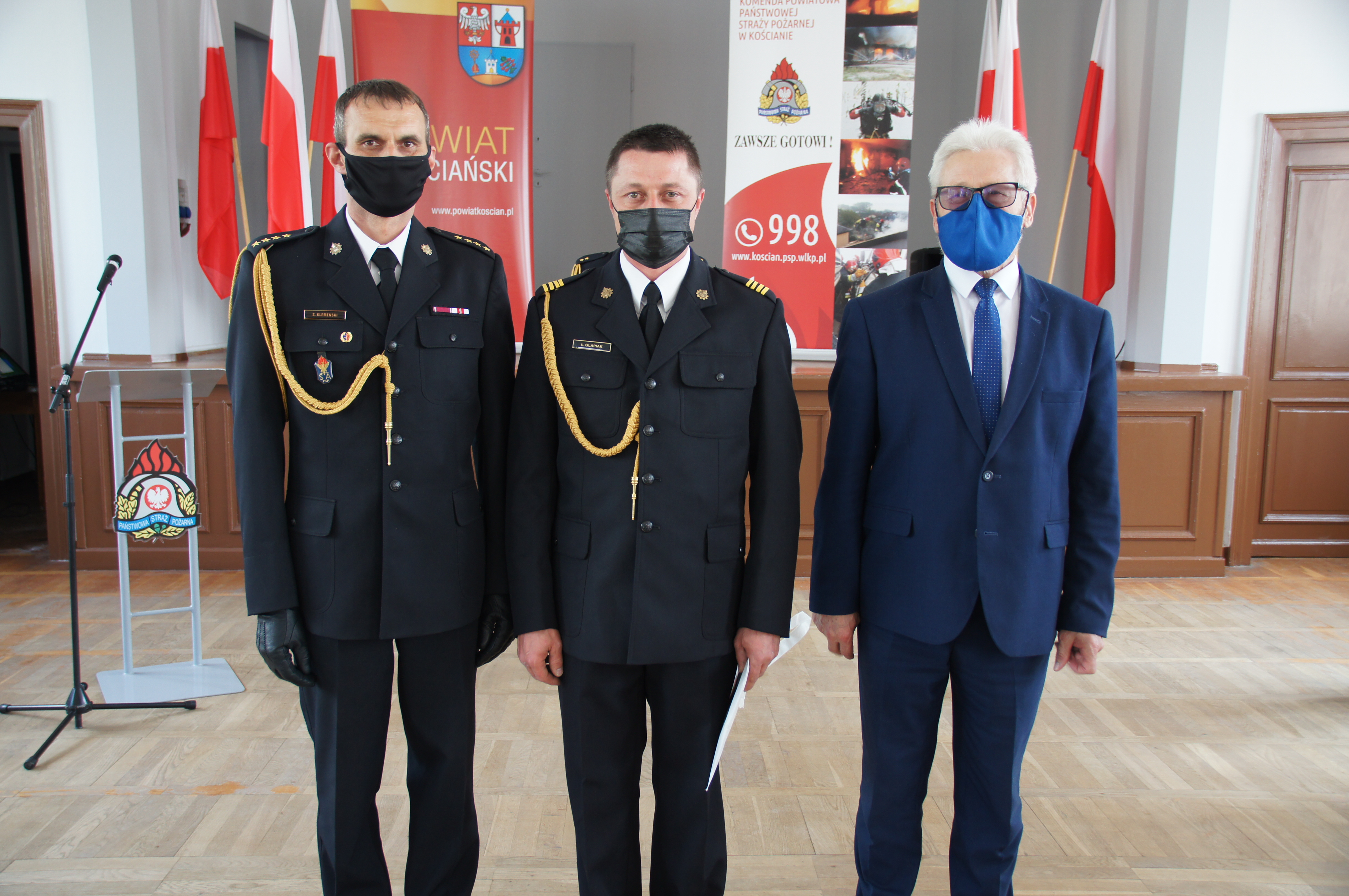 Następnie głos zabrali zaproszeni Goście, składając okolicznościowe życzenia. Nie zabrakło gratulacji dla wyróżnionych i awansowanych. Goście podkreślali rolę strażackiej formacji w budowaniu systemu lokalnego bezpieczeństwa. Przedstawiciel Wielkopolskiego Komendanta Wojewódzkiego PSP mówił o tym jak wiele nowych zadań wykonują strażacy, o tym ile nowych wyzwań czeka na naszej drodze. Starosta Kościański Henryk Bartoszewski w przemówieniu pochwalił bardzo dobrą współpracę strażackiej braci na terenie powiatu kościańskiego. Podkreślił, że bycie ratownikiem nie jest zwykłą pracą czy działalnością, jest wyzwaniem i służbą dla bliźniego. Jednocześnie wyraził przekonanie, że powiatowy system bezpieczeństwa będzie się umacniał.