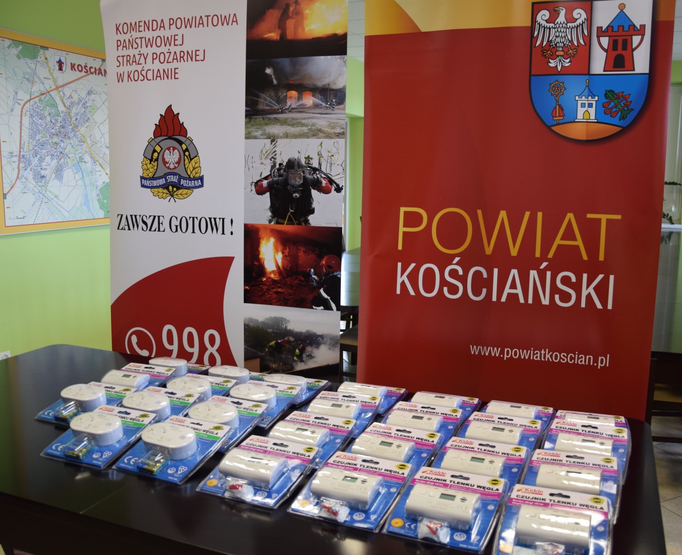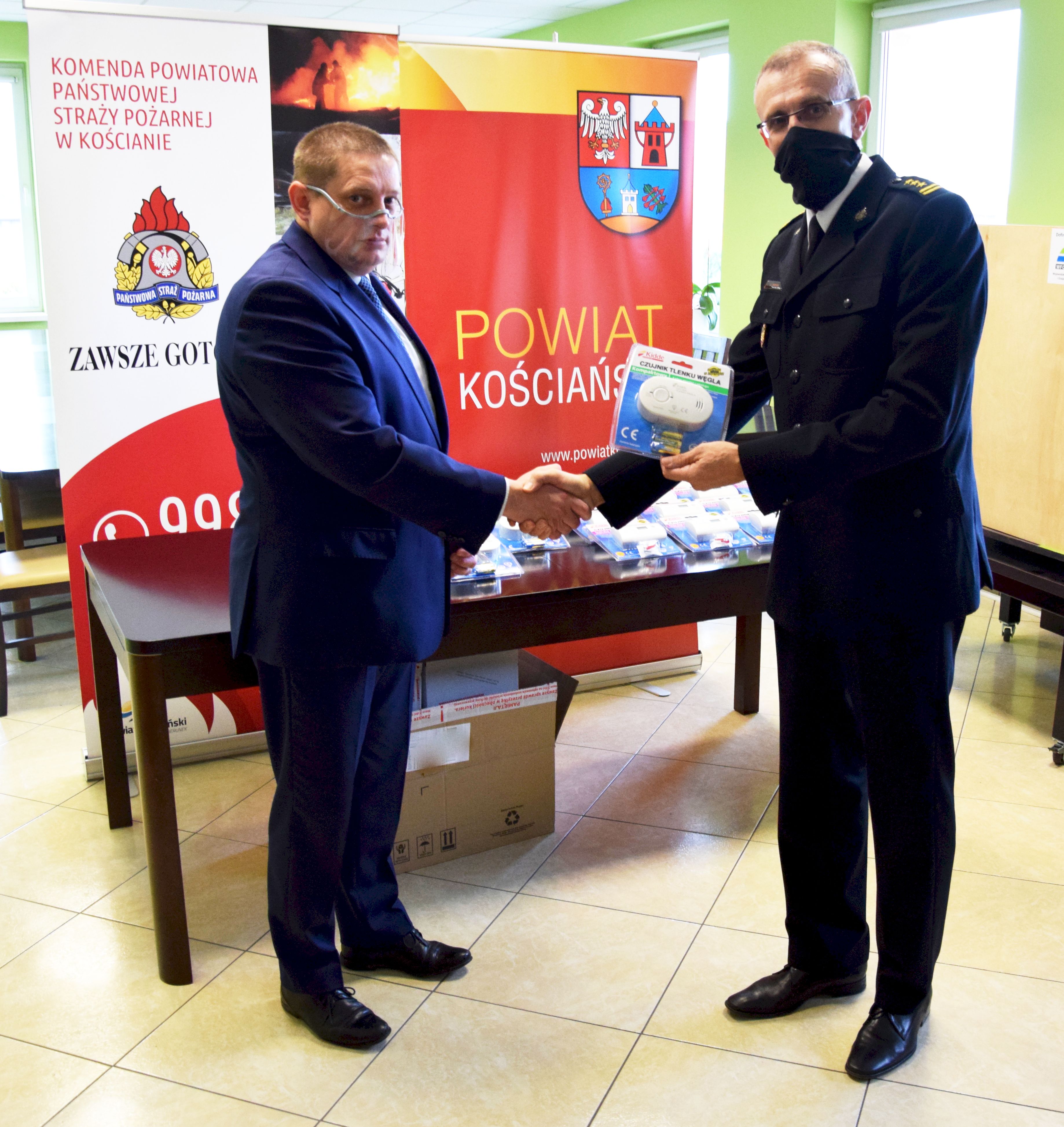Istotnym wsparciem działań profilaktycznych strażaków jest z pewnością krok samorządu powiatu kościańskiego, który już kolejny rok z rzędu zakupił kilkadziesiąt czujek tlenku węgla z przeznaczeniem dla mieszkańców powiatu. Cieszy nas fakt, że władze samorządu powiatowego dostrzegają problem i aktywnie włączają się w walkę z „cichym zabójcą”. 3 listopada V-ce Starosta Kościański Zbigniew Franek przekazał urządzenia na ręce st. bryg. Andrzeja Zieglera Komendanta Powiatowego PSP w Kościanie. Strażacy będą dystrybuować czujki podczas różnego rodzaju akcji.
