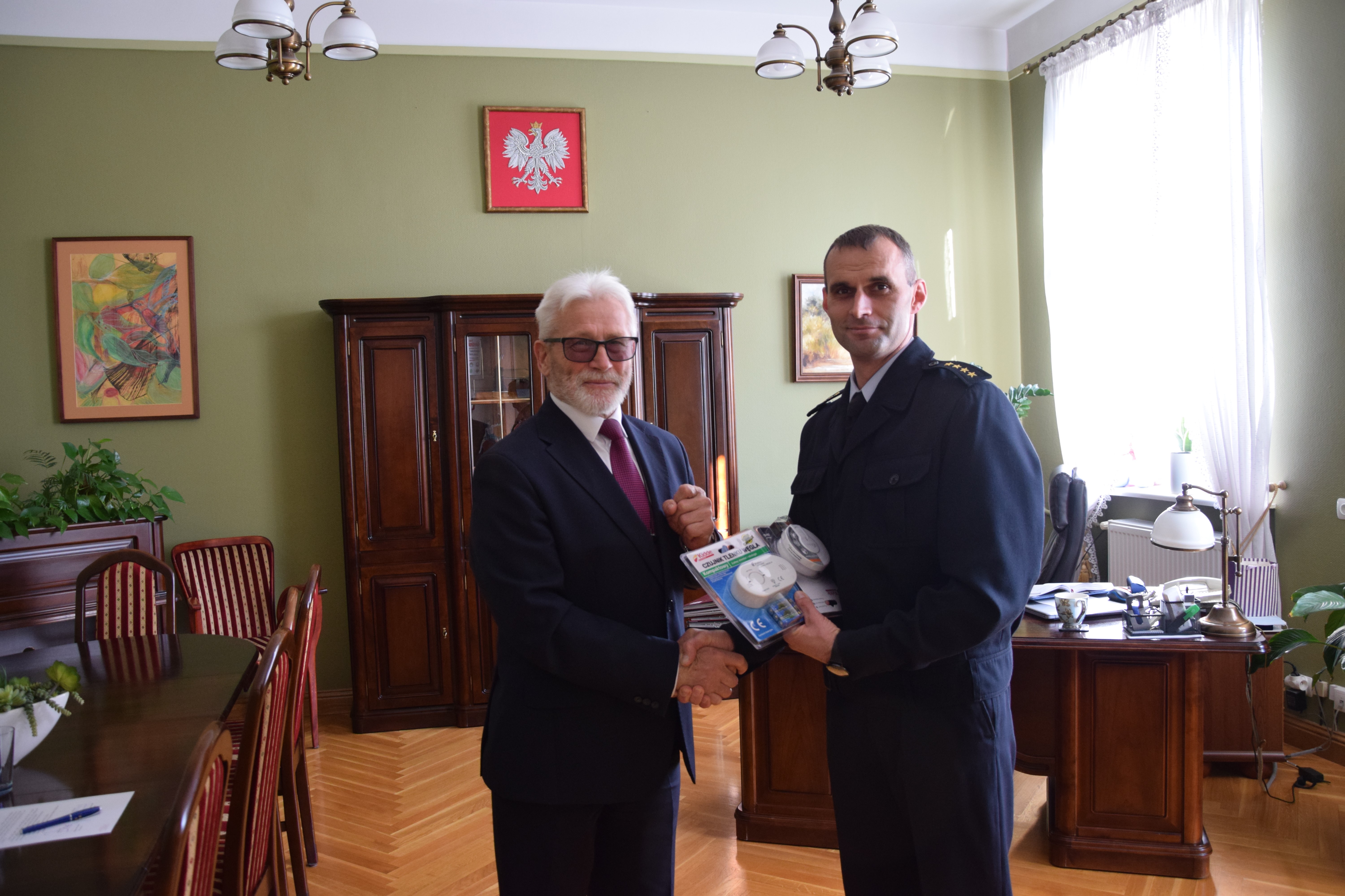 Istotnym wsparciem działań profilaktycznych strażaków jest z pewnością krok samorządu powiatu kościańskiego, który już kolejny rok z rzędu zakupił czujki tlenku węgla i czujki dymu z przeznaczeniem dla mieszkańców powiatu. Cieszy nas fakt, że władze samorządu powiatowego dostrzegają problem i aktywnie włączają się w walkę z „cichym zabójcą”. 3 listopada Starosta Kościański Henryk Bartoszewski przekazał urządzenia na ręce st. kpt. Szymona Klemenskiego Komendanta Powiatowego PSP w Kościanie. Strażacy będą dystrybuować czujki podczas różnego rodzaju akcji.