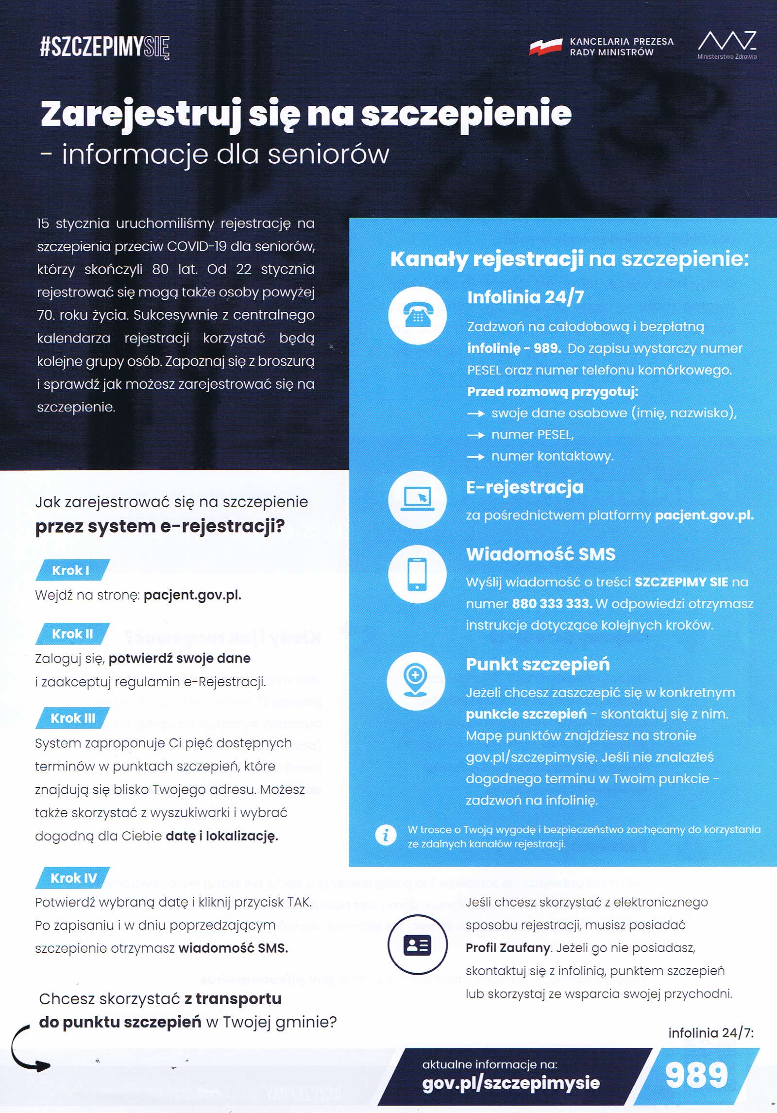 Materiały mają przede wszystkim trafić do mieszkańców wykluczonych cyfrowo, którzy nie korzystają z internetu, często są samotni lub nie radzą sobie z informacją z innych źródeł. Materiały informacyjne trafią do każdego seniora. W ulotkach znalazły się m.in. informacje o tym, jak zapisać się na szczepienie przeciwko COVID-19.