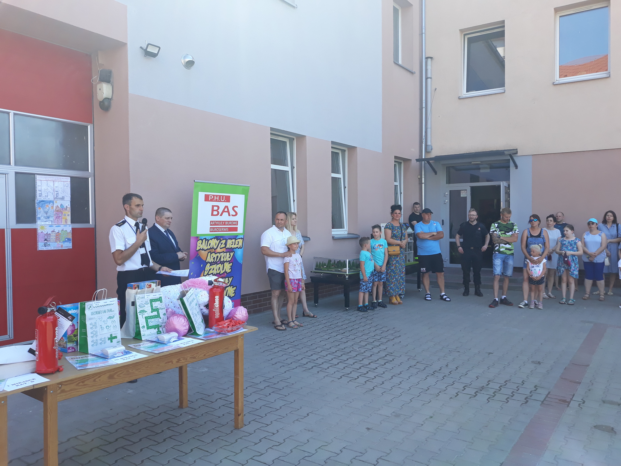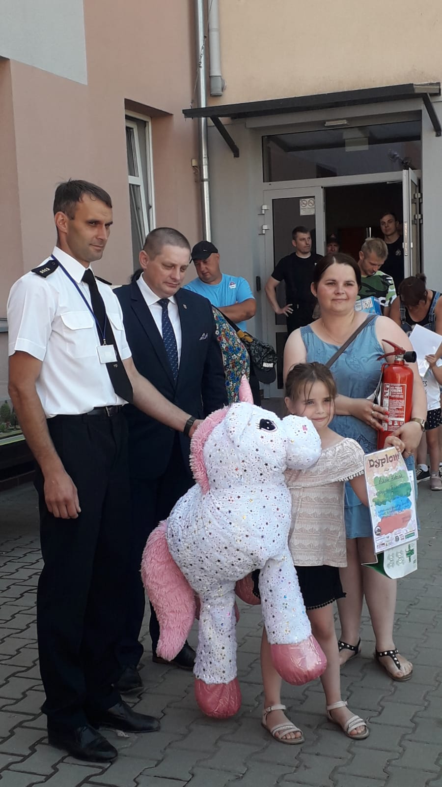 Po uroczystym wręczeniu nagród każdy mógł spróbować swoich sił w pokonaniu toru sprawnościowego czy laniu wody ze strażackiego węża do celu. Niestety z powodu remontu w komendzie nie można było zwiedzić wnętrza jednostki. Dzieci i ich opiekunowie mogli obejrzeć strażacki sprzęt.