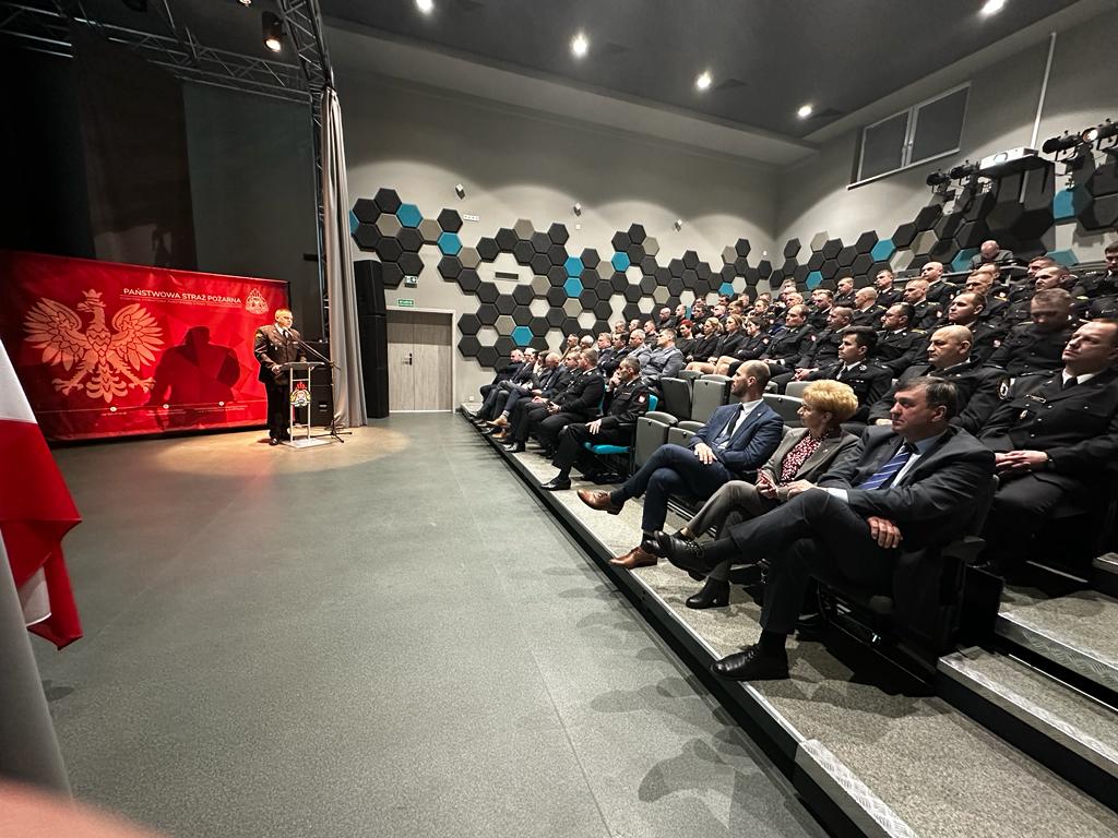 Następnie głos zabrał Zastępca Wielkopolskiego Komendanta Wojewódzkiego Państwowej Straży Pożarnej st. bryg. Jarosław Zamelczyk. Odniósł się do danych zawartych w sprawozdaniu. Podziękował wszystkim strażakom i pracownikom cywilnym za całoroczną służbę i pracę. Zaznaczył, że realizacja zadań na tak wysokim poziomie jest możliwa dzięki ogromnemu zaangażowaniu załogi. Podziękował także druhom z jednostek OSP za działania ratownicze. Podkreślił, że tylko wspólne działania zawodowych i społecznych ratowników są optymalne dla zapewnienia bezpieczeństwa w tym obszarze ratownictwa. Skierował także słowa podziękowania do przedstawicieli samorządu powiatowego i samorządów gminnych za wspieranie działań Komendy. Życzył także utrzymania wysokiego poziomu wykonywania zadań w 2023 roku oraz realizacji ambitnych planów.