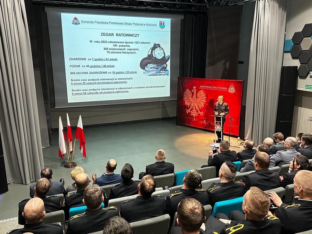 W dniu 15 lutego br. odbyła narada służbowa podsumowująca działalność Komendy Powiatowej Państwowej Straży Pożarnej w Kościanie w 2022 roku. Zaproszenie na naradę, która odbyła się w Kościańskim Ośrodku Kultury w Kościanie, przyjęło grono Gości nadzorujących jej działalność, reprezentujących podmioty i instytucje współpracujące z tutejszą Komendą i wspierające bieżącą działalność.