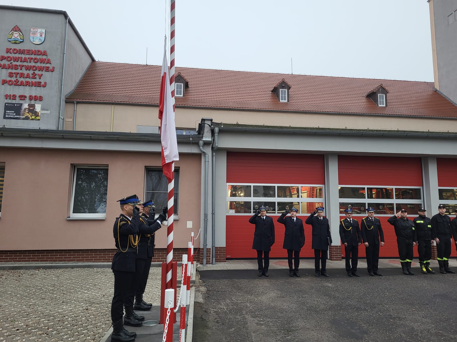 W poniedziałek 11 listopada z okazji Narodowego Święta Niepodległości przed budynkiem Komendy Powiatowej PSP w Kościanie odbył się uroczysty apel. Uroczyście wciągnięto Flagę na maszt i odśpiewano Mazurka Dąbrowskiego w ramach akcji „Niepodległa do Hymnu”. W apelu oprócz zmian służbowych udział wziął Komendant Powiatowy PSP w Kościanie mł. bryg. Jacek Donaj, Zastępca Komendanta Powiatowego PSP w Kościanie st.kpt. Piotr Foremski oraz Dowódca Jednostki Ratowniczo-Gaśniczej kpt. Szymon Kaźmierczak.