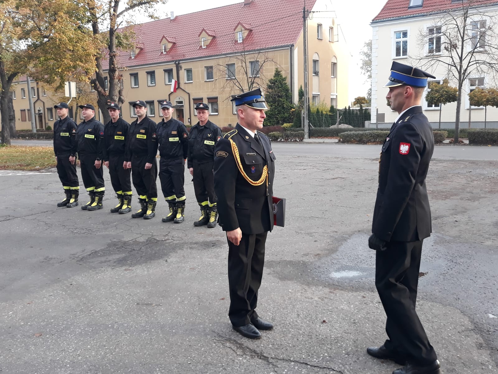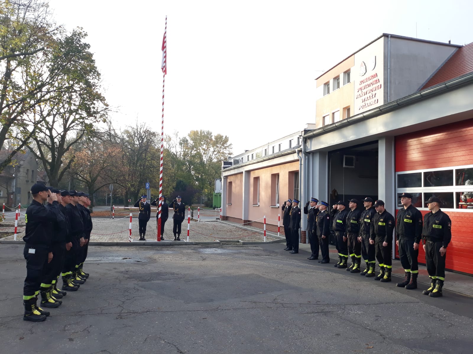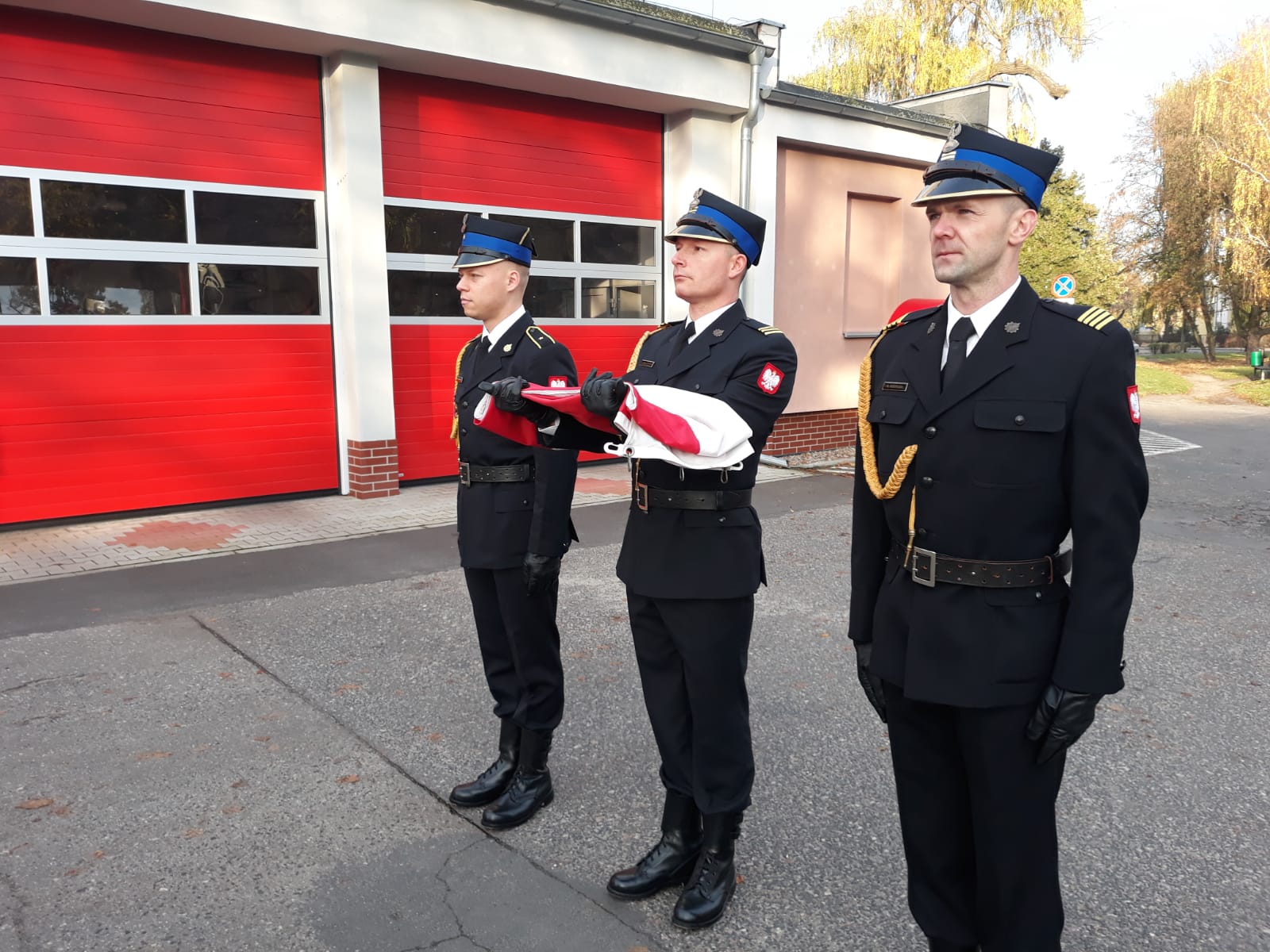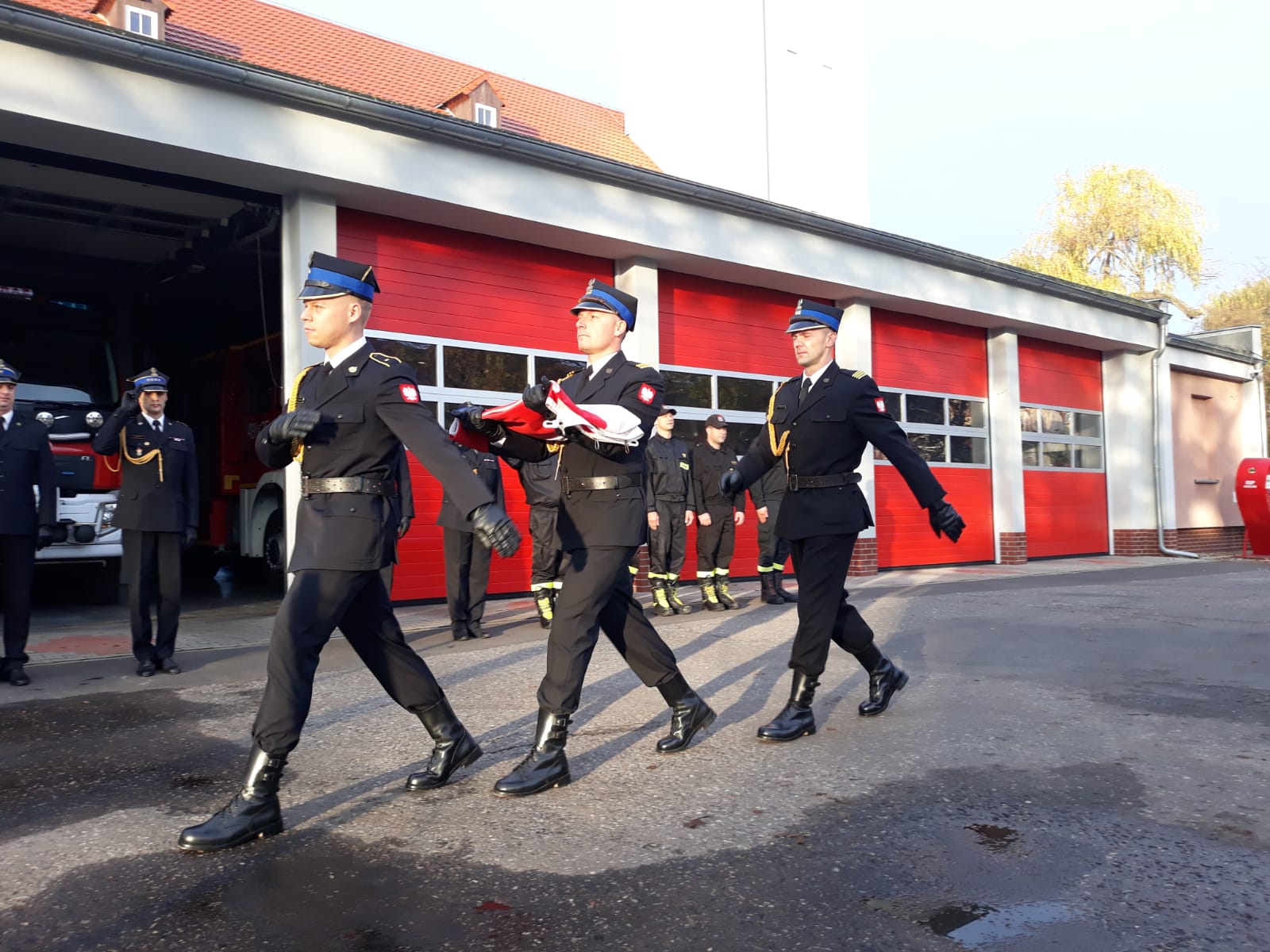 Uroczyście wciągnięto Flagę na maszt i odśpiewano Mazurka Dąbrowskiego w ramach akcji „Niepodległa do Hymnu”. W apelu oprócz zmian służbowych udział wziął Komendant Powiatowy PSP w Kościanie st. kpt. Szymon Klemenski, Dowódca Jednostki Ratowniczo-Gaśniczej mł. bryg. Jacek Donaj oraz Zastępca Dowódcy JRG kpt. Szymon Kaźmierczak.