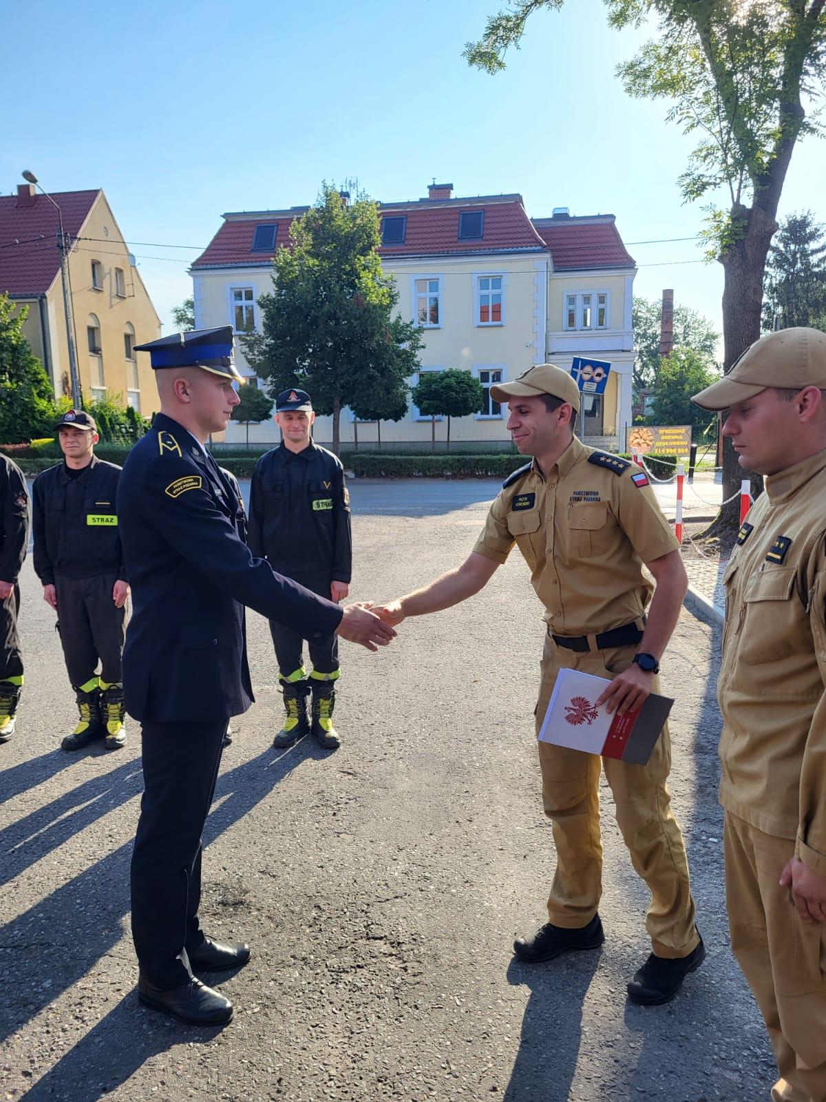Zebrani pogratulowali koledze i życzyli aby dochował roty ślubowania. Życzyli także szybkiego przyswajania nowych wiadomości i umiejętności, awansów oraz tego, by to co do tej pory było marzeniem, teraz stało się spełnieniem planów i zamierzeń, dla dobra osób potrzebujących ratunku oraz całej Państwowej Straży Pożarnej.