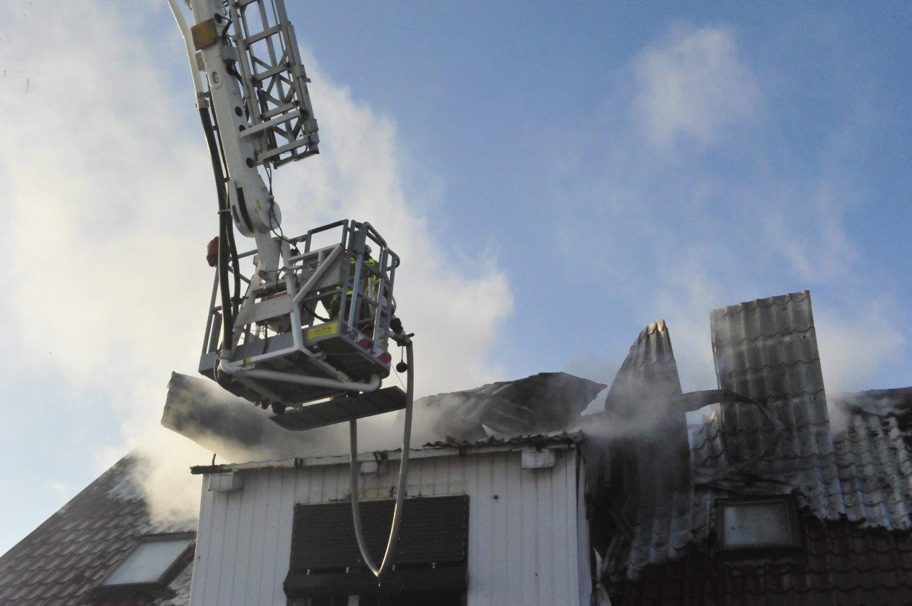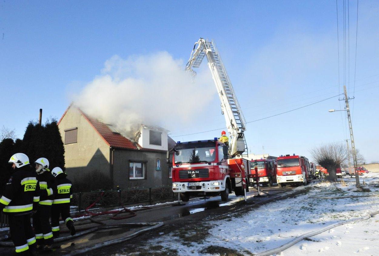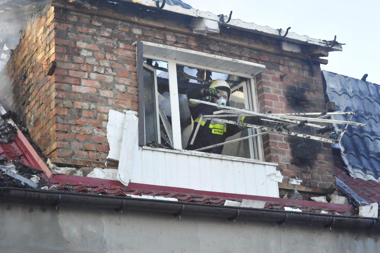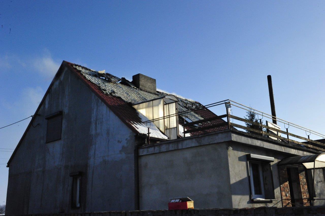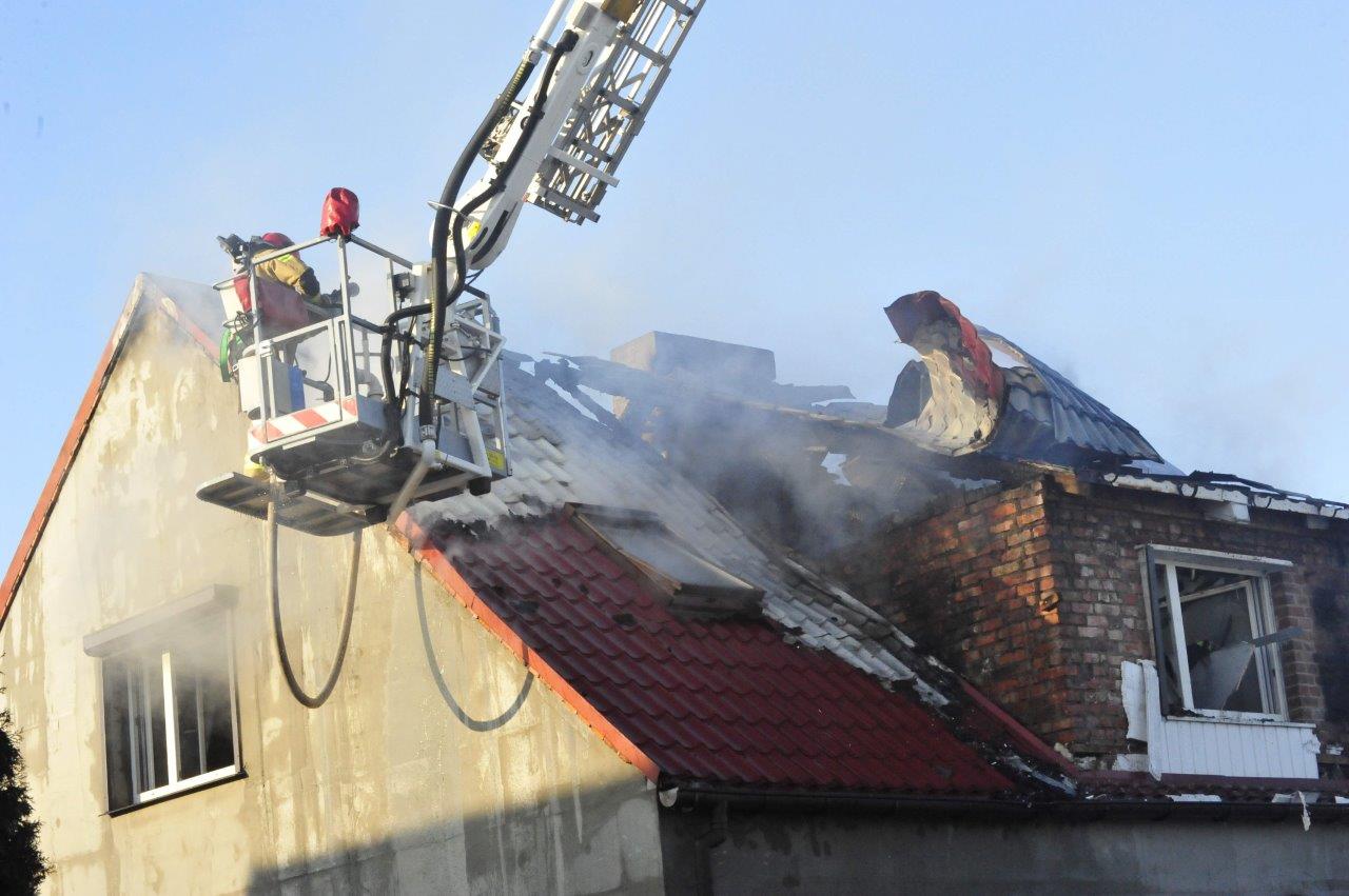 Po przyjeździe zastępów straży pożarnej na miejsce, pożarem objęte było całe poddasze budynku mieszkalnego, płomienie wychodziły na zewnątrz. Mieszkańcy opuścili dom przed przybyciem służb ratowniczych, nie odnosząc obrażeń. Niestety mimo intensywnie prowadzonych działań gaśniczych straty spowodowane pożarem są ogromne i nie pozwalają na dalsze zamieszkanie. Spaleniu uległo poddasze, dach oraz elementy wyposażenia domu. Do zdarzenia zostało zadysponowanych 11 zastępów Państwowej i Ochotniczej Straży Pożarnej.