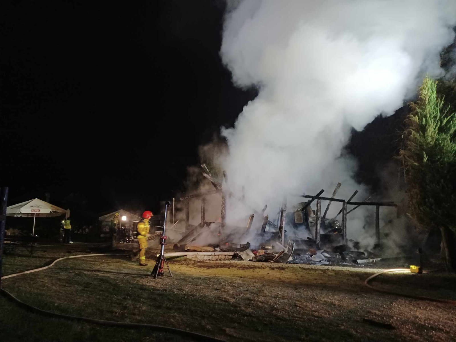 Informację o zdarzeniu otrzymaliśmy o godzinie 2.30. Był to budynek parterowy o konstrukcji drewnianej. Kiedy strażacy dojechali na miejsce cały lokal był w ogniu. Podano prądy wody na palący się obiekt oraz sąsiednie zabudowania i pobliskie drzewa, aby nie dopuścić do rozprzestrzeniania ognia. Po opanowaniu sytuacji strażacy przystąpili do rozbiórki budynku oraz dogaszania pogorzeliska.