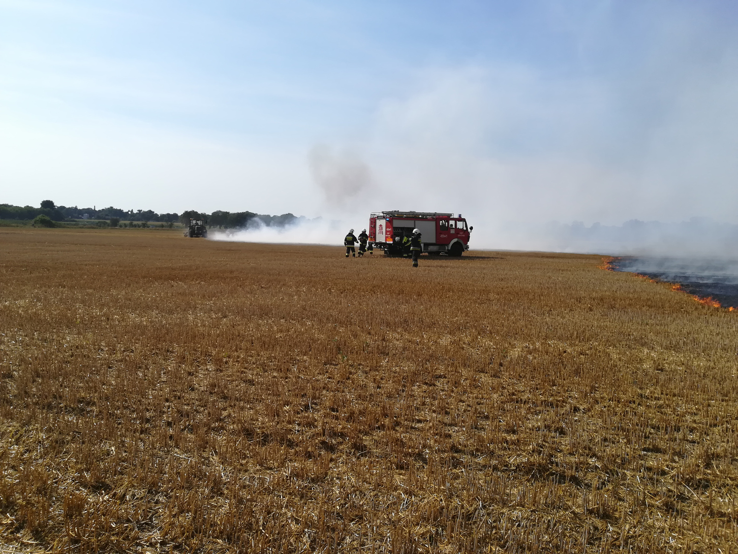 Korzystając z okazji kolejny raz apelujemy o zachowanie podstawowych środków ostrożności i odpowiednie zabezpieczenie prac żniwnych. Oprócz gaśnic stanowiących wyposażenie kombajnów i ciągników warto, by podczas prac żniwnych na polach pojawiły się beczkowozy z wodą a także traktory z pługami lub agregatami uprawowymi, które mogą ograniczać pożar ratując także maszyny zanim na miejsce pożaru przybędą strażackie zastępy.