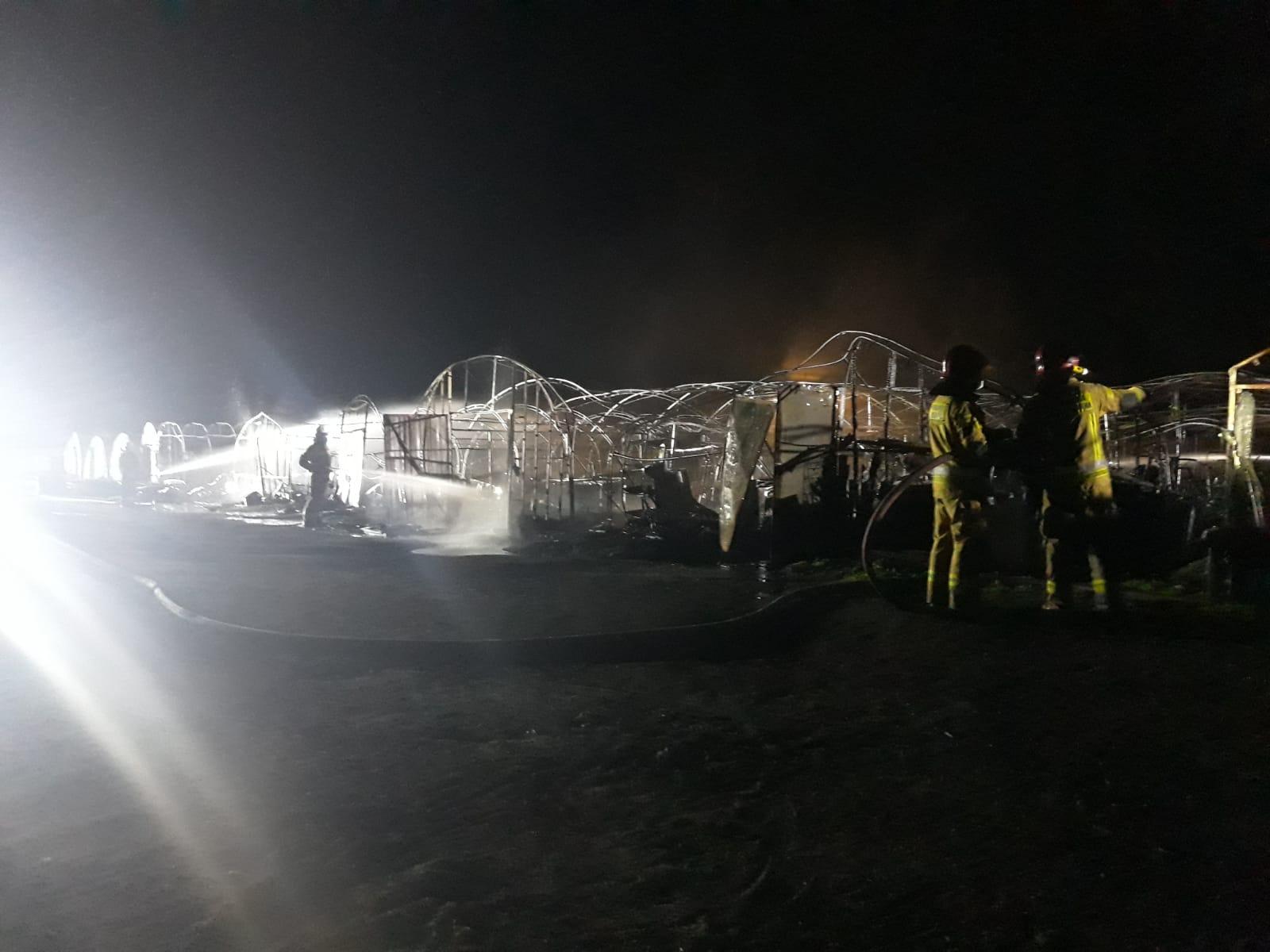 Na miejsce natychmiast zostały zadysponowane zastępy PSP i OSP z terenu powiatu kościańskiego Z chwilą przybycia pierwszych zastępów na miejsce zdarzenia stwierdzono, że pożarem objęte jest dziewięć tuneli foliowych. Wszystkie dziewięć tuneli spłonęło wraz z wyposażeniem (artykuły używane, różnego rodzaju meble, sprzęt AGD itp.). Hale zlokalizowane są w bezpośrednim sąsiedztwie zabudowań mieszkalnych. Dlatego tak istotny był czas i ograniczenie rozprzestrzeniania się pożaru w ich kierunku. W pierwszej fazie prowadzonych działań strażacy podali więc prądy wody w obronie zagrożonych domów mieszkalnych. Na miejsce zadysponowano w sumie 31 zastępów państwowej i ochotniczej straży pożarnej. Strażaków z powiatu kościańskiego, wspierali również strażacy z powiatu grodziskiego i poznańskiego. Z Miejskiej Komendy PSP w Poznaniu sprowadzono kontener ze specjalistycznym sprzętem ochrony dróg oddechowych.