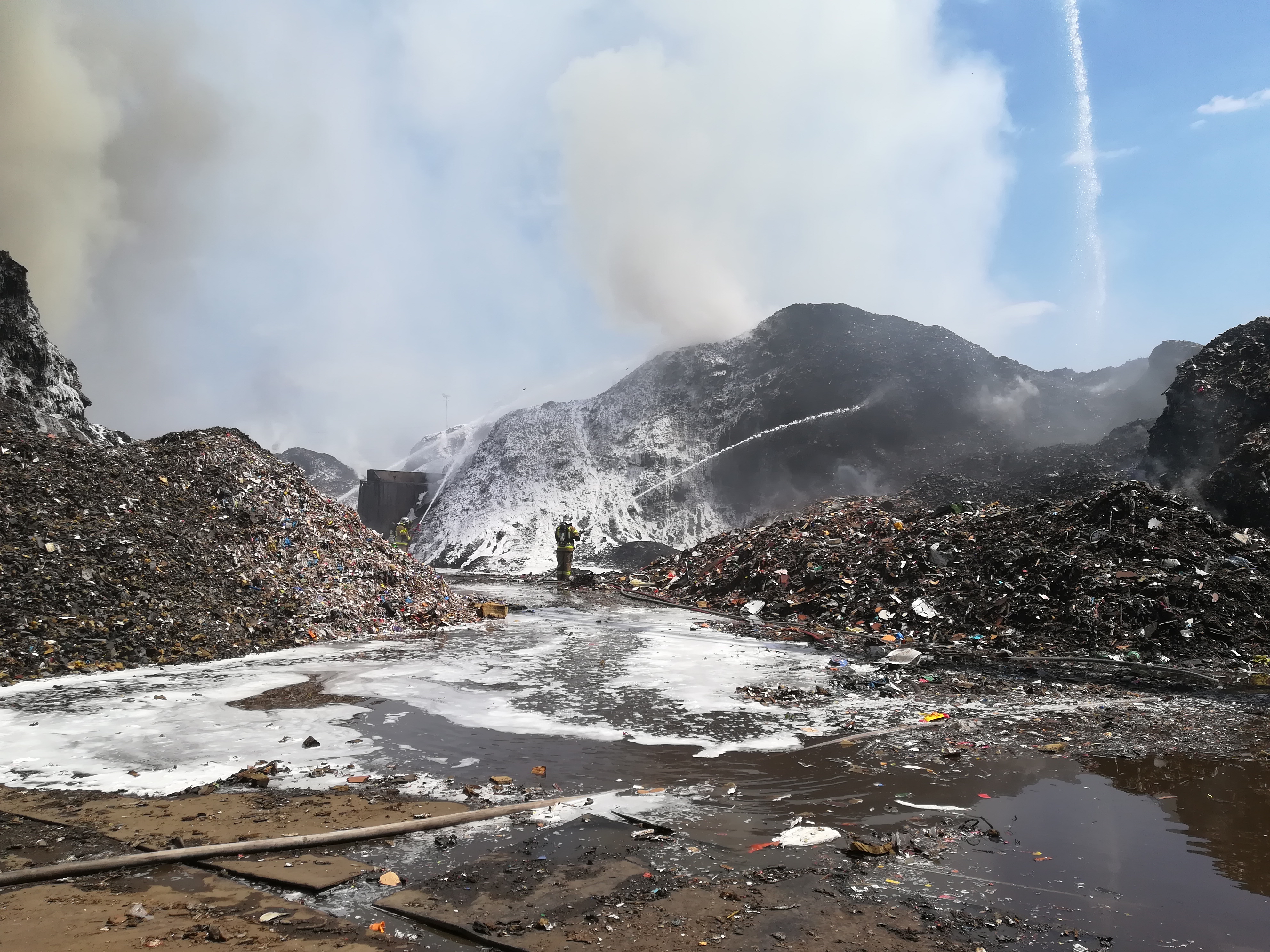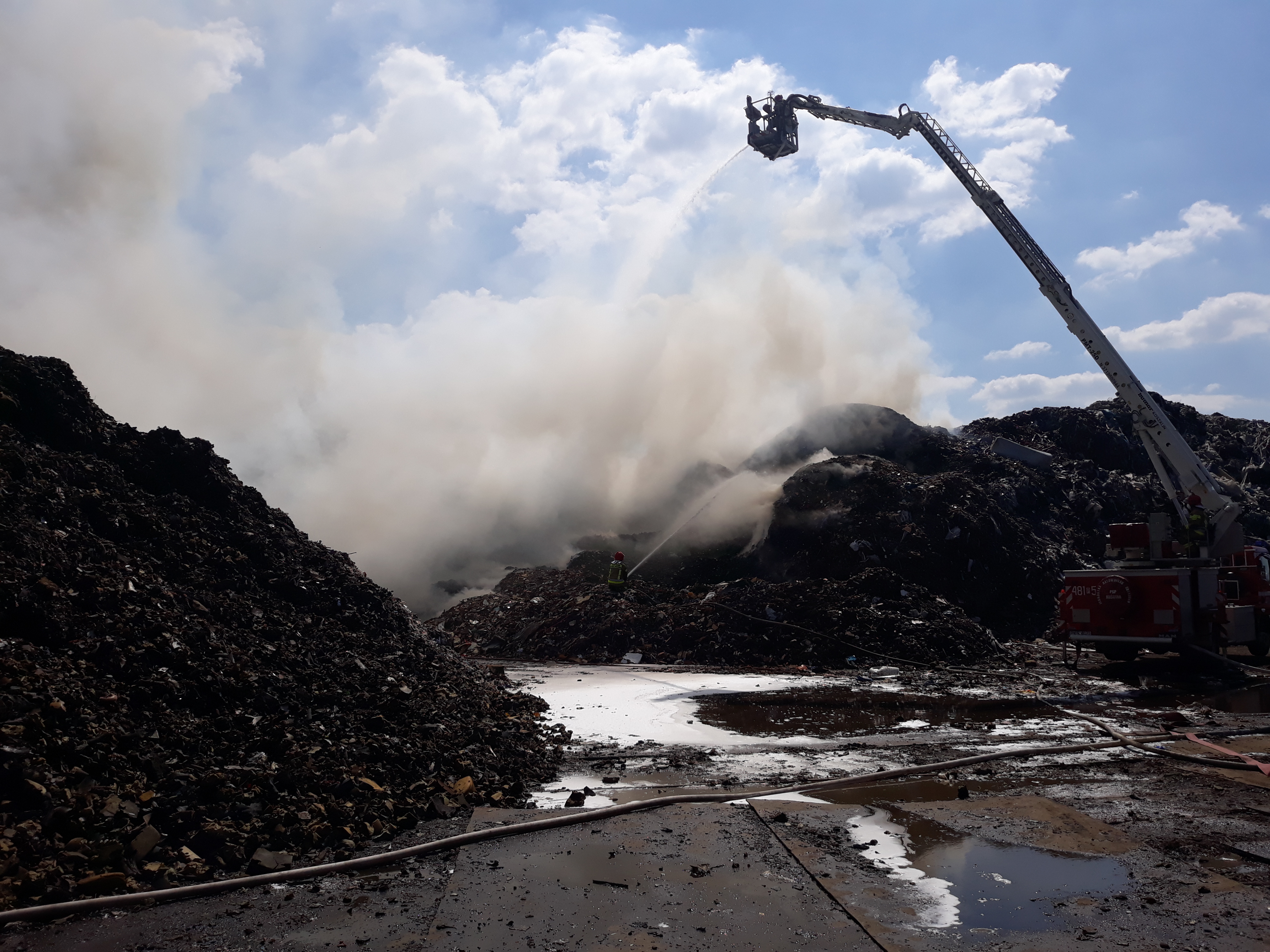 Efekt gaśniczy piany, przerzucanie materiałów, dotarcie do zarzewi ognia w głębi składowiska i ich stłumienie pozwoliło na lokalizację pożaru o godz. 17.00. Następnie rozpoczęto przewożenie części nadpalonych odpadów na sąsiedni plac, gdzie powtórnie przelewano je wodą. Część zastępów odesłano do swoich strażnic. Podczas działań wykorzystano ładowarki właściciela zakładu do przerzucania składowanych materiałów, co umożliwiło strażakom dotarcie do zarzewi ognia wewnątrz sterty. Działania te prowadzone były do późnych godzin wieczornych. Nastąpiła wymiana ratowników i dozorowano pogorzelisko. W kolejnym dniu prace te były kontynuowane praktycznie przez cały dzień. Strażacy z poszczególnych jednostek wymieniali się. W nocy z piątku na sobotę na miejscu pozostało 8 zastępów. W sobotę rano wznowiono działania, sukcesywnie rozbierając sterty. Przerzucając i odkrywając hałdę po godzinie 9 doszło do ponownego rozpalenia odpadów. Natychmiast przystąpiono do gaszenia płomieni a na miejsce zadysponowano kolejne jednostki. Po opanowaniu ognia dalej prowadzono rozbiórkę hałd. W nocy z soboty na niedzielę pogorzelisko dozorowało 5 zastępów. W niedzielę wznowiono działania i w godzinach południowych udało się zakończyć przerzucanie odpadów objętych pożarem.