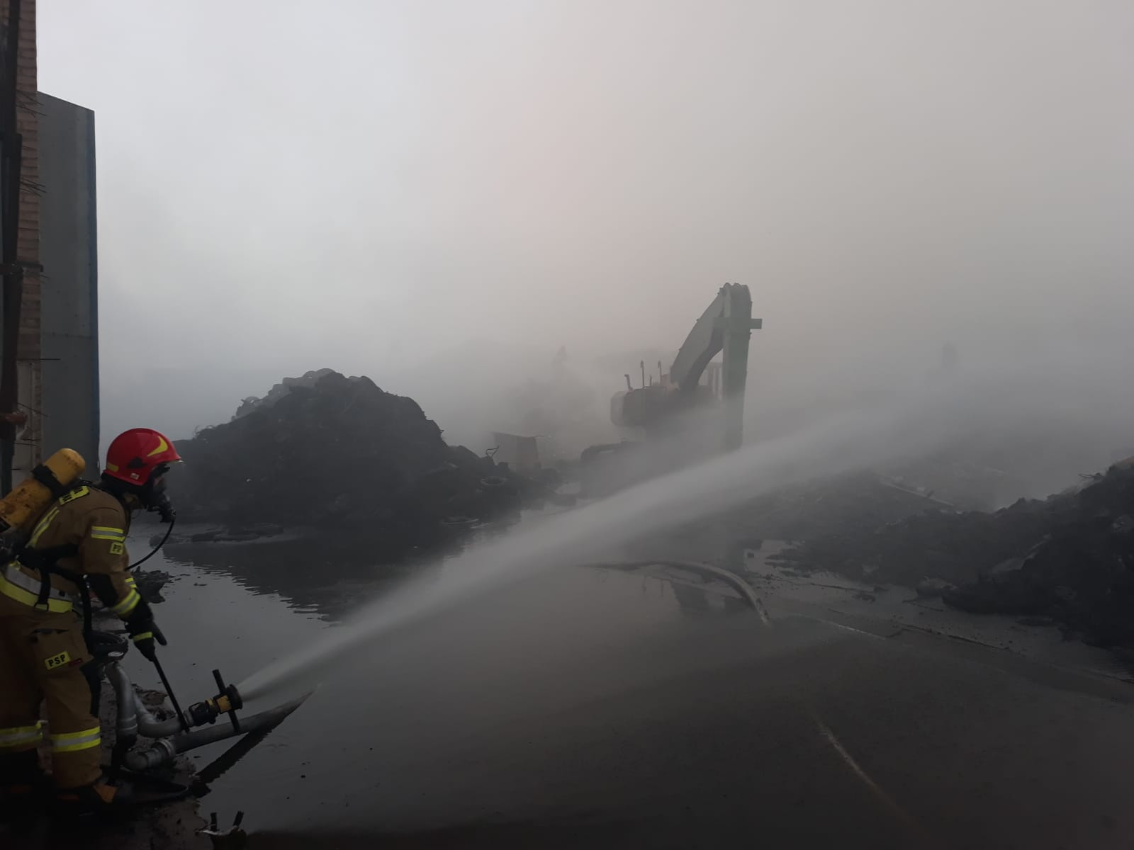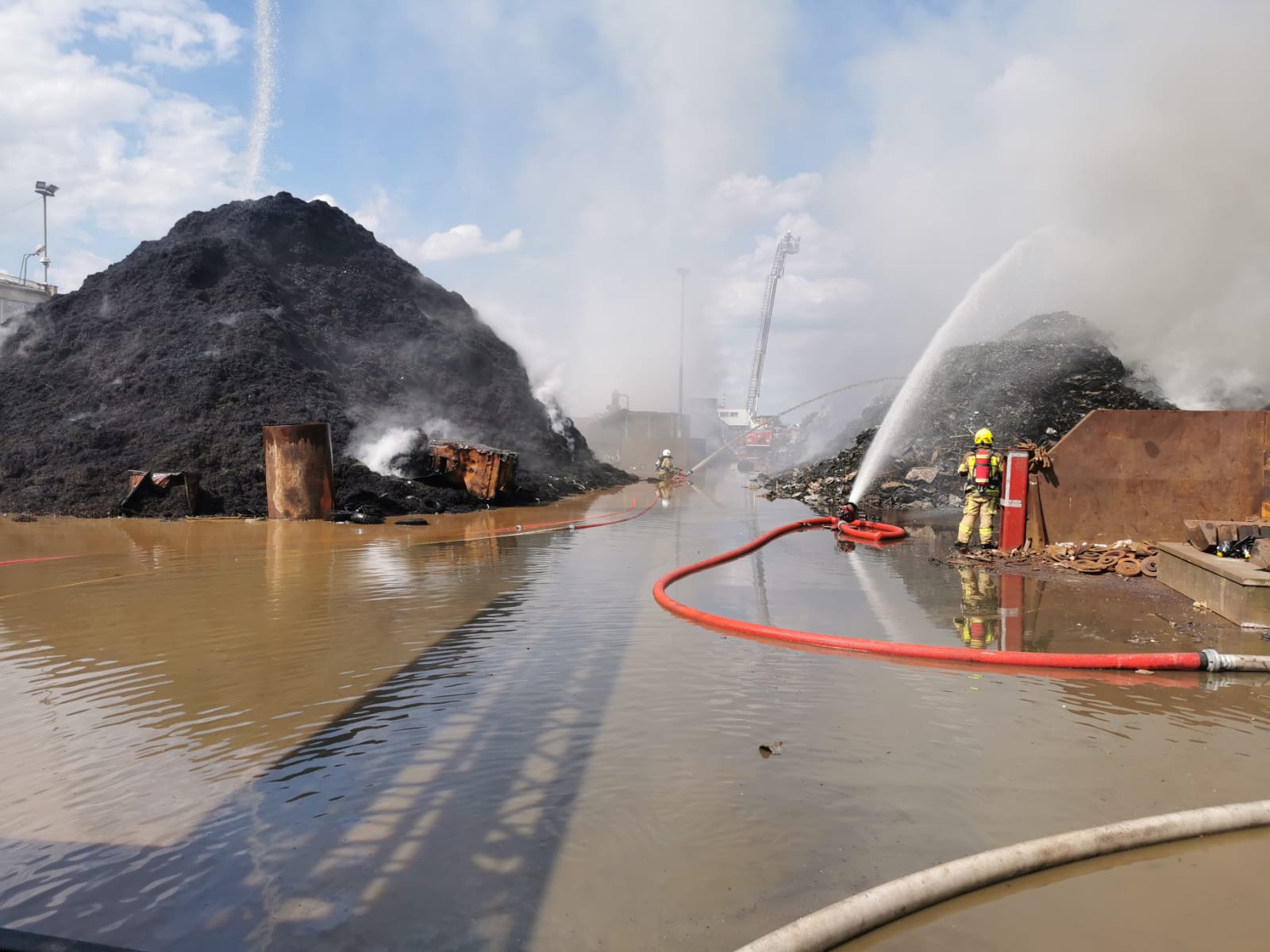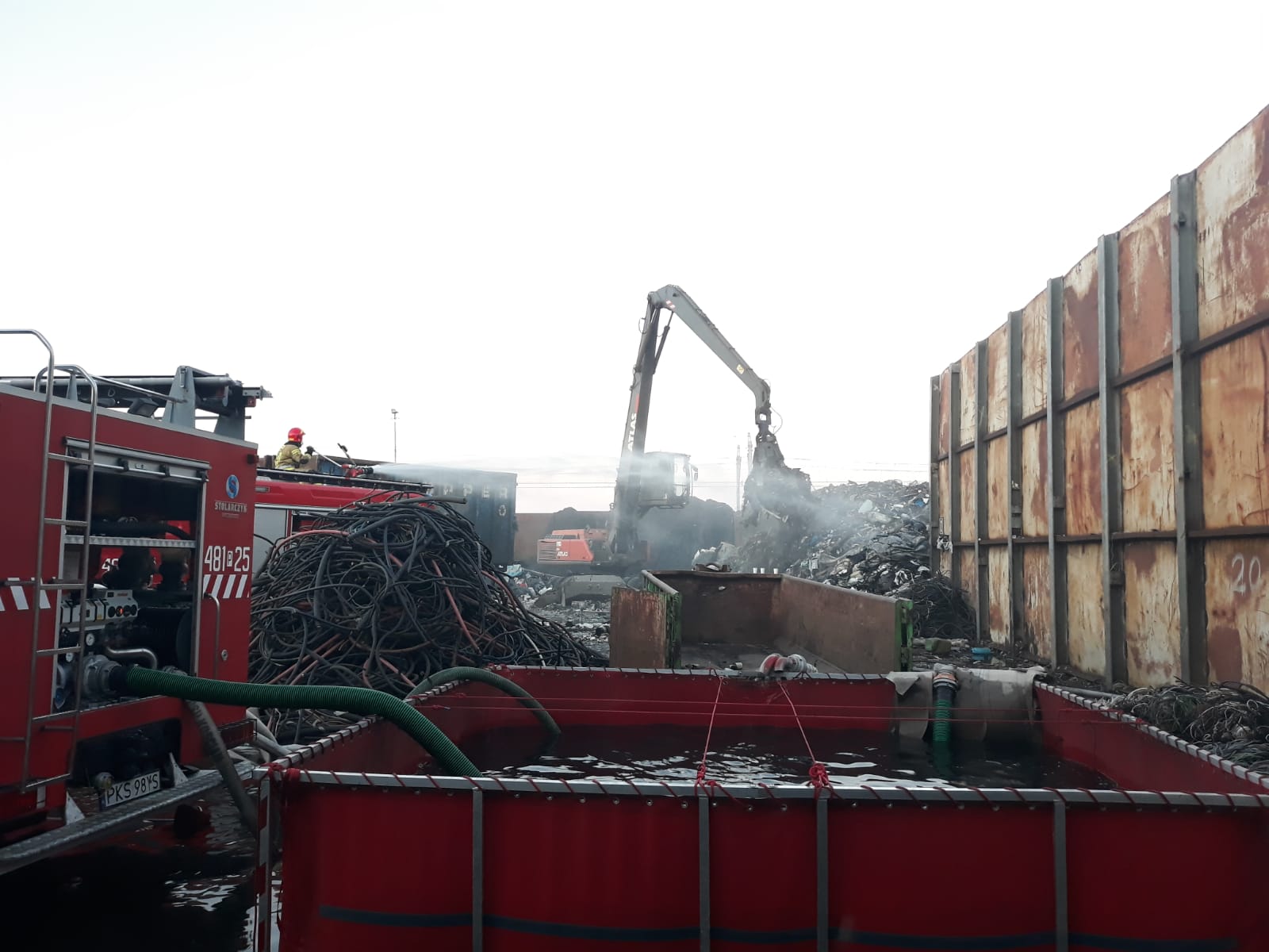 Efekt gaśniczy, przerzucanie materiałów, dotarcie do zarzewi ognia w głębi składowiska i ich stłumienie pozwoliło na opanowanie ognia. W kulminacyjnym momencie akcji w działaniach gaśniczych udział brało 48 zastępów straży pożarnej. Następnie rozpoczęto przewożenie części nadpalonych odpadów na sąsiedni plac, gdzie powtórnie przelewano je wodą. Część zastępów odesłano do swoich strażnic. Podczas działań wykorzystano ładowarki właściciela zakładu do przerzucania składowanych materiałów, co umożliwiło strażakom dotarcie do zarzewi ognia wewnątrz sterty. Działania te prowadzone były do późnych godzin wieczornych. Nastąpiła wymiana ratowników i dozorowano pogorzelisko. W kolejnym dniu prace te były kontynuowane praktycznie przez cały dzień. Strażacy z poszczególnych jednostek wymieniali się. W nocy z poniedziałku na wtorek na miejscu pozostało 15 zastępów. We wtorek rano wznowiono działania, sukcesywnie rozbierając sterty. Prace te prowadzone były przez cały wtorek, wieczorem nastąpiła podmiana ratowników i dozorowanie pogorzeliska. Działania kontynuowano w środę i do wieczora udało się rozebrać oraz przelać wodą sterty odpadów. Decyzją kierującego działaniami ratowniczymi dwa zastępy dozorowały jeszcze pogorzelisko w nocy z środy na czwartek.