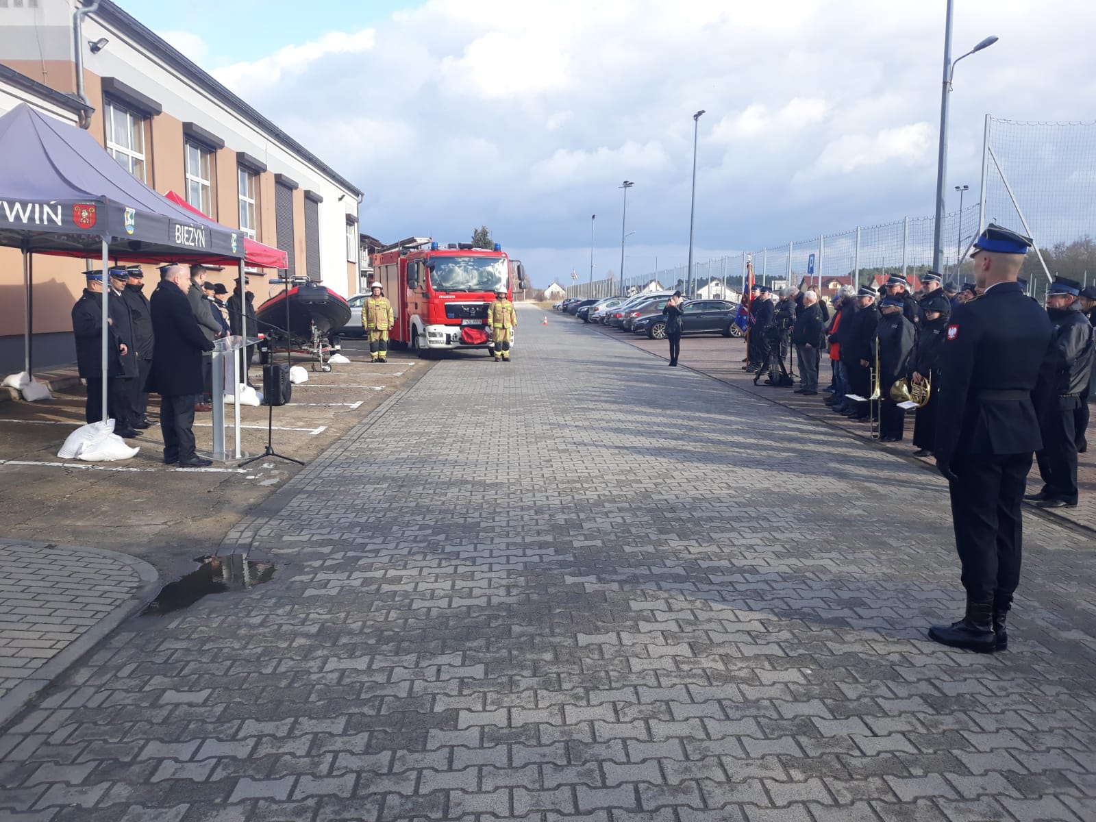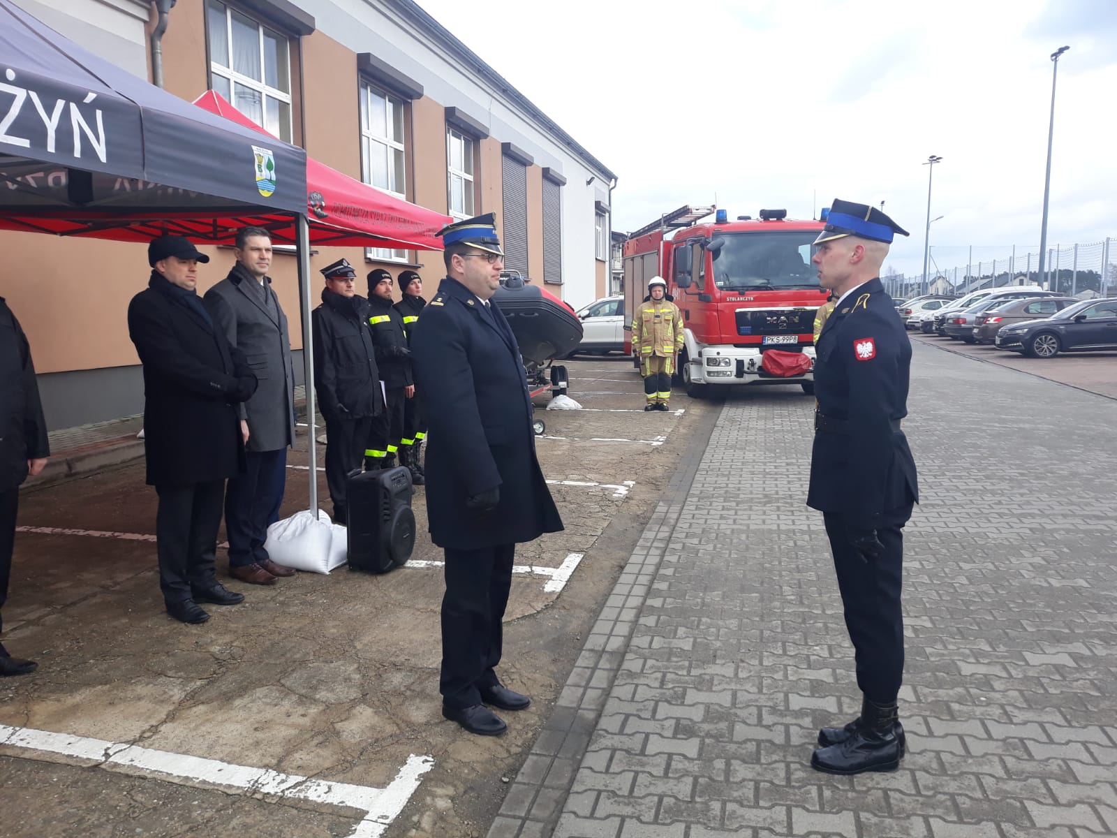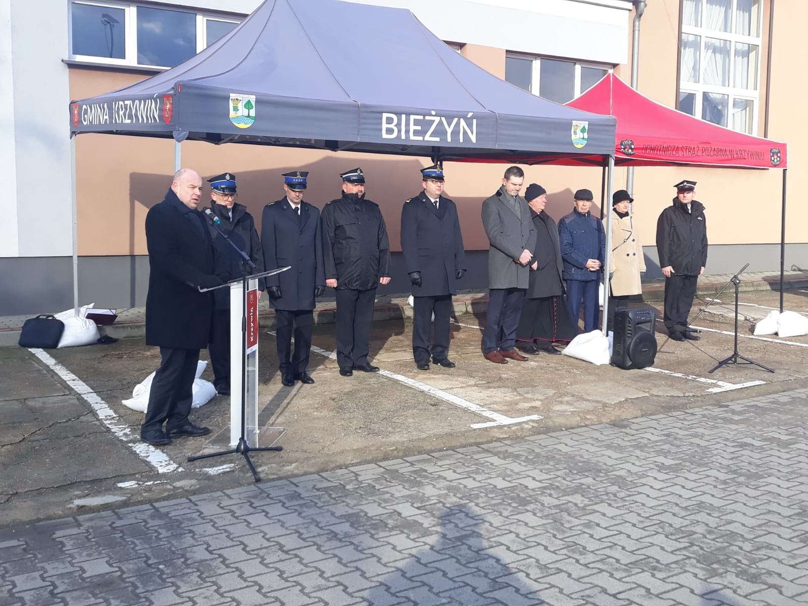 Uroczystość rozpoczęła się od złożenia meldunku Zastępcy Wielkopolskiego Komendanta Wojewódzkiego Państwowej Straży Pożarnej bryg. Robertowi Natunewiczowi. Po przywitaniu zaproszonych gości nastąpiło symboliczne przekazanie średniego samochodu ratowniczo-gaśniczego oraz nowej łodzi. Pojazd dotychczas użytkowany był w kościańskiej Komendzie. Kluczyki do samochodu odebrał Prezes Ochotniczej Straży Pożarnej w Krzywiniu dh Piotr Maćkowiak.