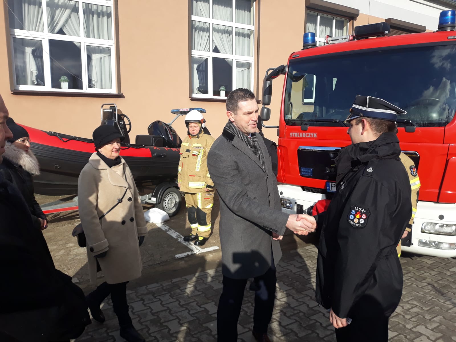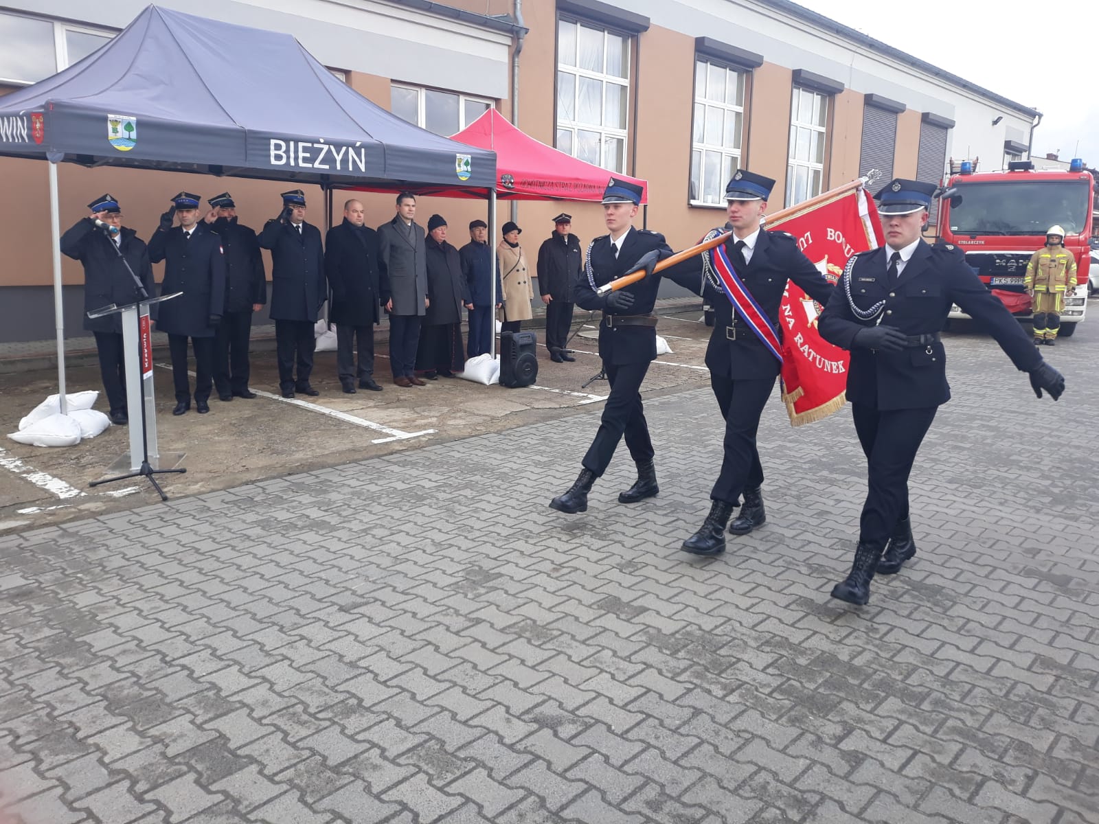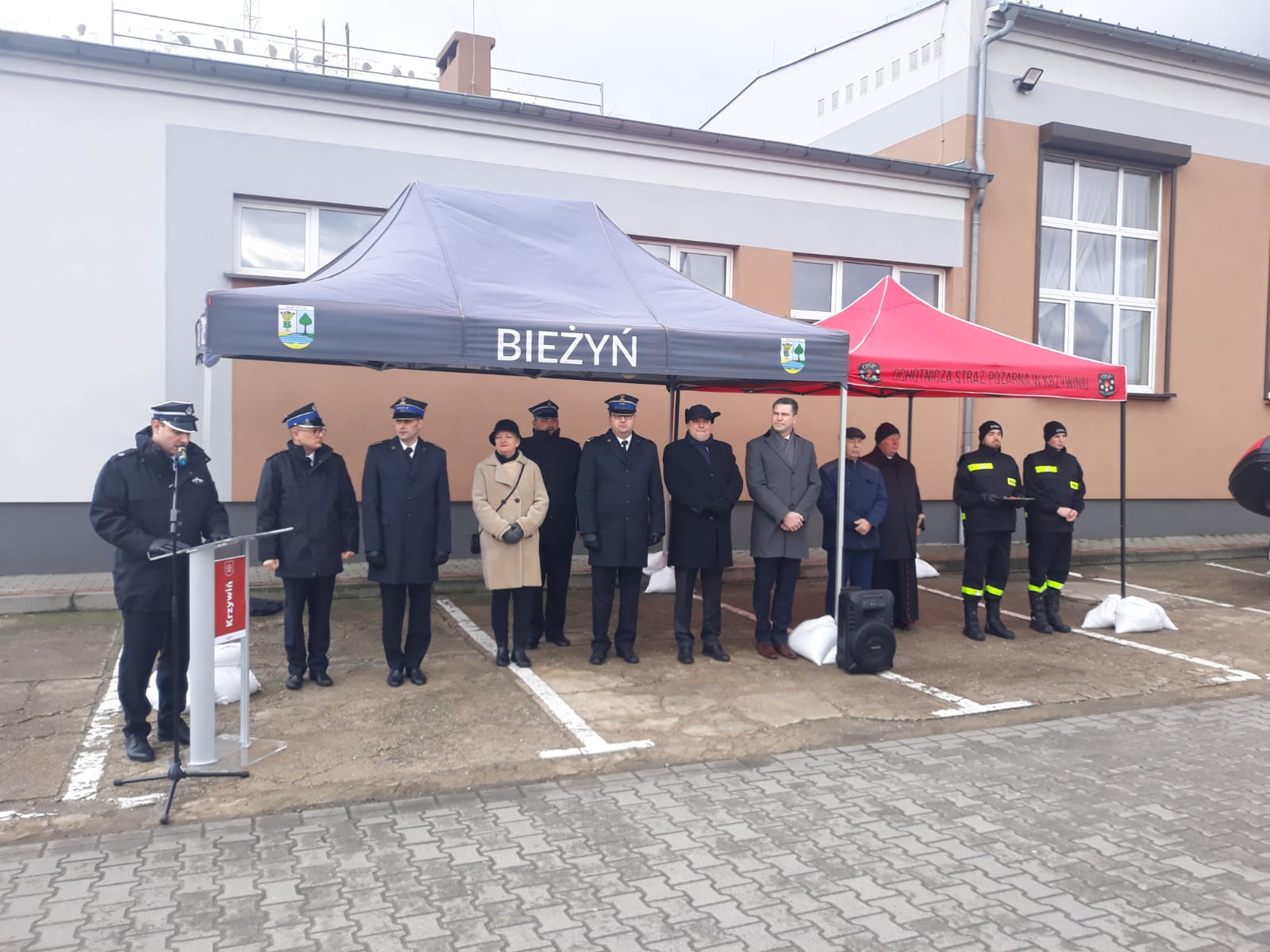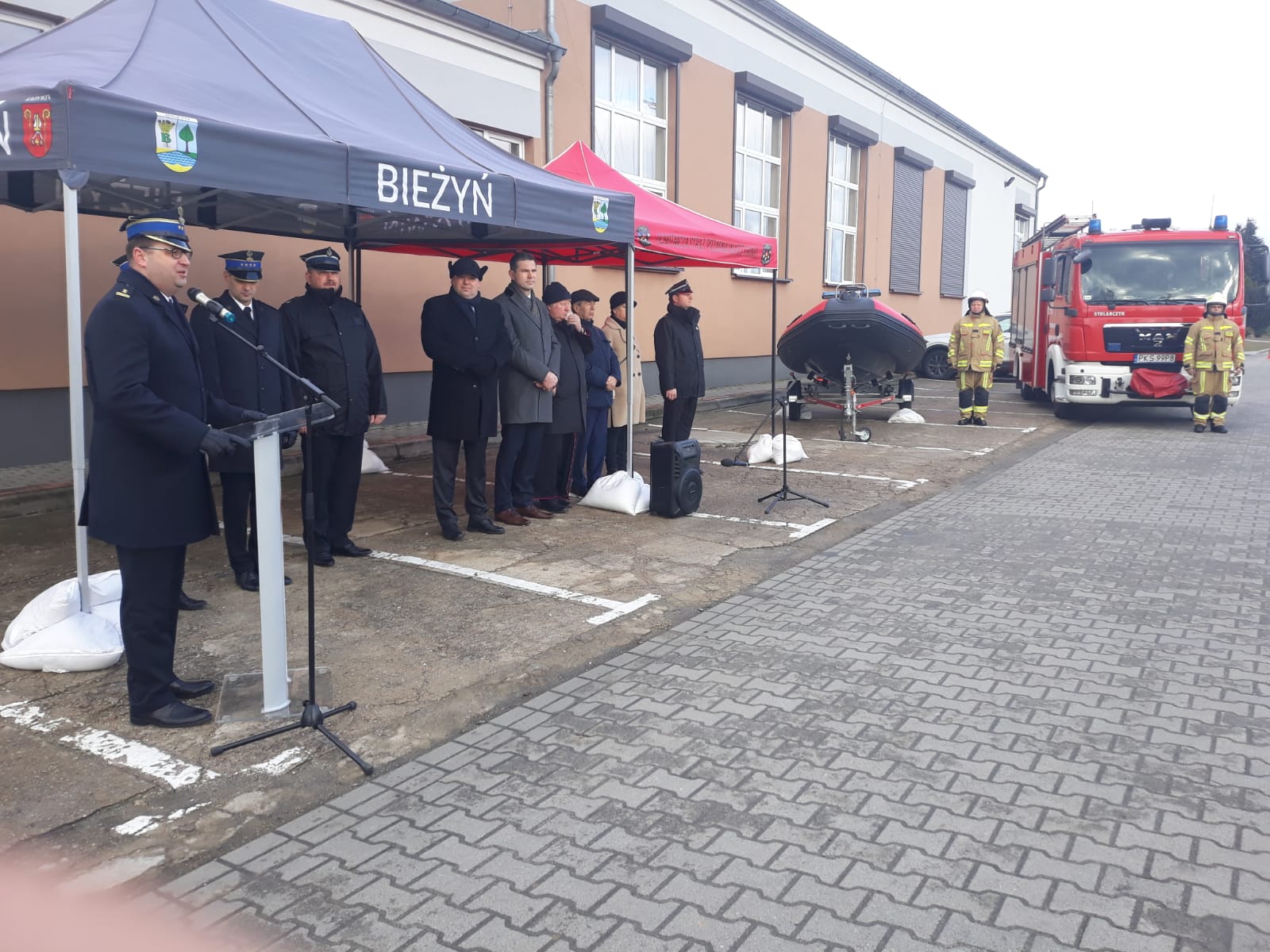 Uroczystość rozpoczęła się od złożenia meldunku Zastępcy Wielkopolskiego Komendanta Wojewódzkiego Państwowej Straży Pożarnej bryg. Robertowi Natunewiczowi. Po przywitaniu zaproszonych gości nastąpiło symboliczne przekazanie średniego samochodu ratowniczo-gaśniczego oraz nowej łodzi. Pojazd dotychczas użytkowany był w kościańskiej Komendzie. Kluczyki do samochodu odebrał Prezes Ochotniczej Straży Pożarnej w Krzywiniu dh Piotr Maćkowiak.