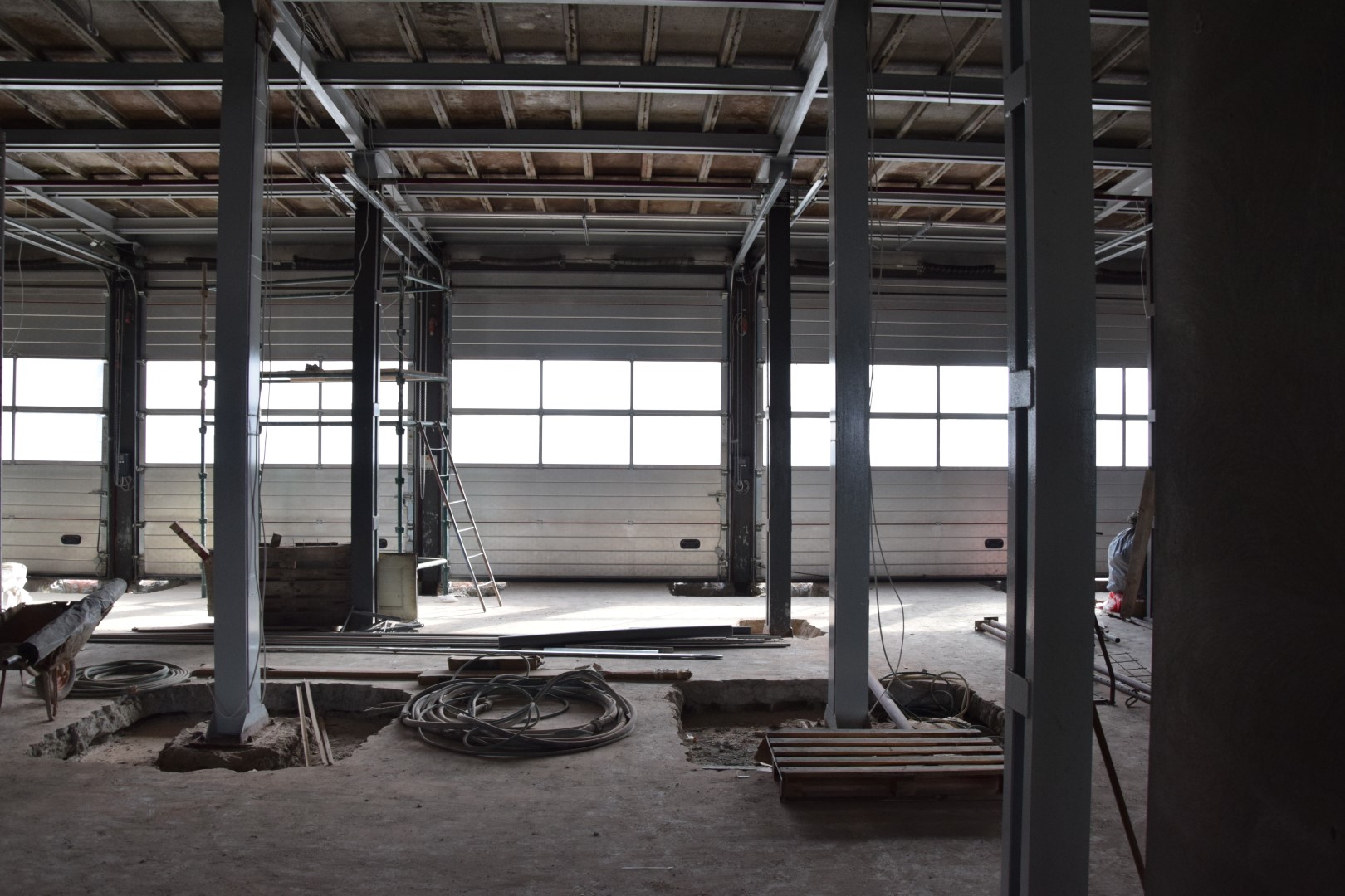 W kolejnych etapach prac na całej powierzchni garażu zostanie położona przemysłowa posadzka. Garaż będzie miał odwodnienie liniowe. Wokół budynku będzie wykonany pas drenażowy. Do garażu będzie prowadził wentylowany przedsionek pożarowy. Zostanie także zmieniony system ogrzewania. Inwestycję uzupełni wymiana frontowych bram garażowych.