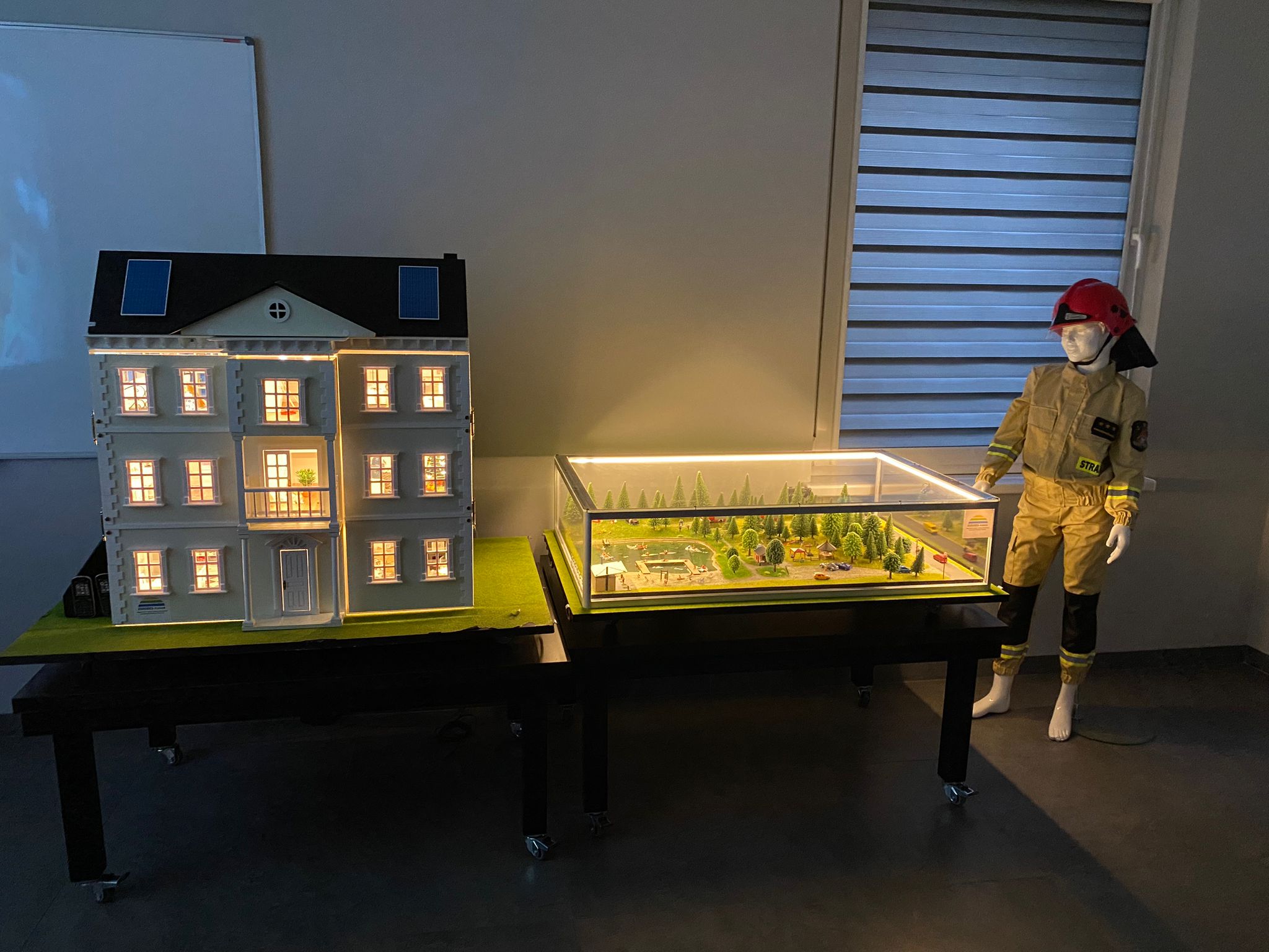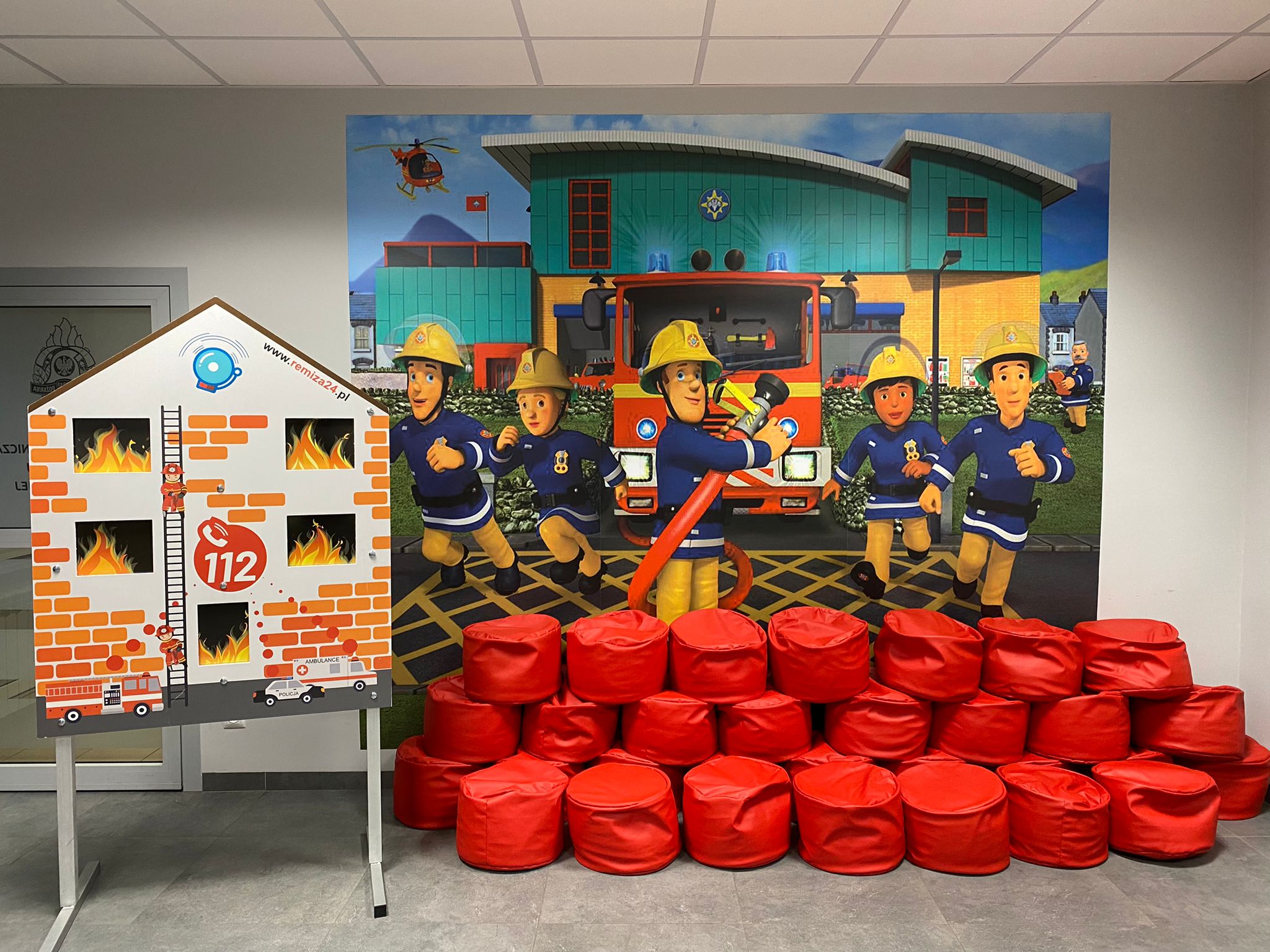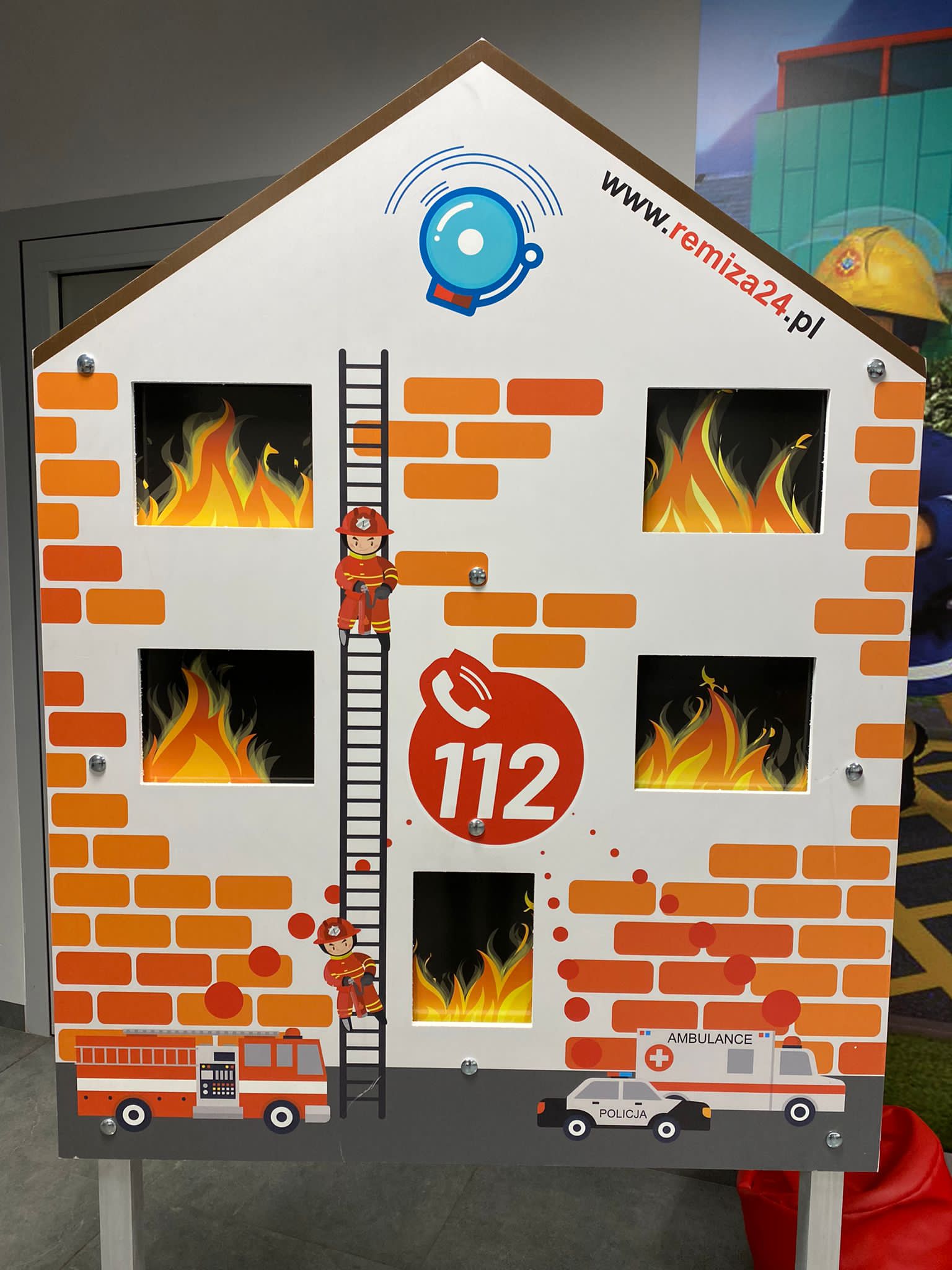 Główną atrakcją naszej sali jest ,,Domek Zagrożeń” – przedstawiający co może wydarzyć się w naszym domu, gdy nie będziemy przestrzegać zasad bezpieczeństwa. Domek w rzeczywisty sposób ukazuje różne niebezpieczeństwa jakie mogą nas spotkać w domu dzięki dźwiękom, efektom dymowym i świetlnemu symulatorowi zagrożeń.
