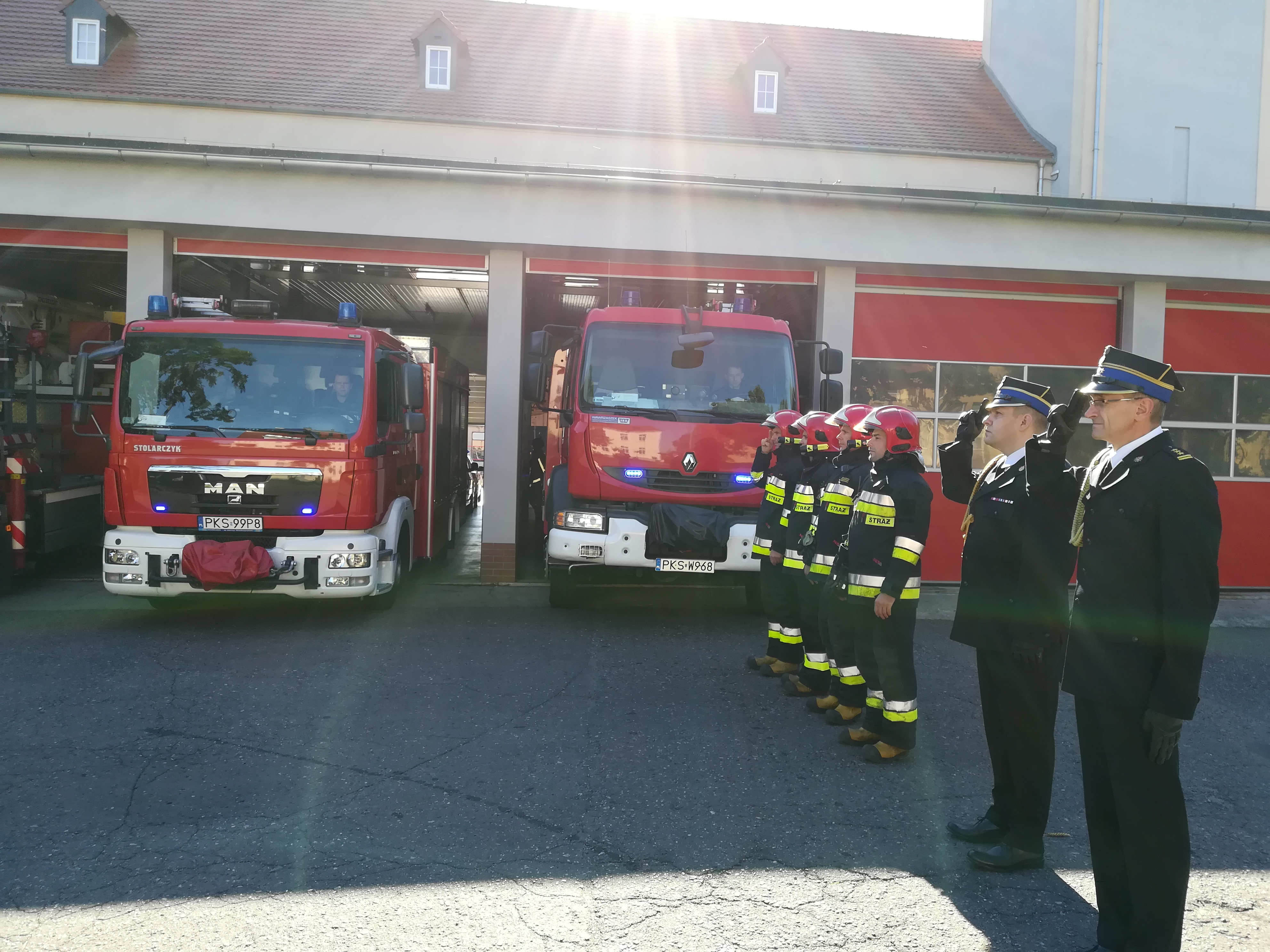 Przy dźwiękach syreny oraz sygnałów alarmowych wozów bojowych Z-ca Wielkopolskiego Komendanta Wojewódzkiego PSP bryg. Jarosław Zamelczyk oraz Komendant Powiatowy PSP w Kościanie wraz ze strażakami pełniącymi w tym dniu służbę oddali hołd Powstańcom Warszawskim.