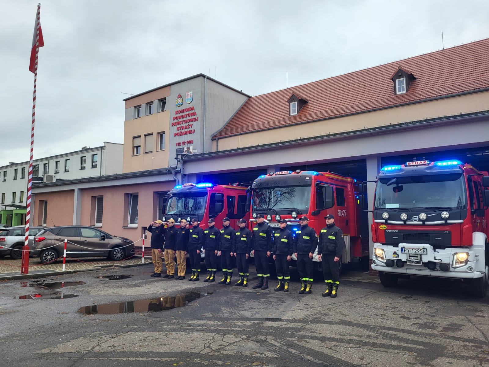 W piątek 29 listopada w jednostkach Państwowej Straży Pożarnej i Ochotniczych Straży Pożarnych włączone zostały sygnały świetlno-dźwiękowe. Kościańscy strażacy, na czele z Komendantem Powiatowym PSP w Kościanie mł. bryg. Jackiem Donajem oddali hołd śp. asp. szt. Mateuszowi Biernackiemu – policjantowi, który został śmiertelnie postrzelony podczas służby.