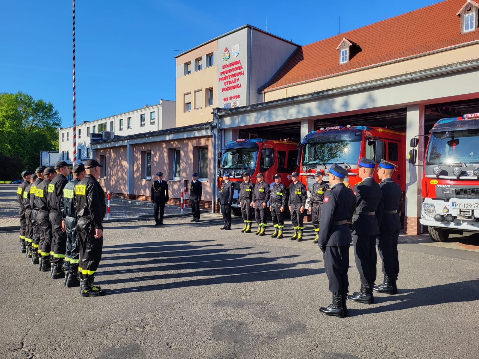 W piątek 2 maja z okazji Dnia Flagi Rzeczypospolitej Polskiej przed budynkiem Komendy Powiatowej PSP w Kościanie odbył się uroczysty apel. Przy dźwiękach Mazurka Dąbrowskiego uroczyście podniesiono Flagę na maszt. Zastępca Komendanta Powiatowego PSP w Kościanie st. kpt. Piotr Foremski w krótkim wystąpieniu przedstawił jej historię, symbolikę i znaczenie. Podkreślił także, że barwy narodowe ważne są dla strażackiej służby, a uroczystość ma w szczególny sposób podkreślić ścisły związek pomiędzy ofiarnością strażaków a Ojczyzną i dobrem wspólnym.