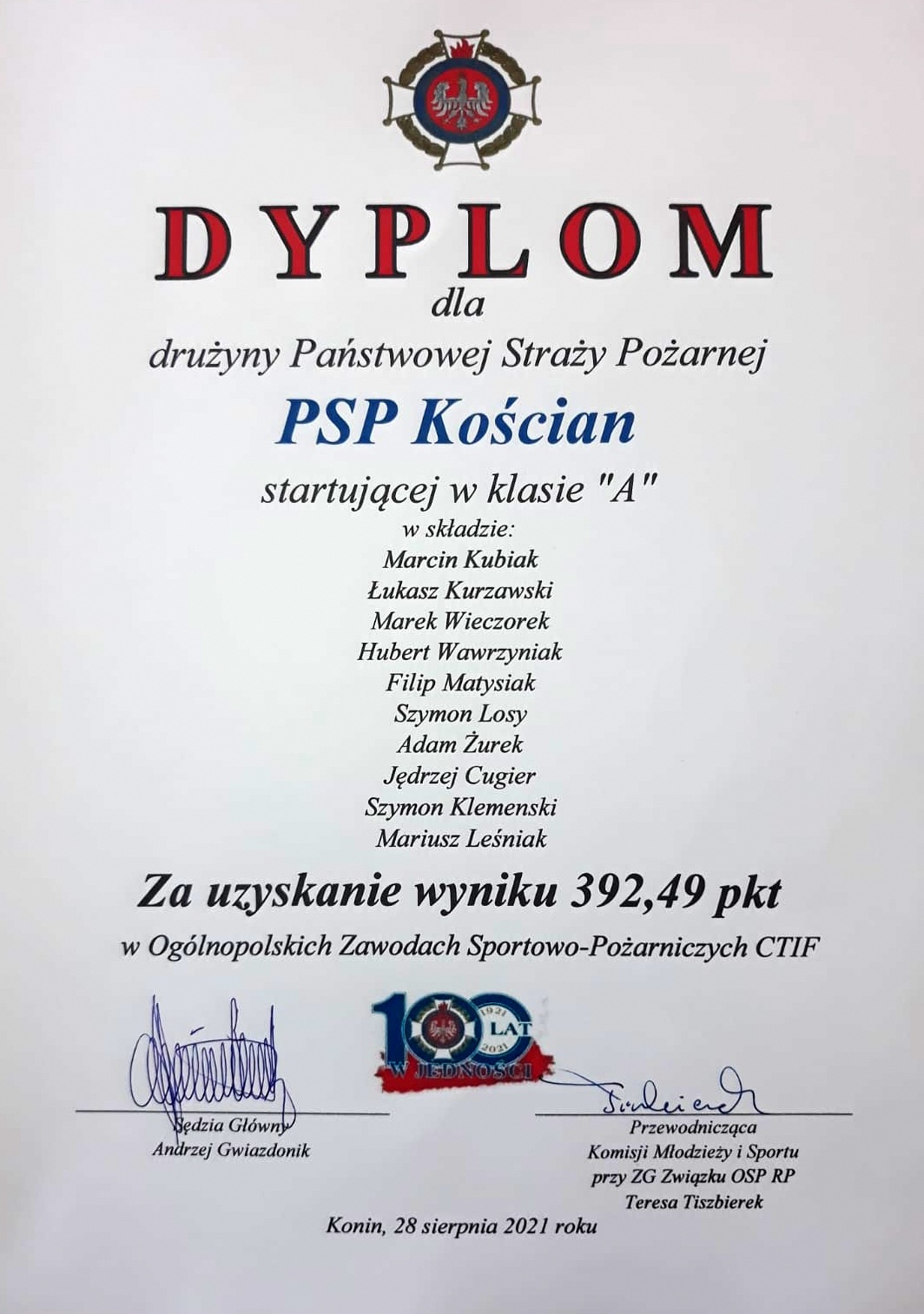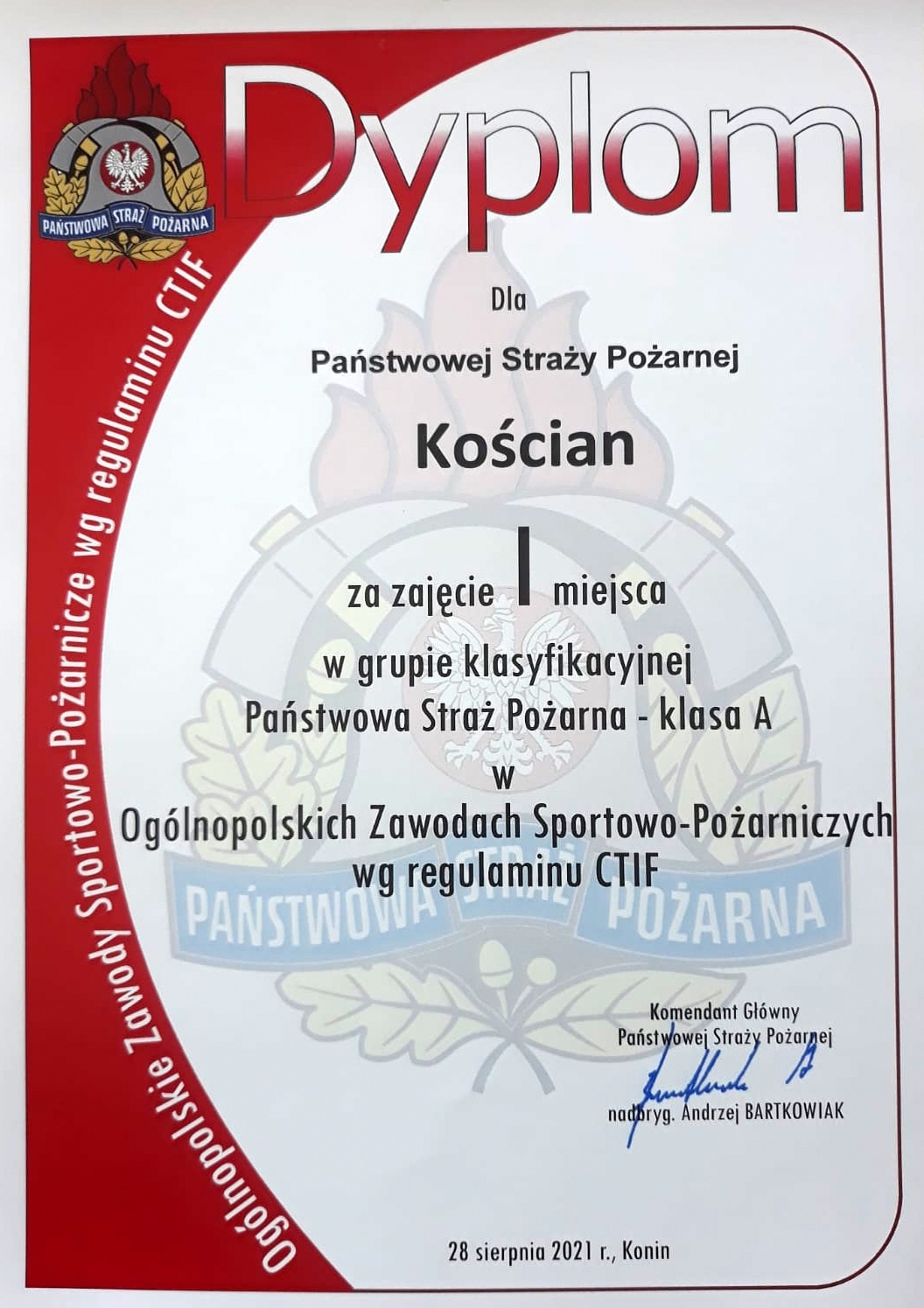 W sobotę 29 sierpnia w Koninie odbyły się Ogólnopolskie Zawody Sportowo-Pożarnicze według regulaminu CTIF. Reprezentacja Komendy Powiatowej PSP w Kościanie zajęła pierwsze miejsce.
