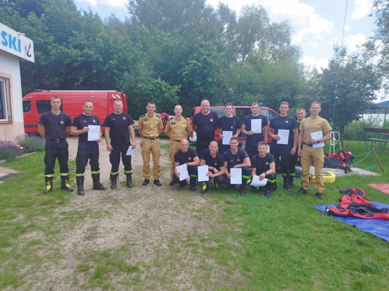 Ośrodek Szkolenia Komendy Wojewódzkiej PSP w Poznaniu przy współudziale Komendy Powiatowej PSP w Kościanie w dniach 4-6 czerwca br. przeprowadził kolejną edycję „Szkolenia z ratownictwa na obszarach wodnych realizowanego przez KSRG w zakresie podstawowym”. W szkoleniu wzięło udział łącznie 12 funkcjonariuszy, po 2 z Gostynia, Grodziska Wielkopolskiego, Leszna, Nowego Tomyśla, Śremu i Wolsztyna. Kadrę dydaktyczną stanowili instruktorzy, zarazem członkowie Specjalistycznej Grupy Ratownictwa Wodno-Nurkowego w Kościanie. Program szkolenia w ramach zajęć teoretycznych i praktycznych obejmował między innymi zagadnienia w zakresie zabezpieczenia miejsca prowadzenia działań, zabezpieczenia ratowników, technik ratowniczych przy wykorzystaniu sprzętu ratowniczego i asekuracyjnego. Strażacy uczyli się i doskonalili techniki związane z dotarciem do osoby tonącej i jej ewakuacją. Zajęcia praktyczne odbywały się w stanicy Kościańskiego Klubu Żeglarskiego w Nowym Dębcu, na Jeziorze Wonieskim.